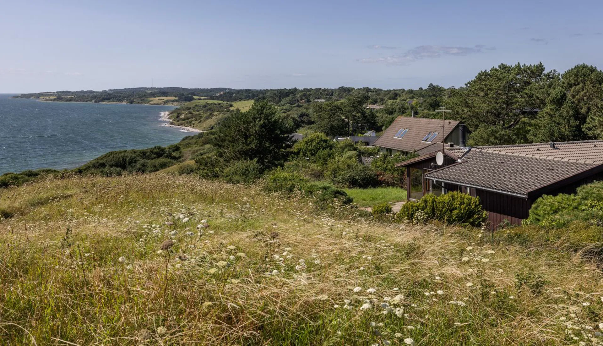 Sommerhuset, som er opført i 1969, er 100m2 beliggende på en 1108m2 stor naturgrund med den helt fantastiske udsigt over landskabet og havet. Huset indeholder en stor stue, et stort soveværelse, to kamre, et køkken, to badeværelser og en entre. Ganske charmerende og med istandsættelse kan det forvandles til en enestående perle. Derudover er der et mindre anneks med fire sovepladser.