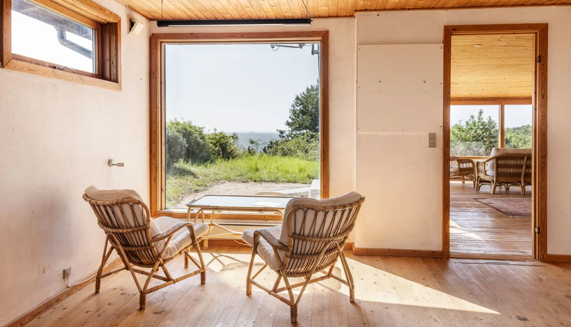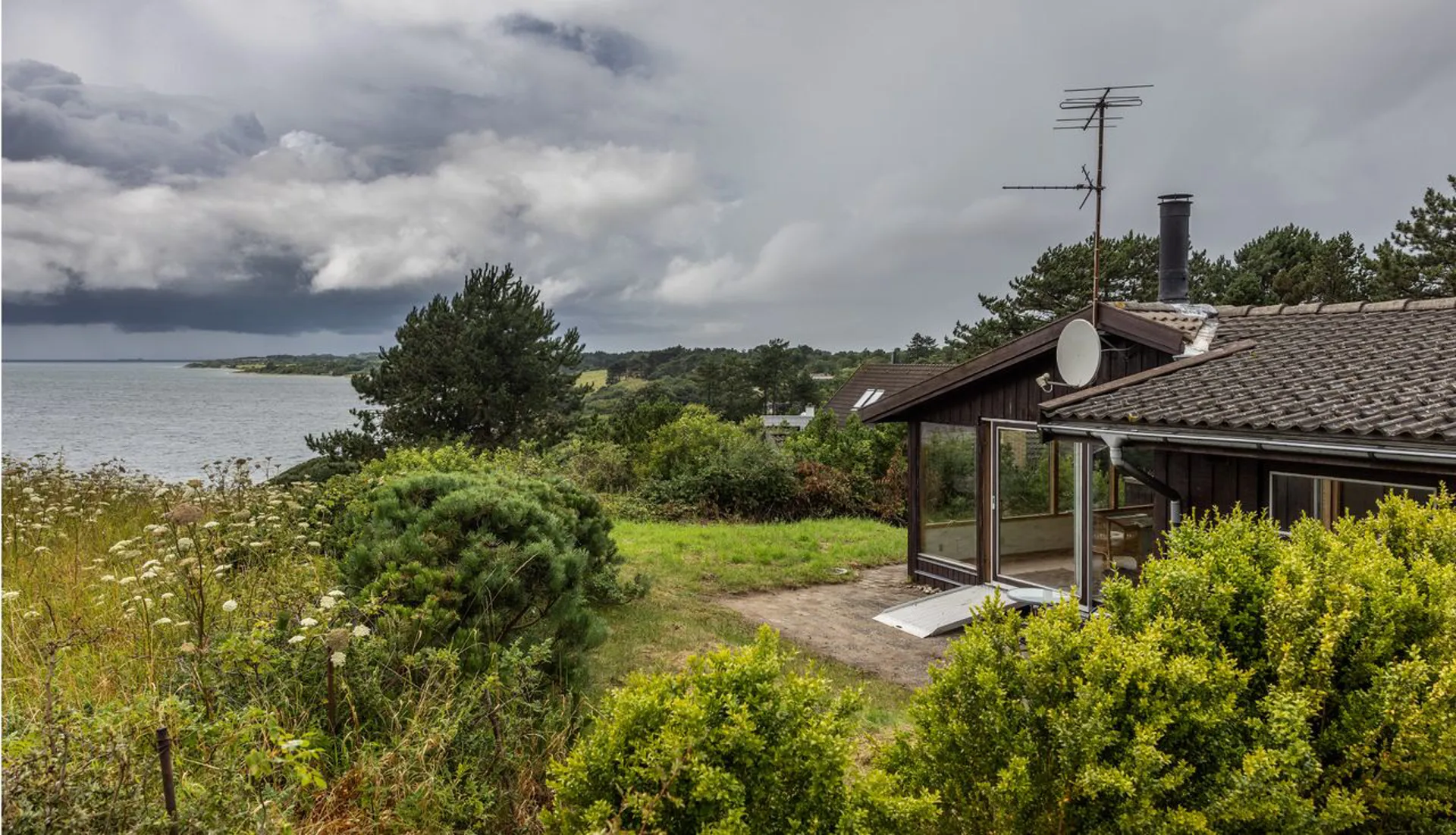 Sommerhuset, som er opført i 1969, er 100m2 beliggende på en 1108m2 stor naturgrund med den helt fantastiske udsigt over landskabet og havet. Huset indeholder en stor stue, et stort soveværelse, to kamre, et køkken, to badeværelser og en entre. Ganske charmerende og med istandsættelse kan det forvandles til en enestående perle. Derudover er der et mindre anneks med fire sovepladser.