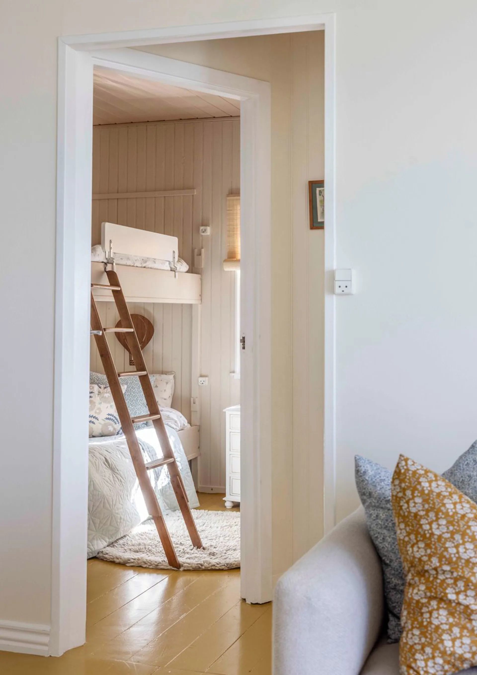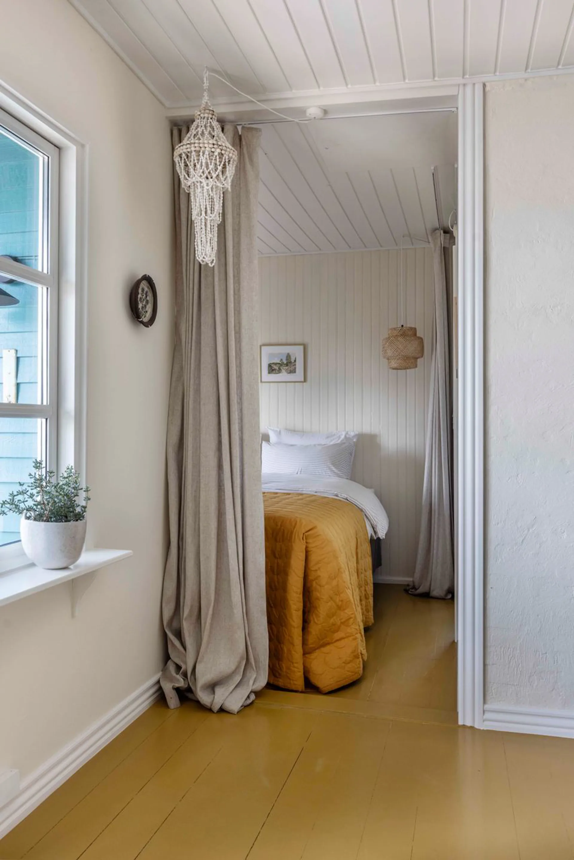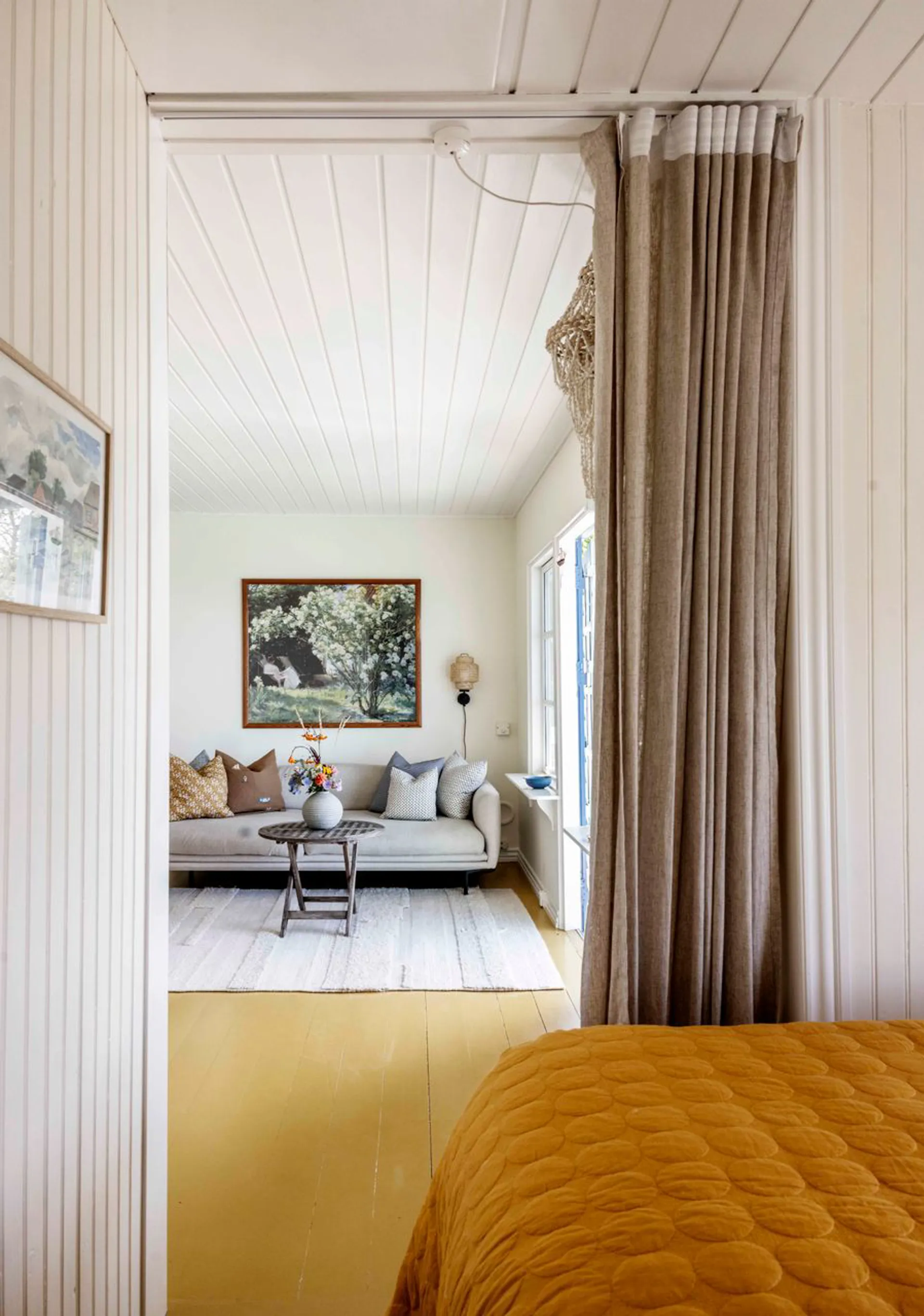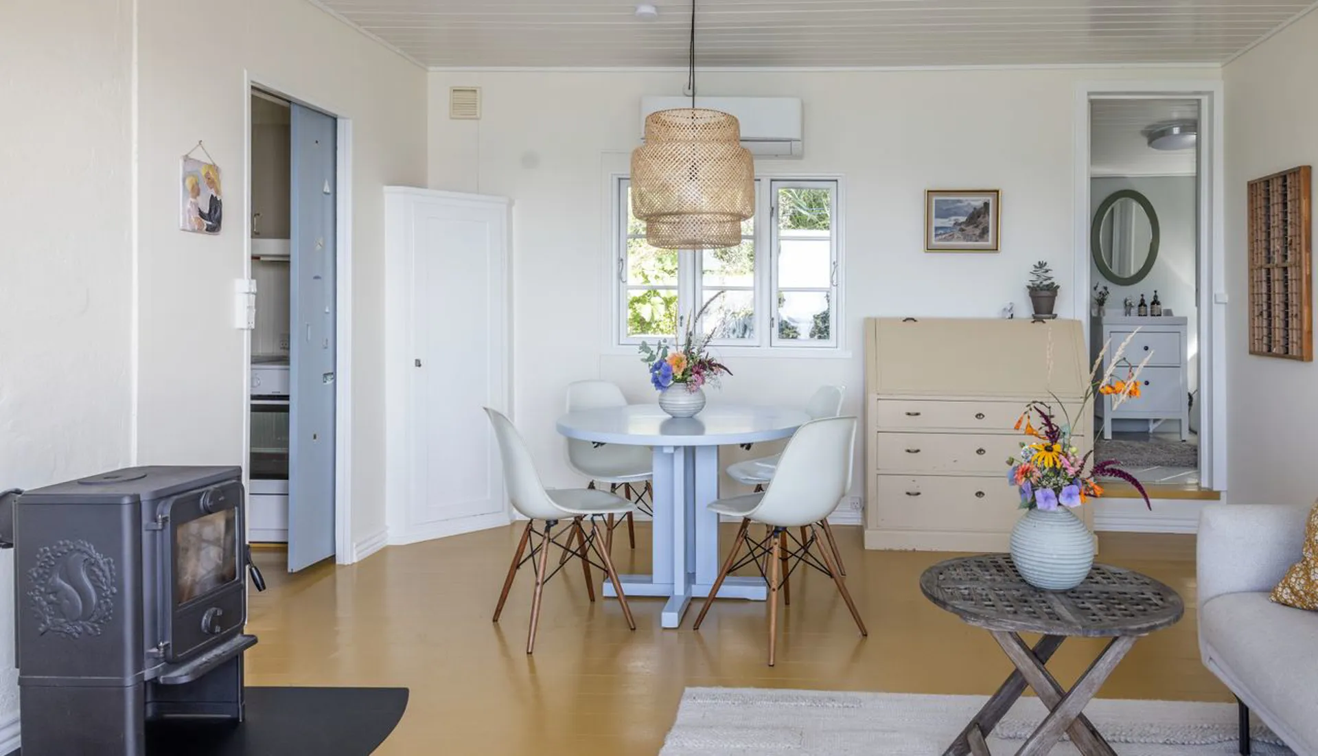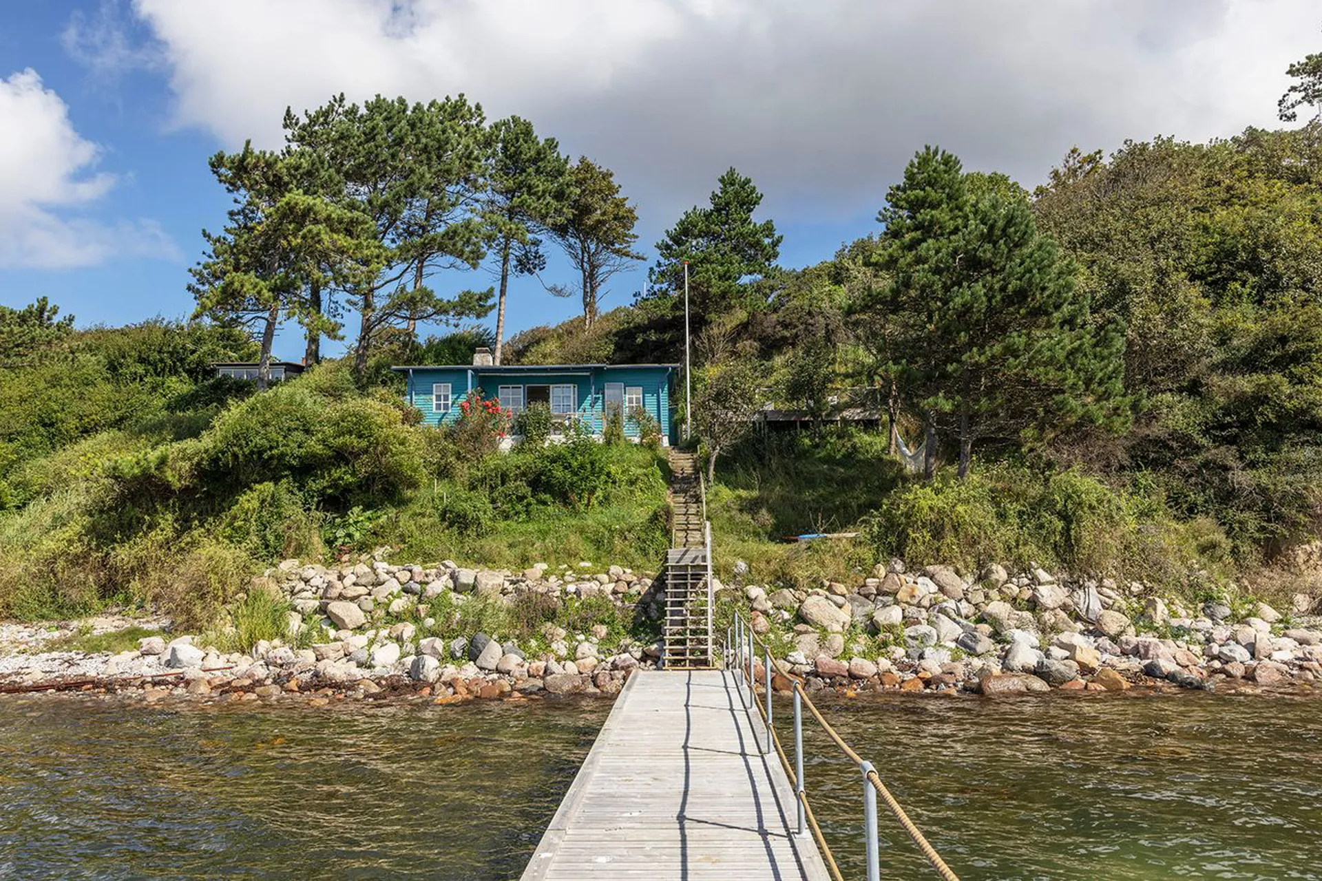 Grundens 506 m2 lægger sig på en lille repos til kystlinjen. Som en elegant hylde til dette autentiske sommerhus på 59 m2 (BBR). Alt virker så ægte og så naturligt. Så rigtigt. Nærmest berusende. Og sådan er det med dette sted. Det er et sted med store fortællinger om store kunstnere, der har holdt ferie her. Lad os bare komme til den måske nok mest flamboyante, nemlig at Asger Jorn, der var elev hos Kaalund, boede her i en periode, hvor han malede alle væggene i et tidligere strandhus (som desværre ikke består længere). Men ånden består stadig på stedet. Det er måske den der vælter en omkuld, når man kommer til enden af den private indkørelsesvej, og stedets kraftfuldhed byder en velkommen.