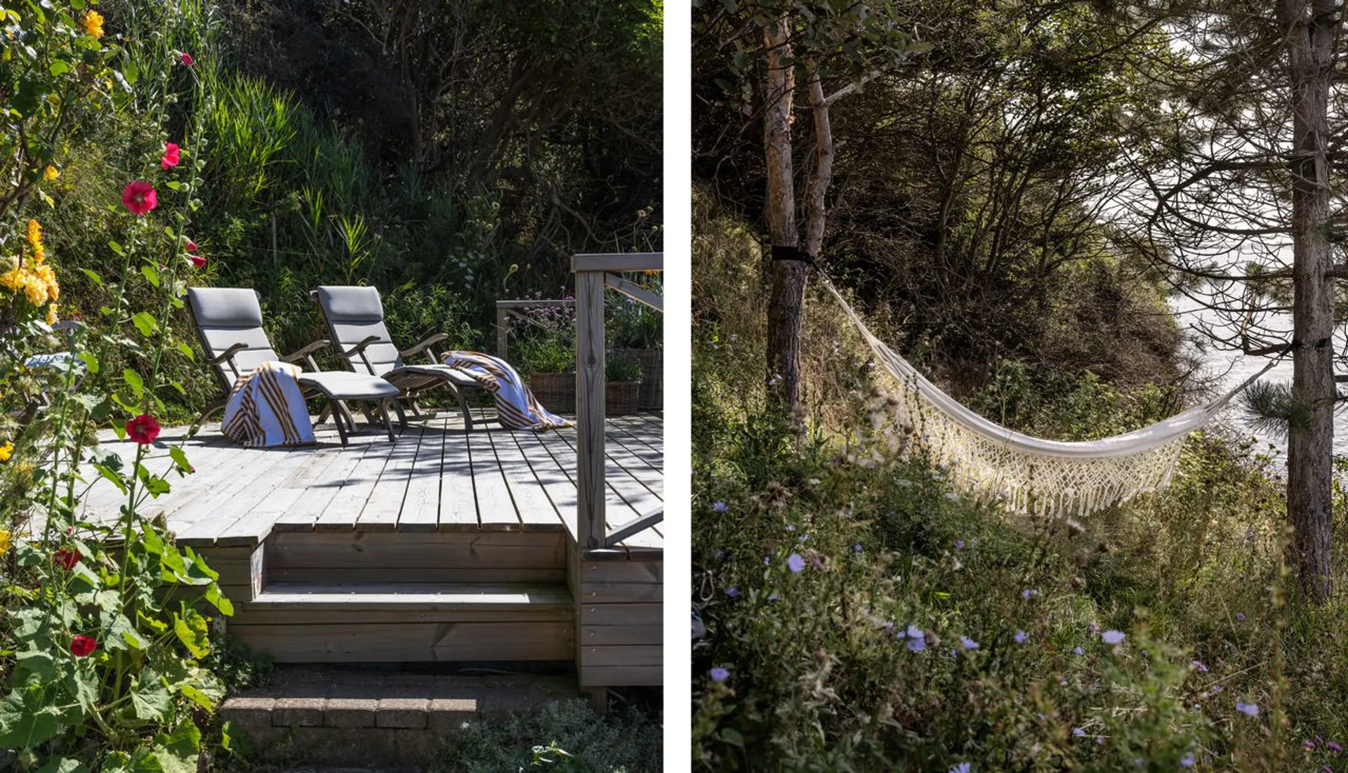 Grundens 506 m2 lægger sig på en lille repos til kystlinjen. Som en elegant hylde til dette autentiske sommerhus på 59 m2 (BBR). Alt virker så ægte og så naturligt. Så rigtigt. Nærmest berusende. Og sådan er det med dette sted. Det er et sted med store fortællinger om store kunstnere, der har holdt ferie her. Lad os bare komme til den måske nok mest flamboyante, nemlig at Asger Jorn, der var elev hos Kaalund, boede her i en periode, hvor han malede alle væggene i et tidligere strandhus (som desværre ikke består længere). Men ånden består stadig på stedet. Det er måske den der vælter en omkuld, når man kommer til enden af den private indkørelsesvej, og stedets kraftfuldhed byder en velkommen.
