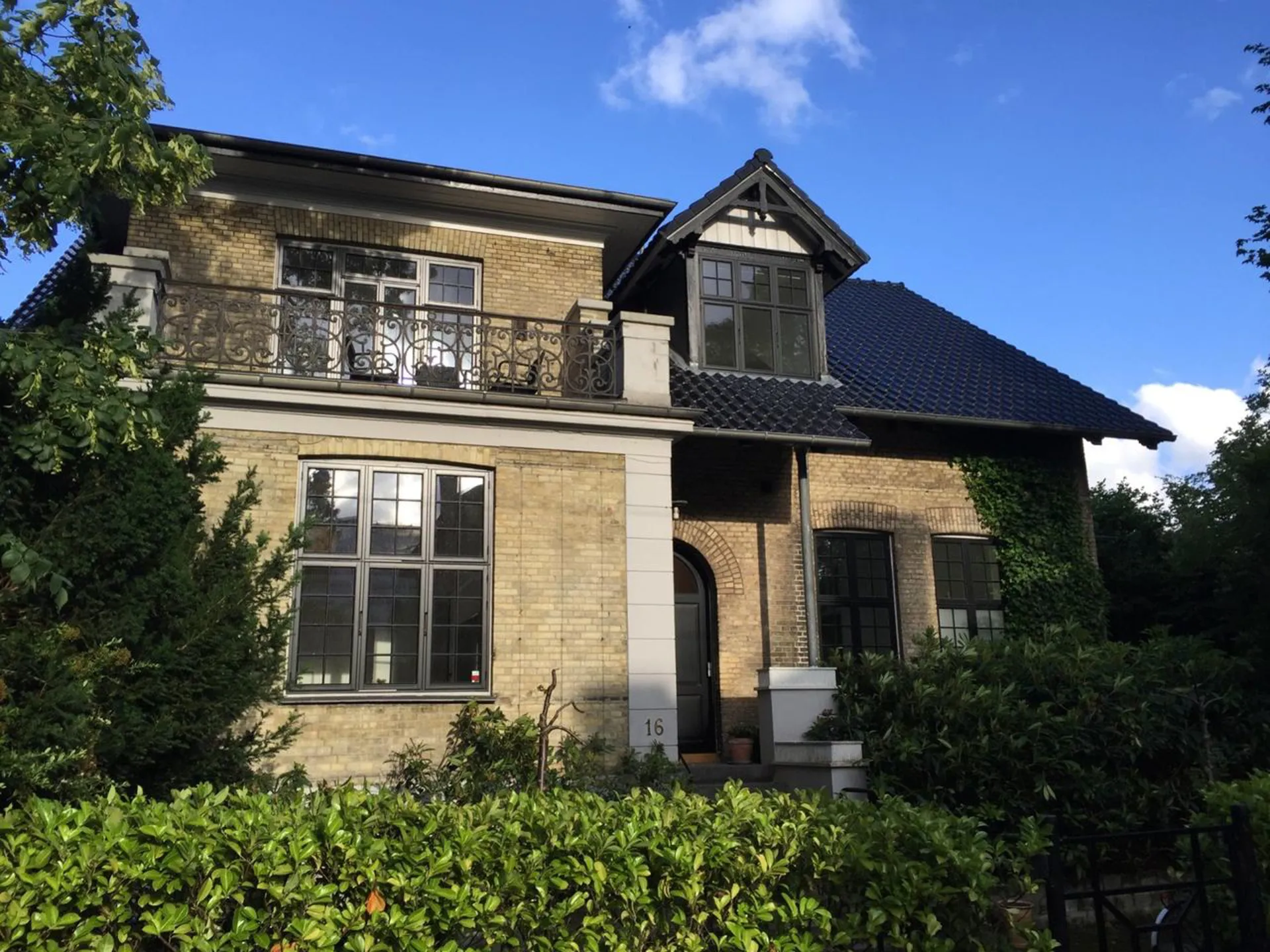 Herskabelig villa på godt over 500 etagemeter (BBR: 342 m2 + 47 m2 sidebygning) med absolut bedste beliggenhed på Frederiksberg C. Ejendommen er opført i 1864 og placerer sig arkitektonisk mellem klassisk engelsk arkitektur og en raffineret patriciervilla. En lille opløftet oase, hvor charmerende og oplevelsesrige villaer ligger side om side. Stemningen i dette gamle villakvarter beliggende mellem Bülowsvej, Gammel Kongevej og H.C. Ørstedsvej er noget helt særligt, og jeg kan ikke umiddelbart sammenligne det med andre steder i København – måske det lille villakvarter i Rosenvænget på Østerbro. Det er Danmarks ældste villakvarter og den seneste tid har det været igennem et generationsskifte, hvor flere og flere unge familier er flyttet ind. Folk der bor her, ønsker sig alt det skønne og fredfyldte, som Frederiksberg byder på, og vil samtidig gerne være i cykelafstand til grønthandlerne på Nørrebro, Kødbyen på Vesterbro samt Torvehallerne og nattelivet i K. Indretning: Entréen åbner op til husets smukke spisestue, som ligger i åben forbindelse med funktionelt indrettet køkken på den ene side, vinterhave til den anden og en suite med skøn vestvendt opholdsstue. Fra havestuen er der udgang til den smukt anlagte have med gammel beplantning og skønne terrasseområder. I hver sin side af stueetagen er der en selvstændig afdeling med to skønne soveværelser og et badeværelse i hver. 1. salen er indrettet med køkkenalrum, nyere lækkert indrettet badeværelse, tre skønne soveværelser og en vidunderlig pejsestue med udgang til vestvendt altan (kan oplagt indrettes som forældresoveværelse). 2. salen er det oprindelige spidsloft, som er indrettet som lounge. Dertil 110 m2 kælder, som trænger til istandsættelse, såfremt den skal bruges til andet end almindelig opbevaring og vaskekælder. Den tidligere garagebygning på 47 m2 er gennemistandsat som gæstebolig/teenageafdeling og er indrettet med entré til et stort alrum med mindre tekøkken og badeværelse med brus. Ejendommen fremstår generelt i fin stand med nyere tag og et væld af de smukkeste originale detaljer. Det er svært at forestille sig en villa, der kan blive et skønnere hjem for den pladskrævende familie, som ønsker at bo med bedste beliggenhed på Frederiksberg C. Ejendommen er opdelt i to enheder, hvilket også gør den oplagt som delehus mellem venner eller generationer, derved at den handles som to særskilte matrikler.
