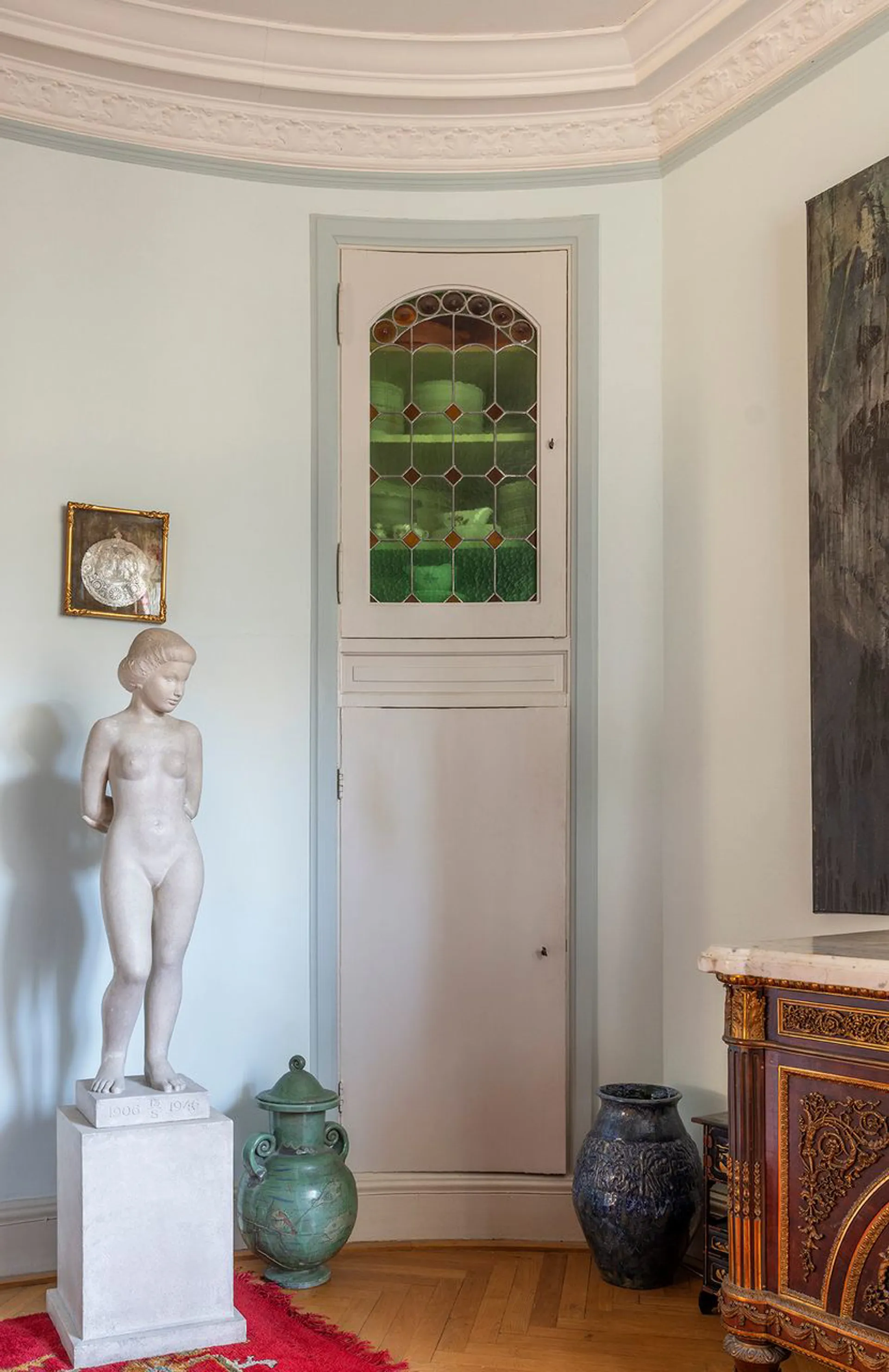 Lejligheden fremstår smuk – uendelig smuk, og den trænger til gennemgribende istandsættelse. Både fordi der ikke er gjort meget håndværksmæssigt arbejde i boligen de seneste årtier, men også for virkelig at udvikle lejlighedens fulde potentiale. For det er enormt, og med en moderne levestandard i disse historiske rammer, kan der gøres nogle greb, som løfter lejligheden ind i moderne tid. Men for pokker – gør det med respekt for det, der er. For det der er, er virkeligt enestående smukt. Smukt for dem, der er så heldige at kunne bo her, smukt for kvarteret og ikke mindst smukt for vores nationale kulturarv.