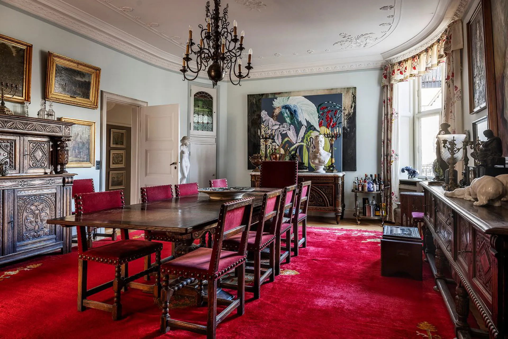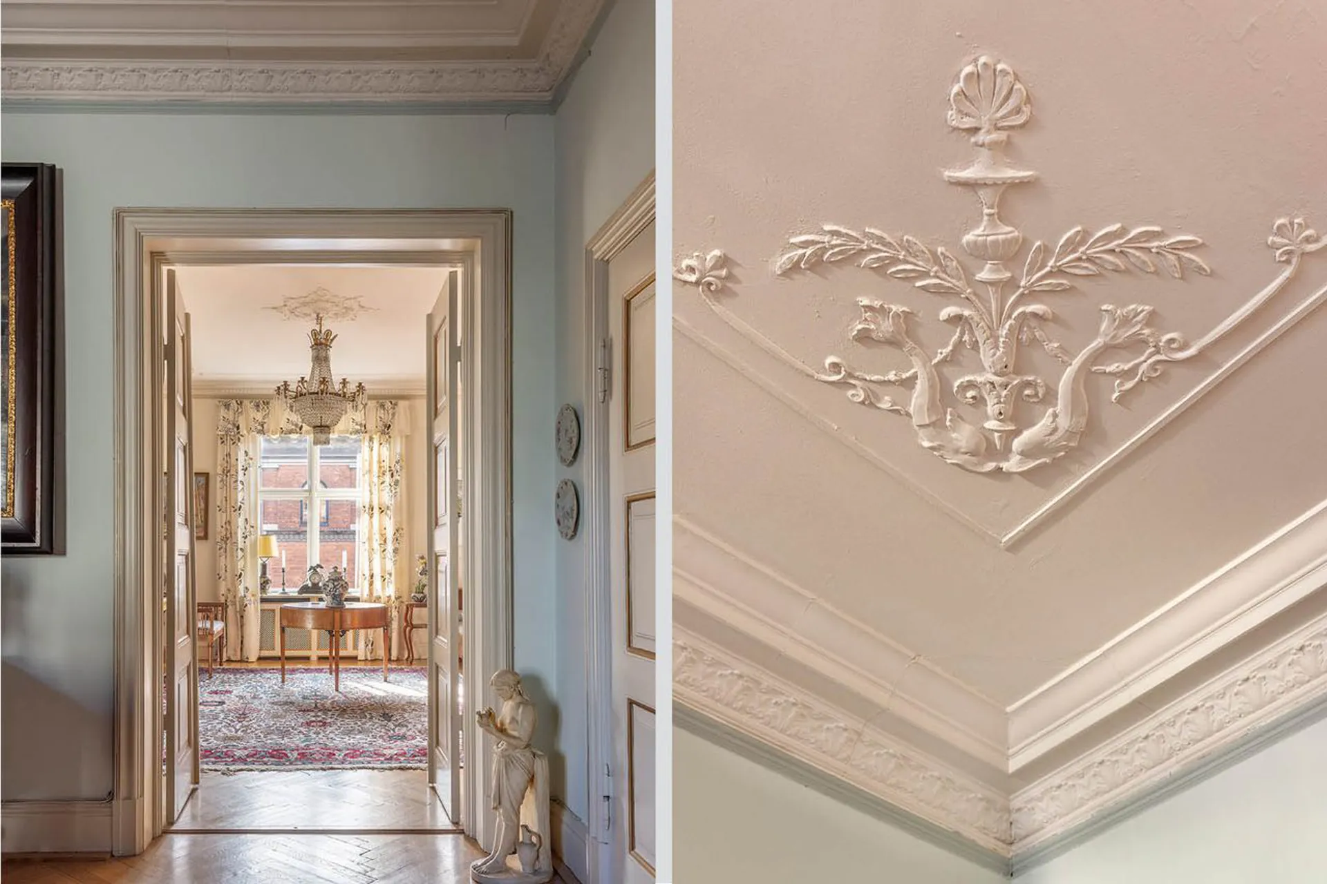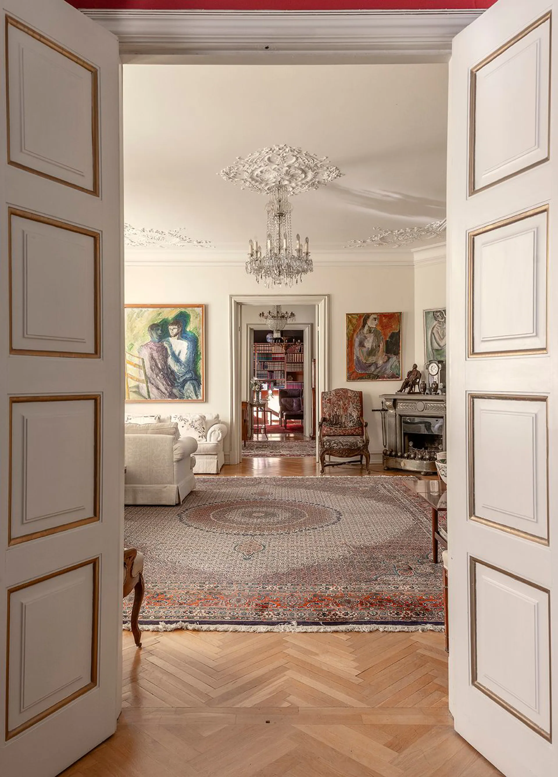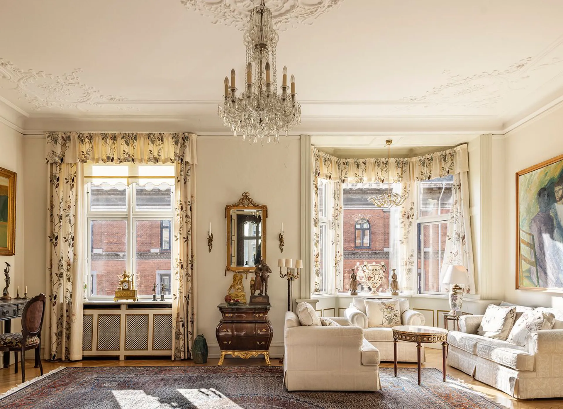 Lejligheden, der tidligere har været ejet af skuespillegenderne Poul Reumert og Anna Borg, bærer tydeligt præg af denne kunstneriske fortælling. Lejligheden er indrettet med adskillige tilpas højloftede stuer en suite, enorm spisestue og et væld af værelser – nogle til at sove i, nogle til at klæde sig på i og nogle til at arbejde i. Nogle kan også bruges som gæsteværelser, eller indrettes som selvstændig au pair afdeling. Hvis fem stuer er for meget, kan nogle af disse også bruges til, ja, hvad man måtte drømme om – for her er i sandhed plads nok.