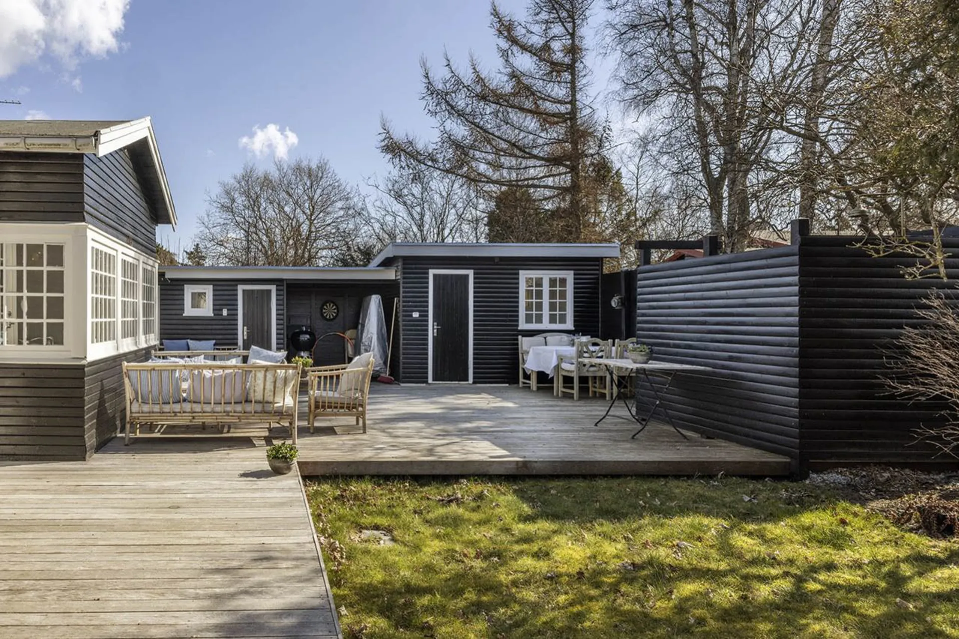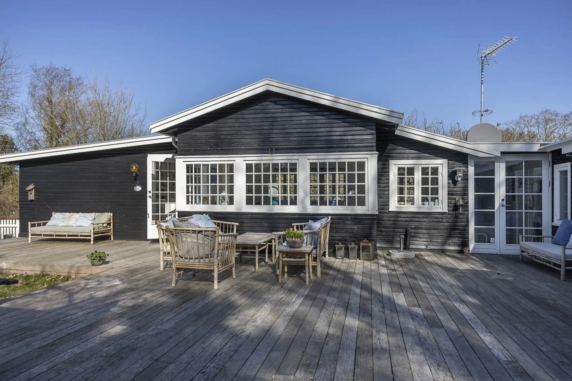 Huset er opført som et klassisk sommerhus med sort træbeklædning, hvide kittede vinduer og sammenhængende terrasseområder, bygget i Jatoba træ. Udendørsbruser, græsplæne og gammel beplantning, som både tjener det fine formål at skabe nuancer af skygge og sol på den 985m2 grund, og samtidig vidner de smukke træer om en historie på tværs af generationer.