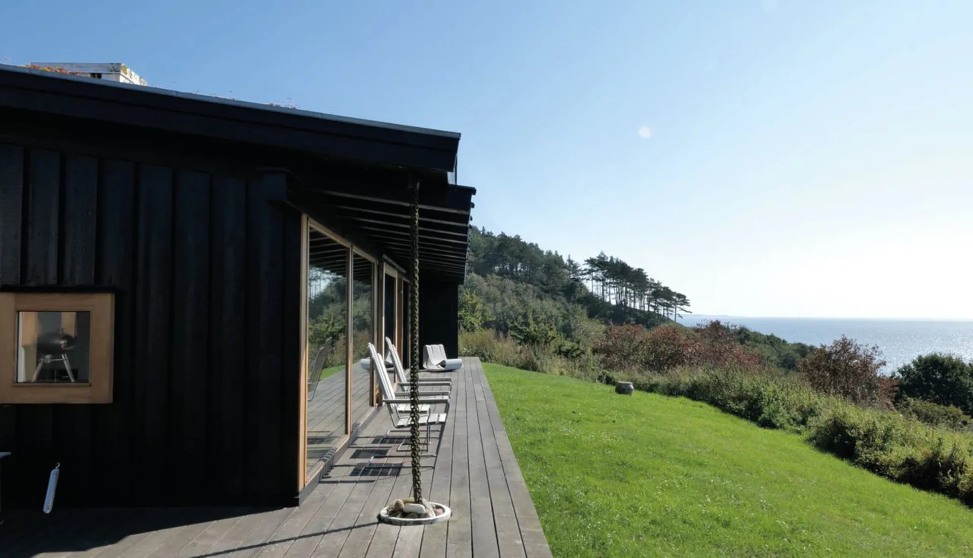 Eksorbitant fritidsbolig i 1. række til Aarhus Bugt, tegnet af Ole Refsgård med to minutters gang til den skønneste badestrand