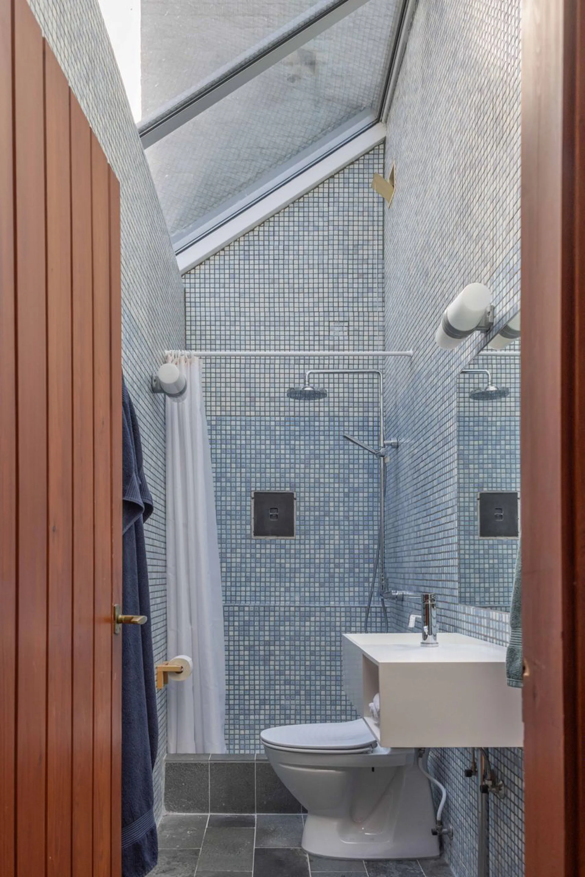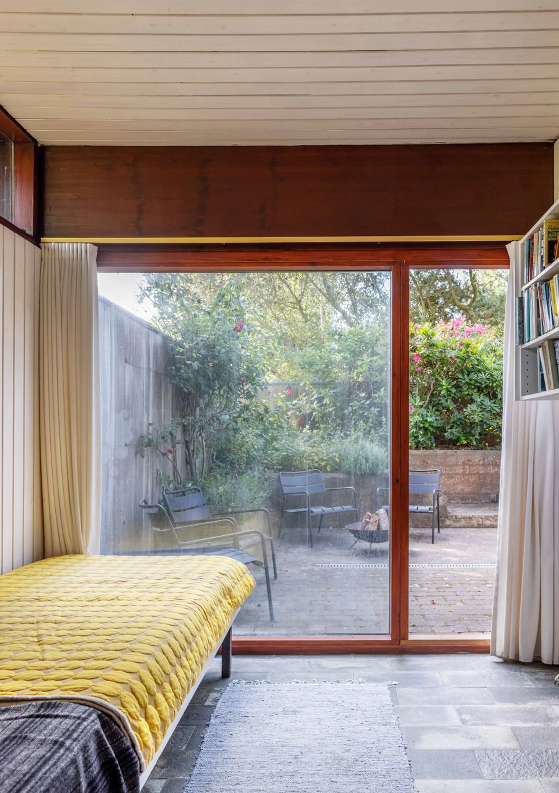 Her er der plads til 11 gæster – og stadig hyggeligt for to. Dette er et hus på to etager, hvad er ganske sjældent for området. På øverste plan er der indrettet to store stuer i forlængelse af hinanden, i åben forbindelse med funktionelt indrettet køkken – en idé, der i dag føles lige så naturlig, men som dengang var fremsynet. Desuden velproportioneret masterbedroom-afdeling. I underetagen er der indrettet to store værelser med egne badeværelser og direkte adgang til en sydlandsk gårdhave. Ved hoveddøren et gæstetoilet.