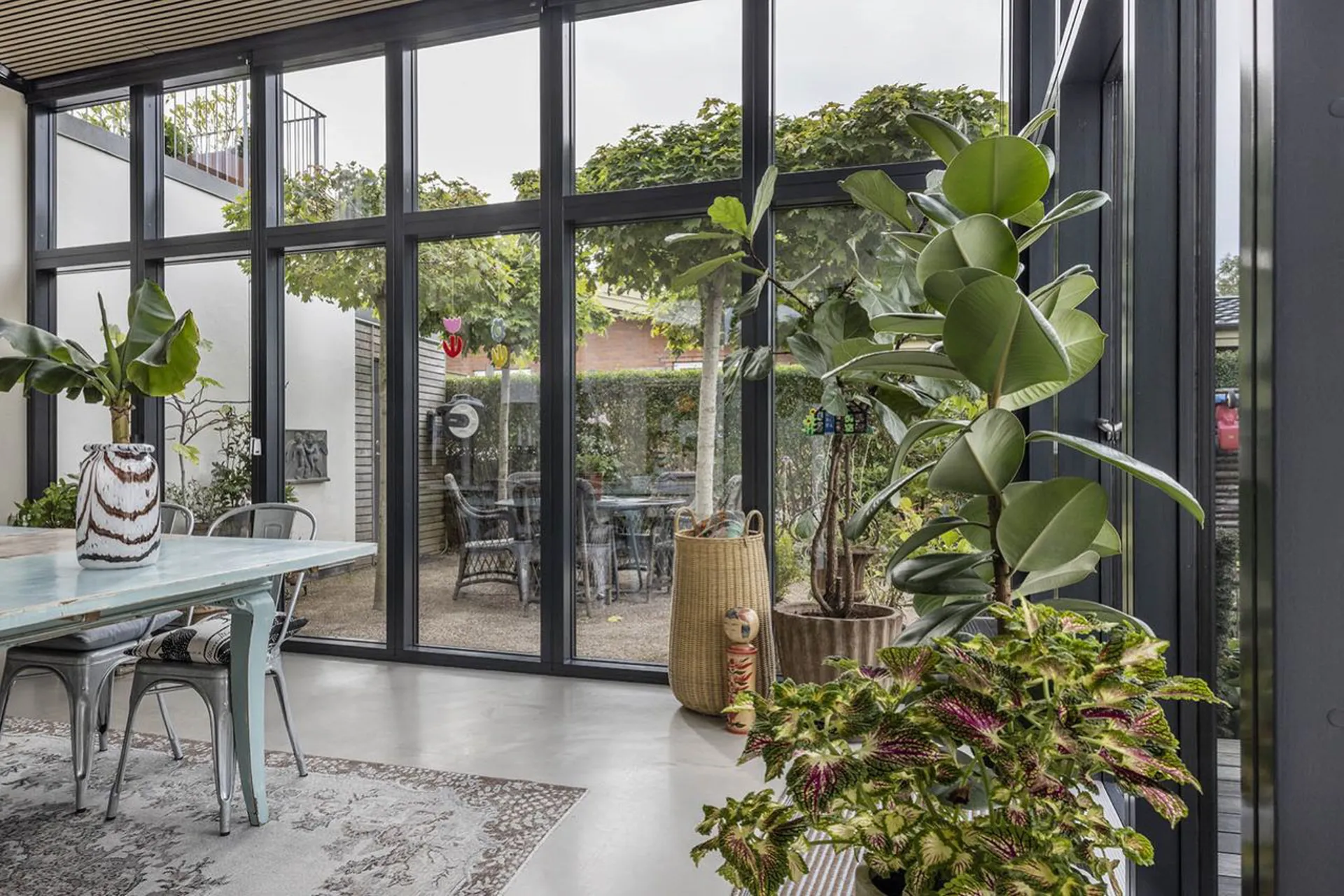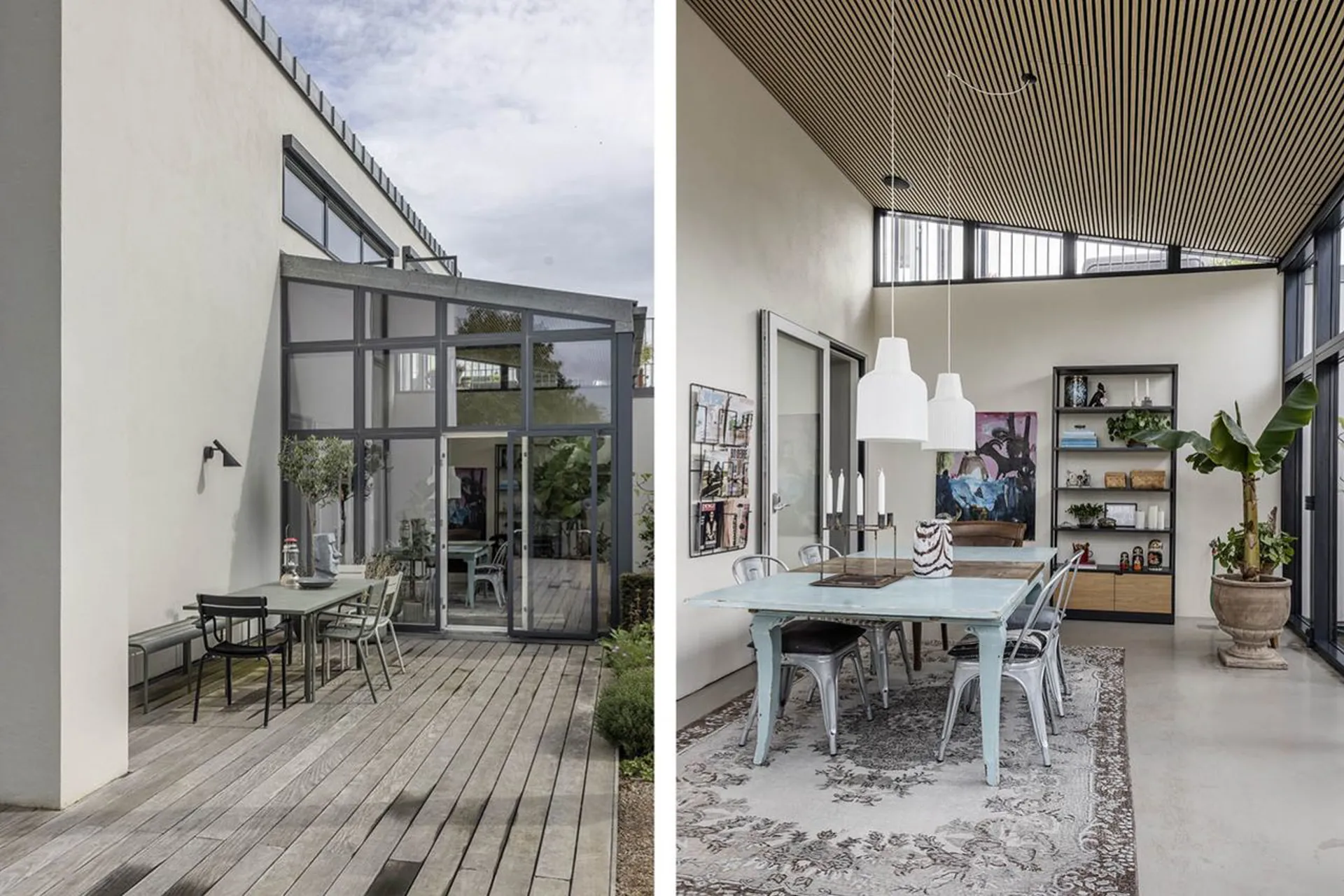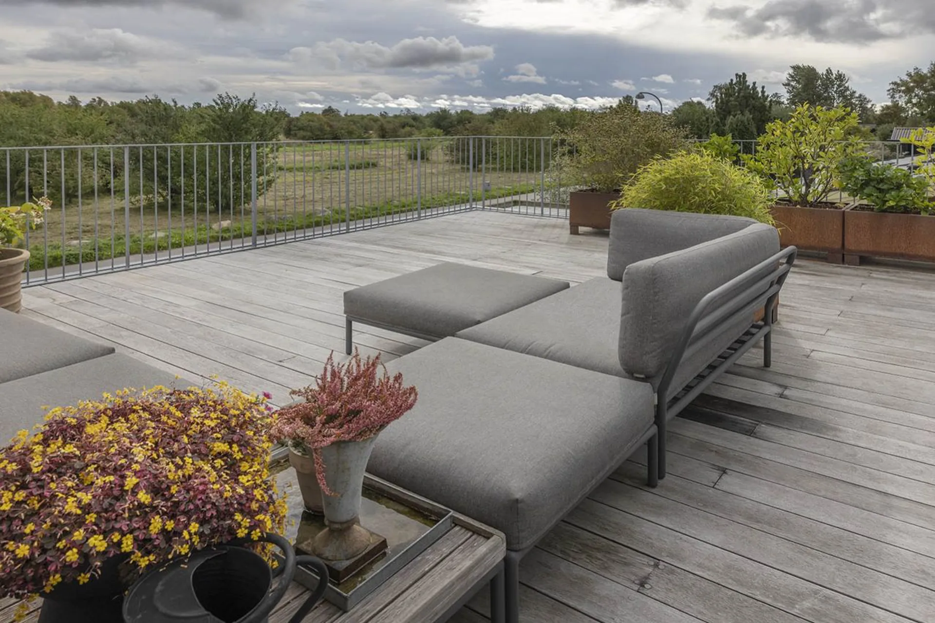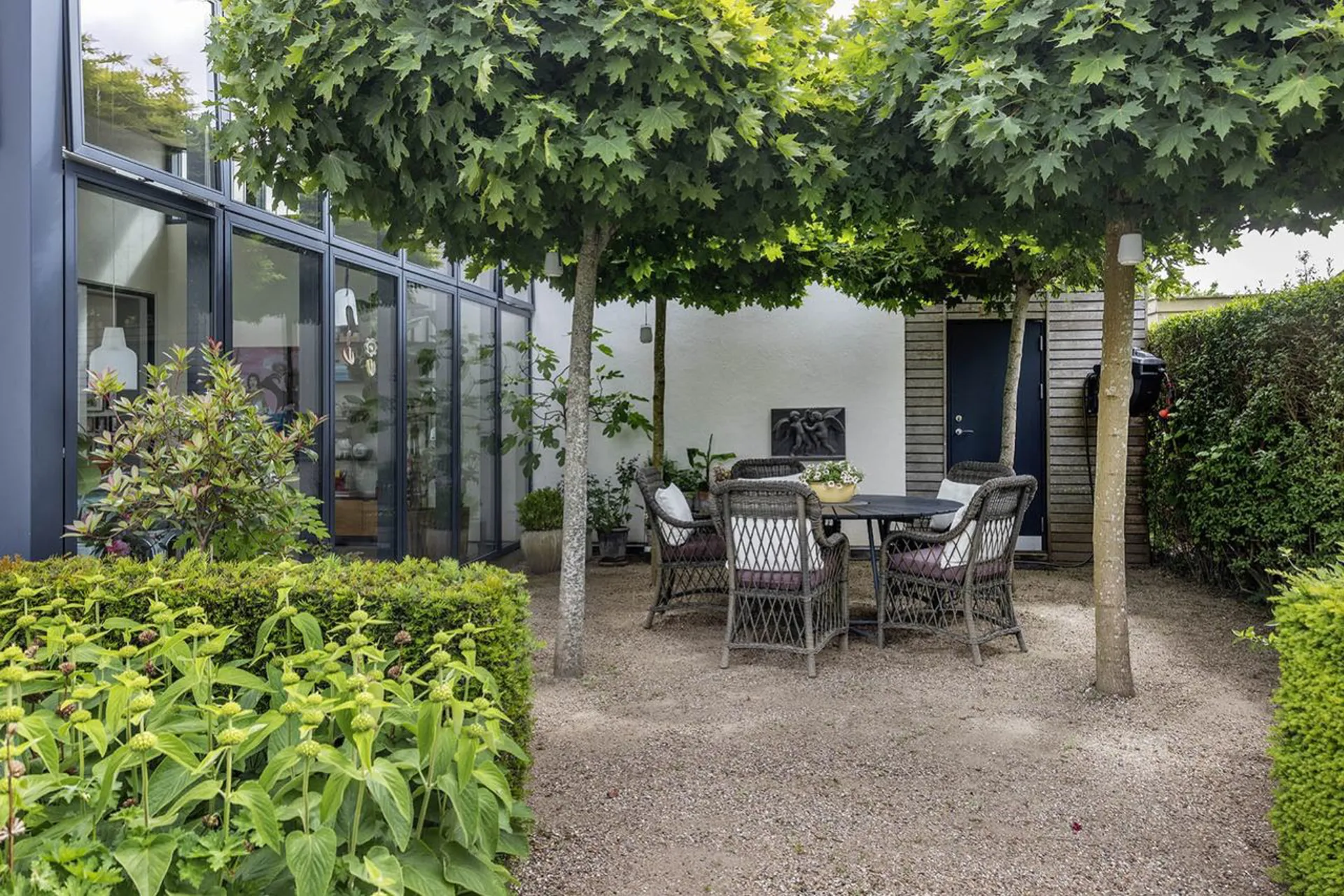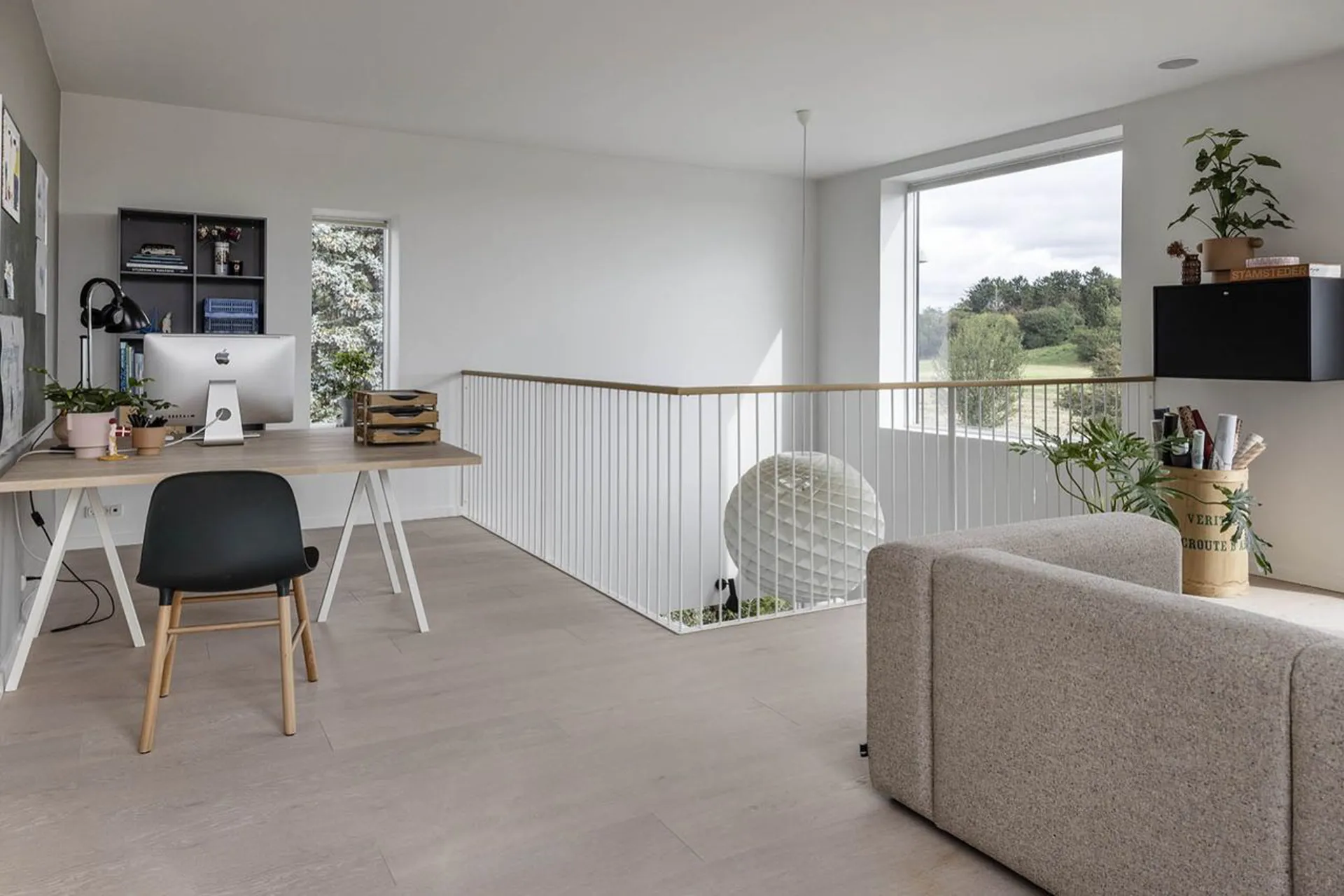 Huset er skabt i en balance mellem funktion, de skønneste lysindfald og udstrakte rumligheder med kig på 20 meter i husets længde med op til 5,5 meters loftshøjde. Fra husets enorme vinduespartier er der fra alle steder en generøs kontakt med det elegante haveanlæg, der omgrænser husets. Staude- og Rododendronbede står side om side med æbletræer, klematis, roser, haverum, solterrasser og intet mindre end egen petanquebane.