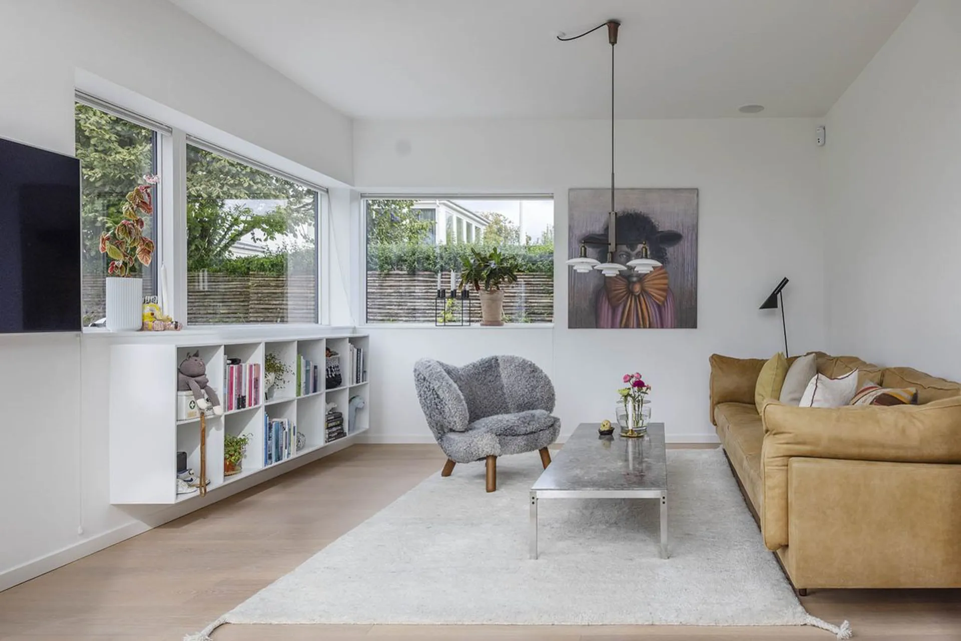 Dette er en ejendom der i fuldkommenhed formår at forene funkisvillaens idé med moderne boligkomfort. Stringens og funktionalitet forenes med nærhed og varme. Tilmed bundet sammen i et lavenergihus med jordvarme- og varmegenvindingsanlæg, solcelleanlæg, gulvvarme overalt og generelt et skridt foran på nutidens bekvæmmeligheder.
