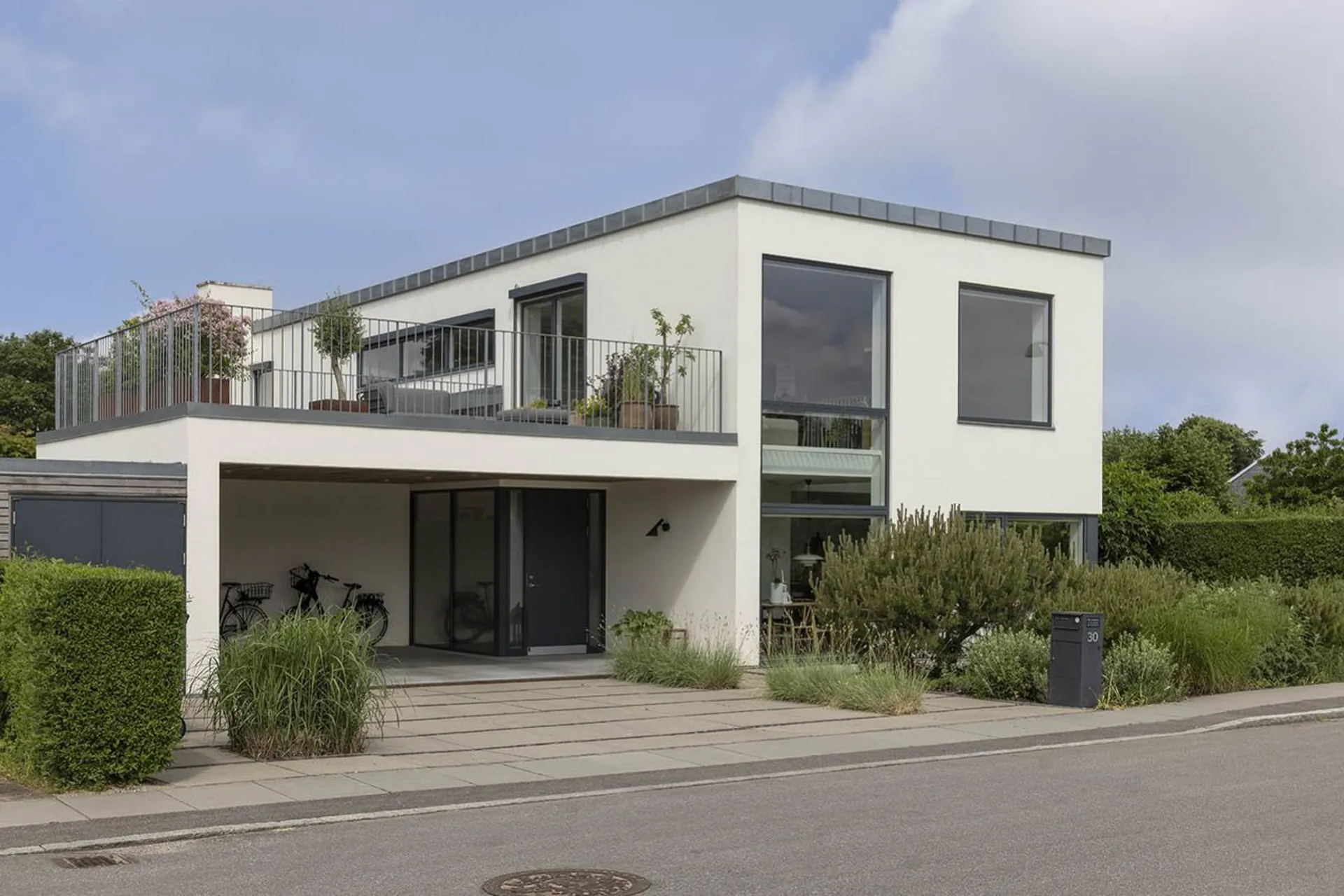 Et arkitektonisk mesterværk tegnet af Ole J. H. Hagen Arkitekter og opført med en utrættelig kompromisløshed i 2010 – formgivet i ære for vores moderne arkitekturhistories guldalder og raffineret igennem et moderne livs brug af huset. Som villa for den store familie, hvor hverdagens funktionalitet og bekvæmmelighed hele tiden er søgt i samspil med elegante og respektfulde omgivelser.