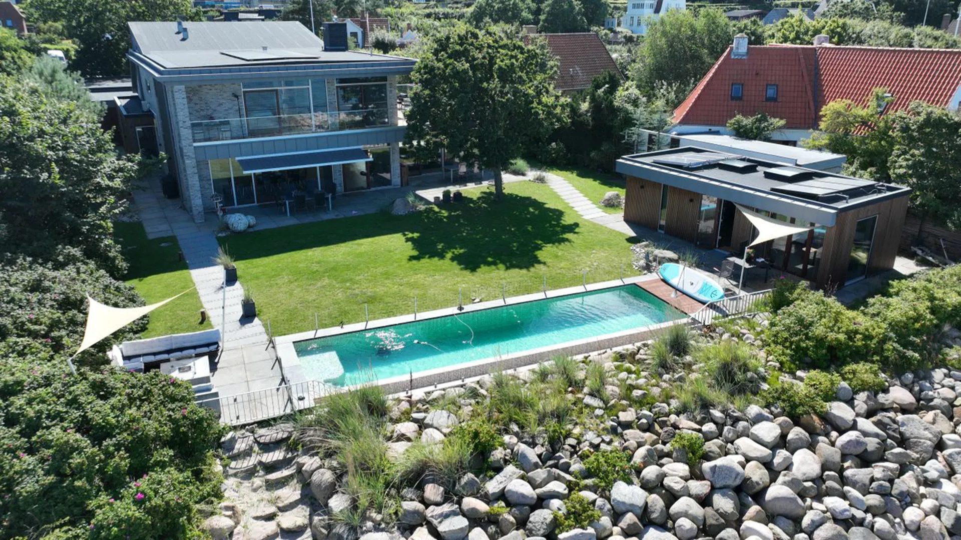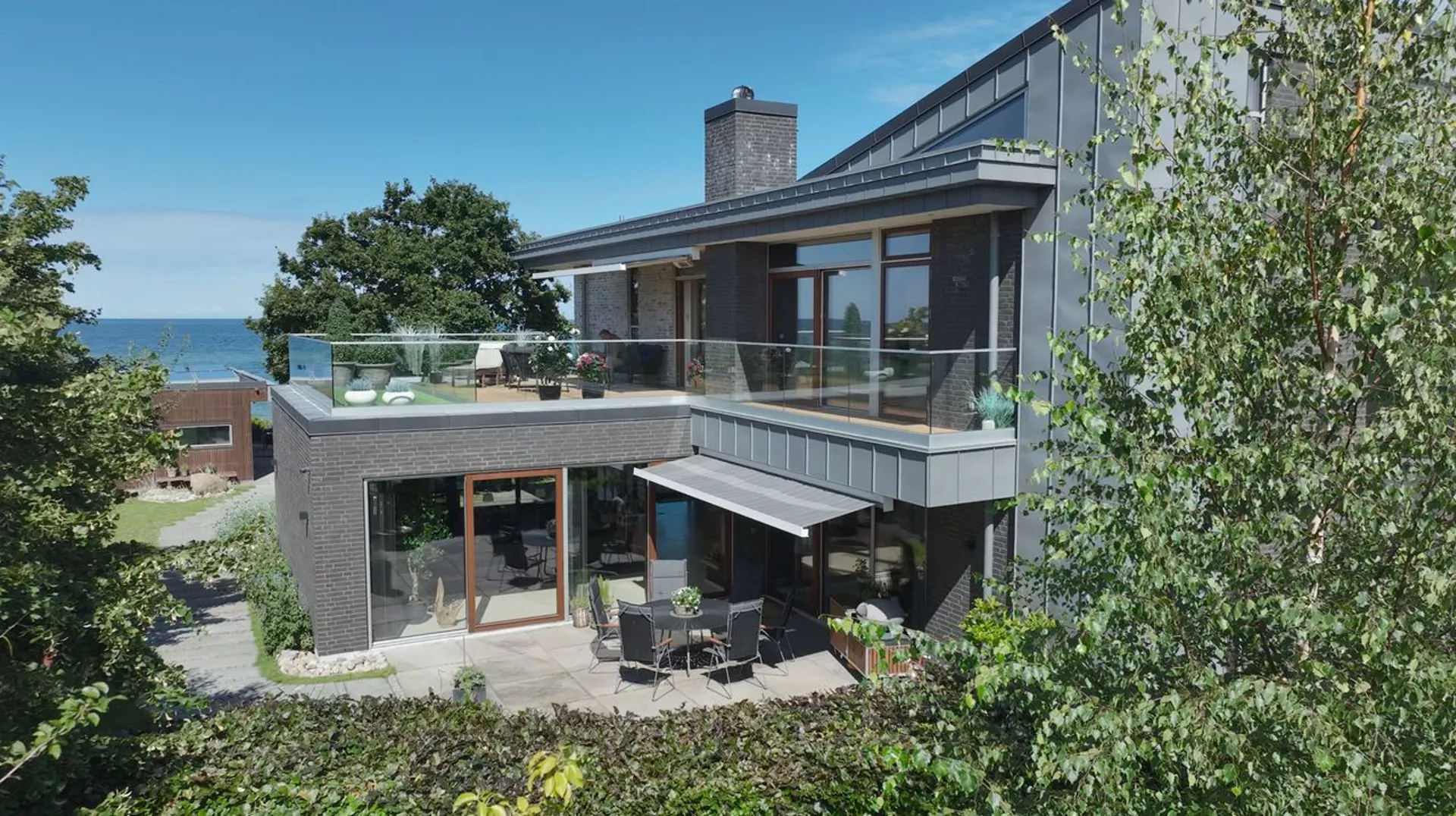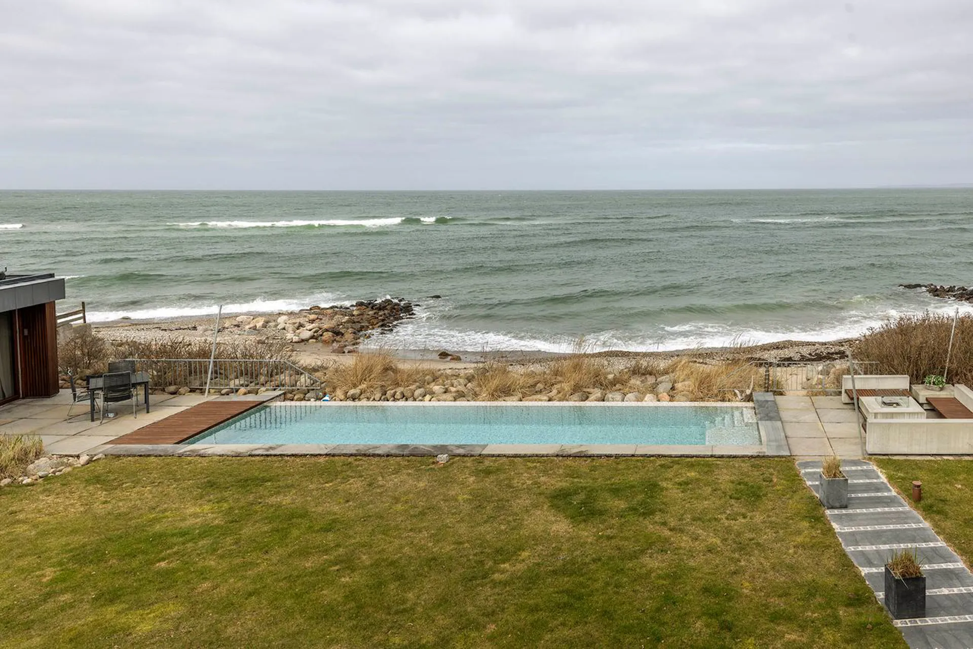 Bag det bølgende hegn gemmer der sig noget, man ikke forventer. En arkitekttegnet villa fra 2019, diskret placeret i terrænet og skærmet af en smukt beplantet forhave. Fra vejen fornemmer man kun en antydning. Men så åbner huset sig. Mod vandet. Mod lyset. Mod horisonten.