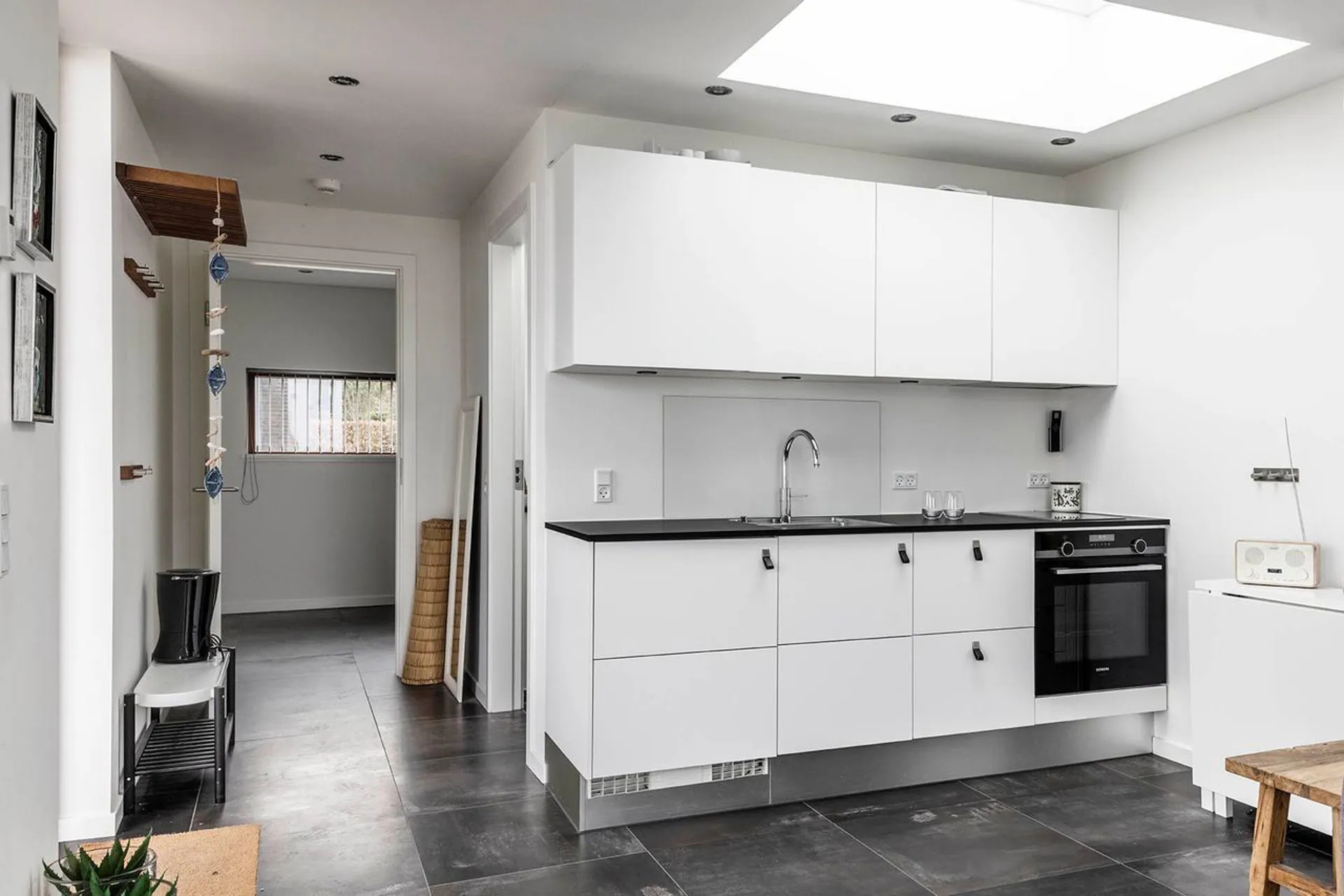 Nede mod vandet ligger annekset. Eller beach house, som det i virkeligheden er. 40 kvadratmeter med egen stue, køkken, badeværelse og soveværelse. Perfekt til gæster. Perfekt til familien. Og med en udsigt, der følger kystlinjen mod Gilleleje Havn.