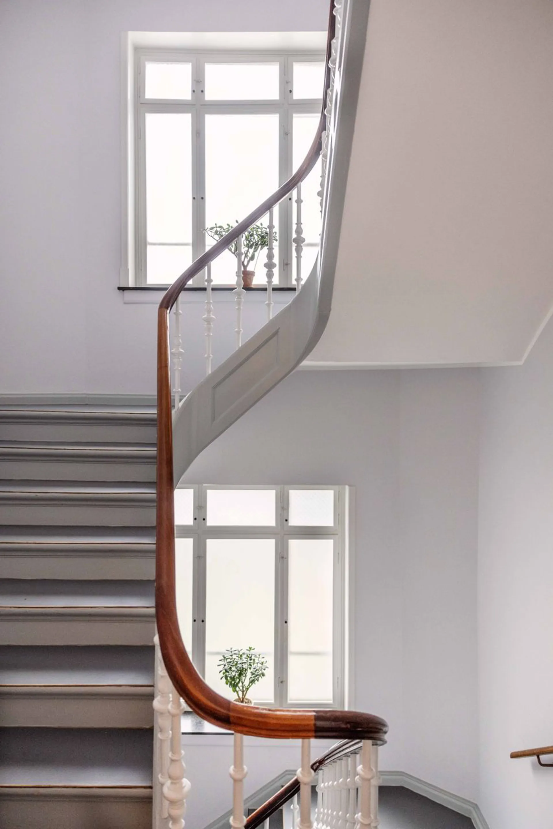 Ejendommen blev opført i 1886 og fremstår som en stolt reference til tidens klassicistiske arkitektur. Et overflødighedshorn af detaljer og en rejse gennem de smukkeste håndværksmæssige elementer.
