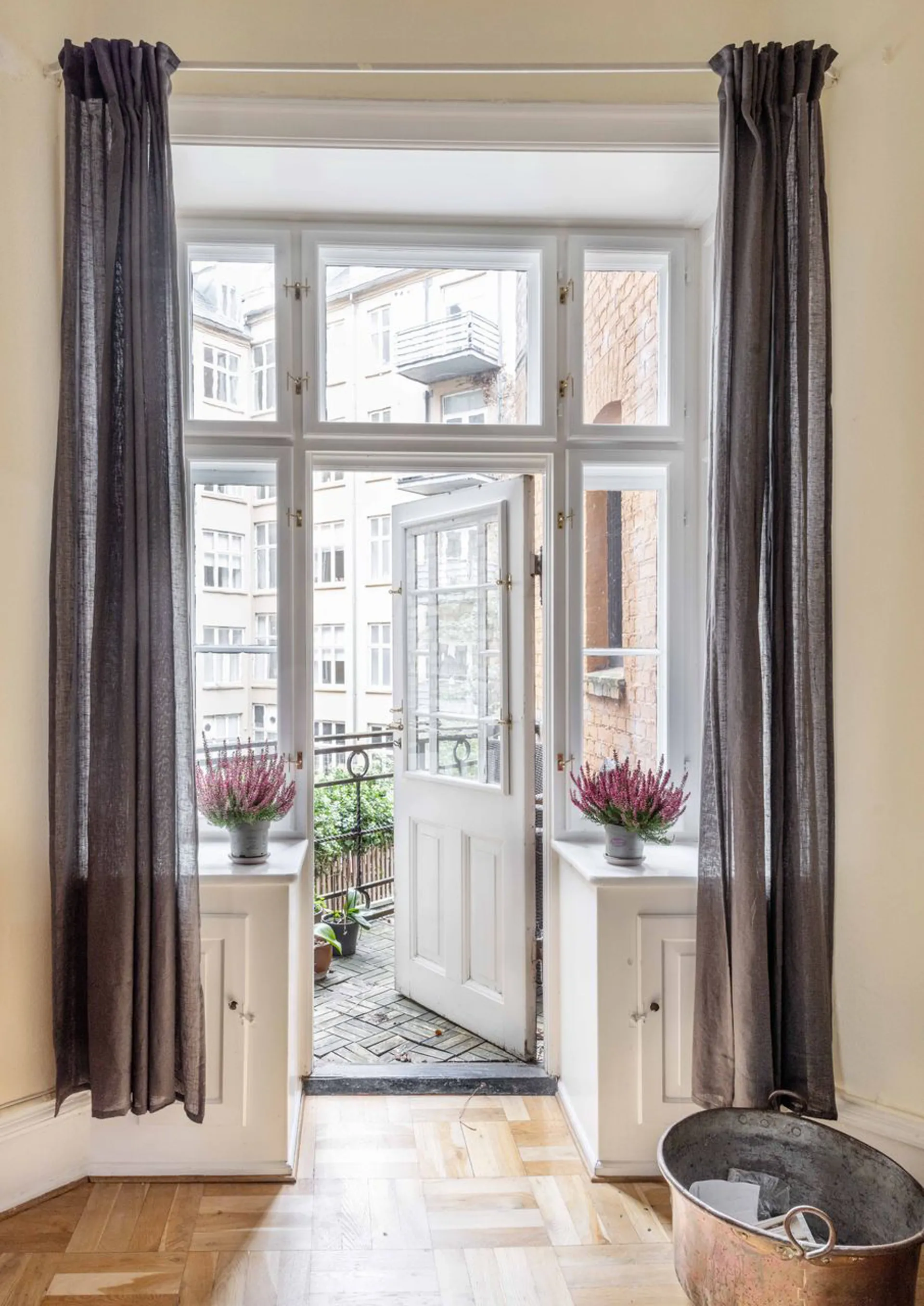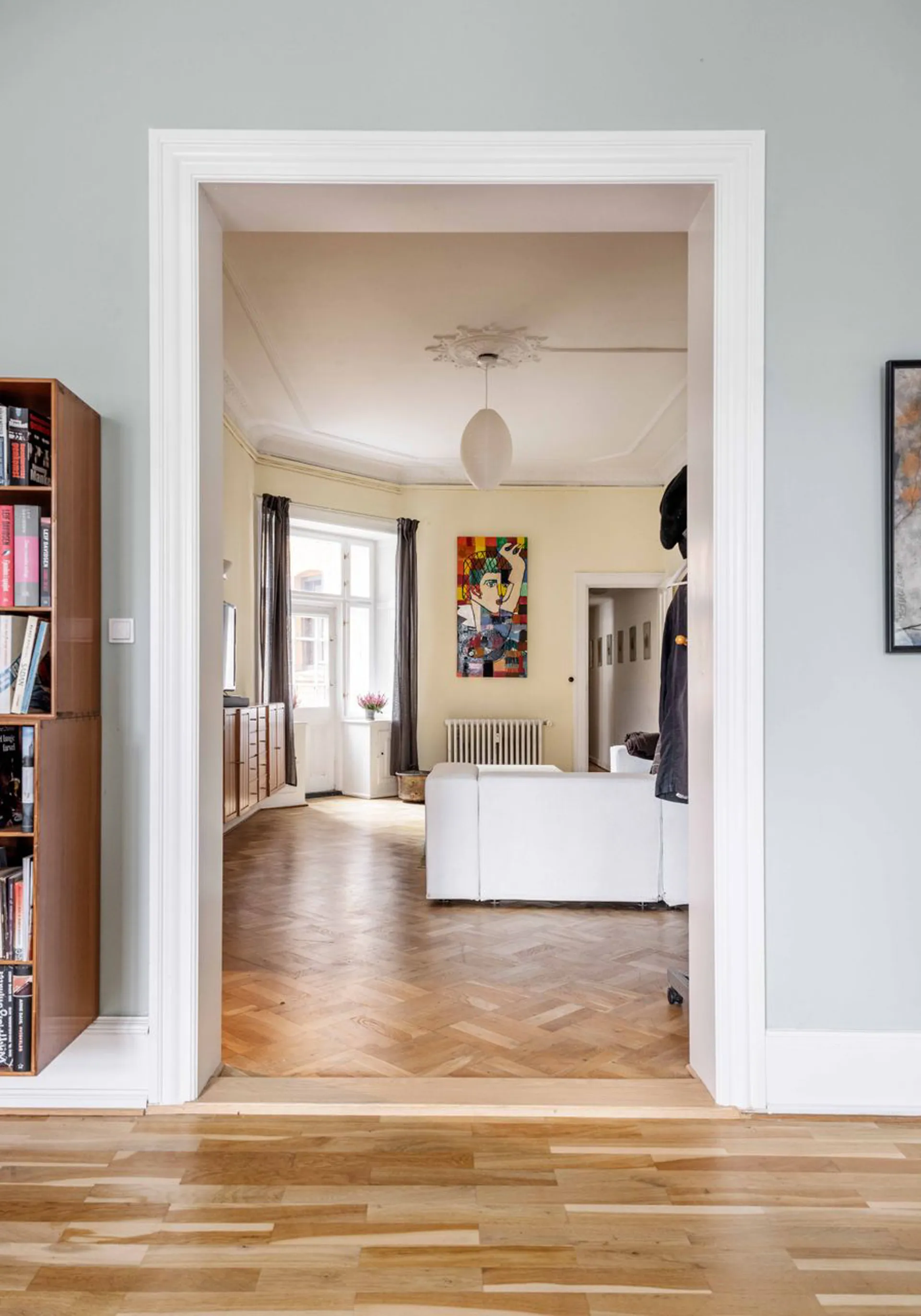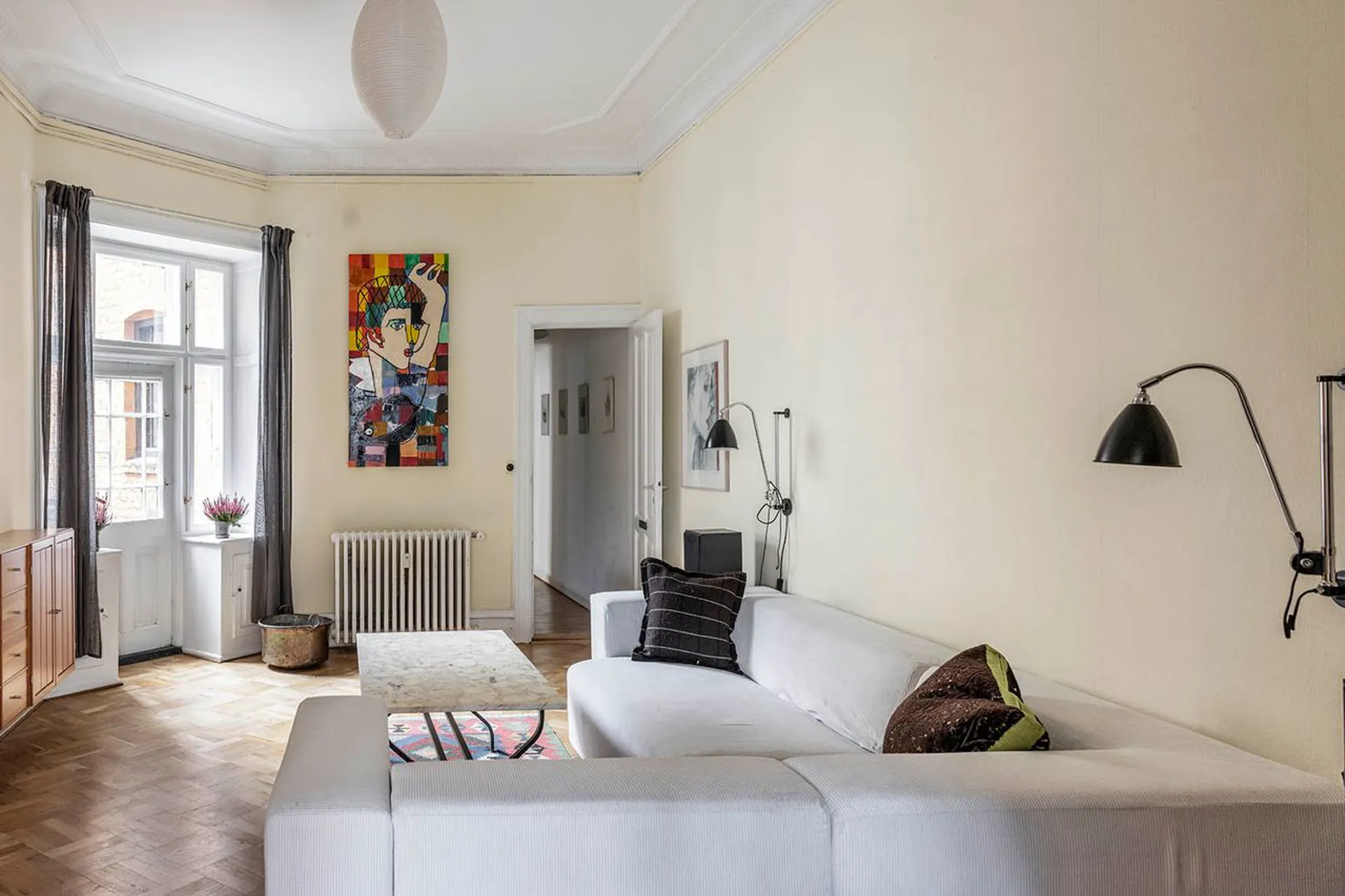 Veldisponeret, højloftet og gennemgående klassisk herskabslejlighed på 225 m2 (BBR). Der er ikke mange, der kan prale af at bo på selveste Trianglen, men her er muligheden. Her er muligheden for udsigt til det monumentære B.T.hus, der i folkemunde kaldes Bien. Henover Bien og i direkte akse er der udsigt til Fælledparkens hovedindgang hvor Statuen ’Genforeningen’ står i sin pragt. Udsigten til Fælledparken efterlader påmindelse om, at et af byens absolut mest storslåede naturområder ligger lige uden for døren.