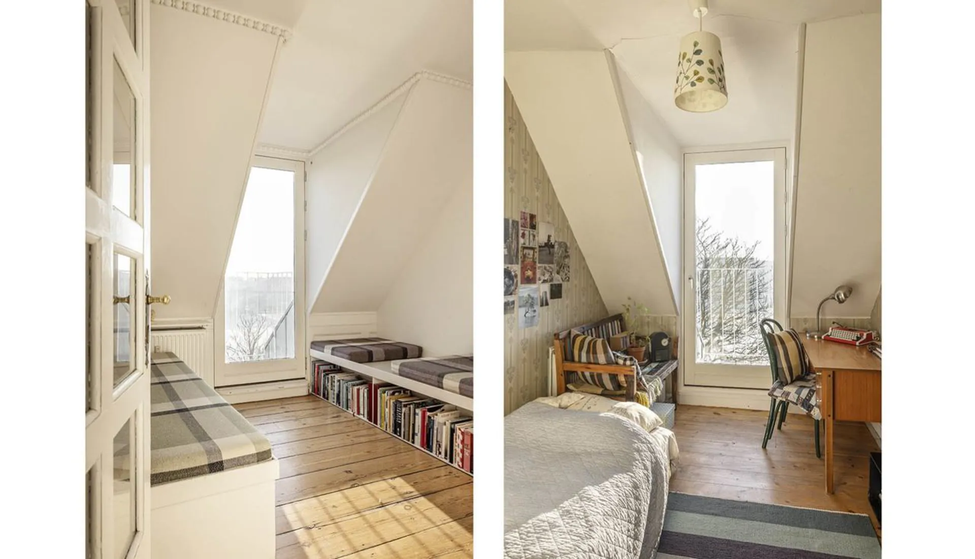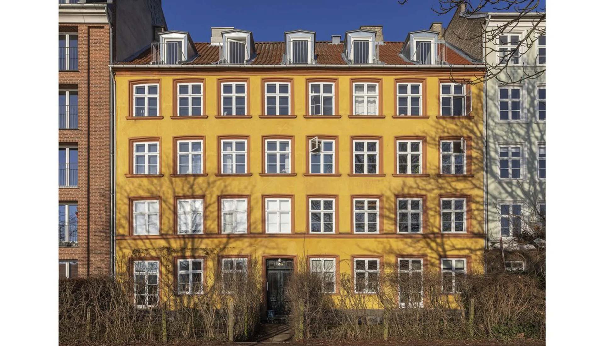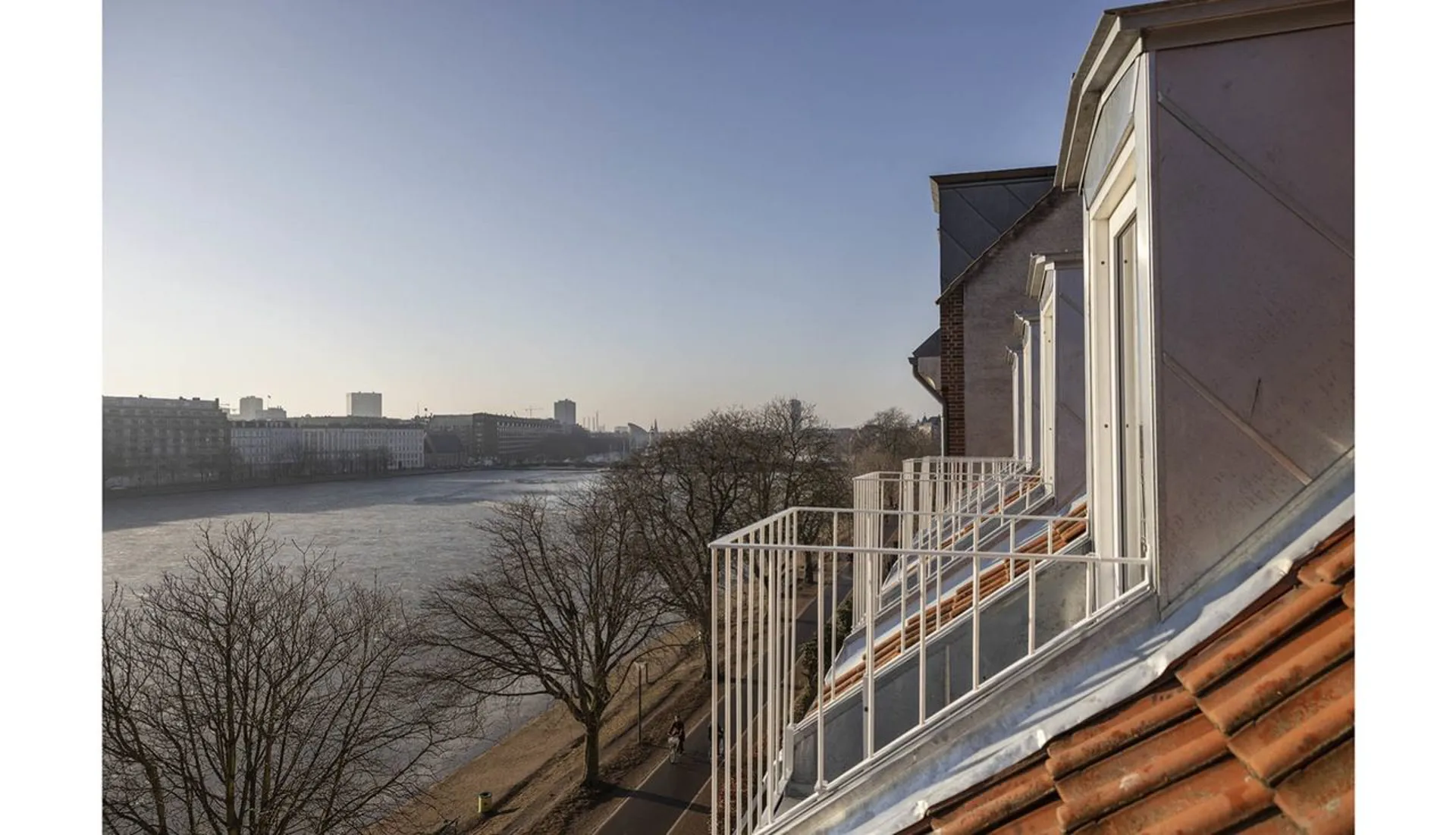 Sjældent udbudt penthouselejlighed med fem altaner i første række til Søerne i København. Det gule hus er fra 1880 og kendt af mange, og ikke uden grund er det blevet til et ikonisk kendemærke for husrækken mod søerne. Fortil har man adgang til fælles havestykke lige dér foran dosseringen, og bagtil har man det skønneste gårdmiljø med to legepladser, petanquebaner og adskillige haverum, der giver plads til børn og voksne i alle aldre. Faktisk strækker gårdanlægget sig 11 huse fra Baggesensgade til Korsgade. Lejligheden ligger i hele den øverste etage på 119 m2 (BBR) med yderligere hemse-arealer og mulighed for at inddrage kiploftet. Et åndehul midt i byen. Et leverum, som tillader lys, luft og horisont at fosse ind under huden - og fra alle værelser i lejligheden har man ugeneret udsigt over søerne, med Københavns smukke bygninger, tårne og spir, som bagvedliggende kulisser. En bedre beliggenhed findes vel næppe på Nørrebro, end sige i København. Og det særligt skønne ved dette sted er, at man bliver glad helt ind i midten af hjertet af at bo hér. Indretning: Entré til mellemgang, hvorfra der til den ene side er adgang til bryggers, køkkenalrum med plads til et stort spisebord, yderligere til tre skønne soveværelser, og i den anden ende af lejligheden er der badeværelse med kar, mellemværelse (tidligere køkken) og hyggelig opholdsstue med loft til kip og en enestående specieldesignet skabsvæg med indbygget hems og hyggekrog. Fra entréen er der desuden trappe til kipværelse og depotrum på kiploftet. Fra alle værelser er der egen altan orienteret mod søerne – og om sommeren, når de imponerende træer står i fuld flor, og fra kiploftværelset er der tre fine tagvinduer, som sender blikket hen over byens tage og op i himlens myriade af stjernebilleder. Fra altanerne har man Nytårsaften byens flotteste fyrværkeri-udsigt, og mens man glæder sig til årsskiftet, må man “nøjes” med udsigten til Tivolis fyrværkeri hver onsdag og lørdag.
