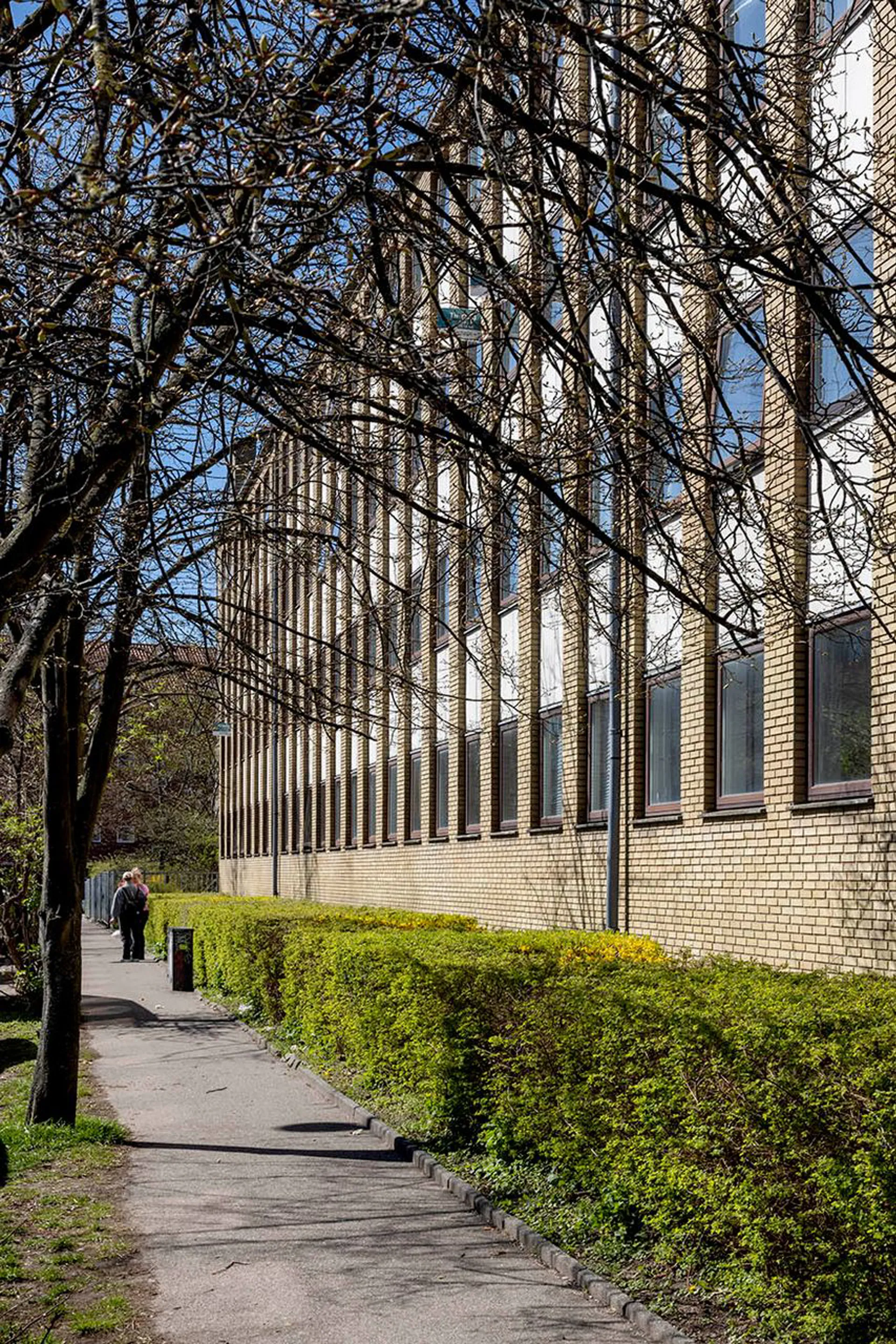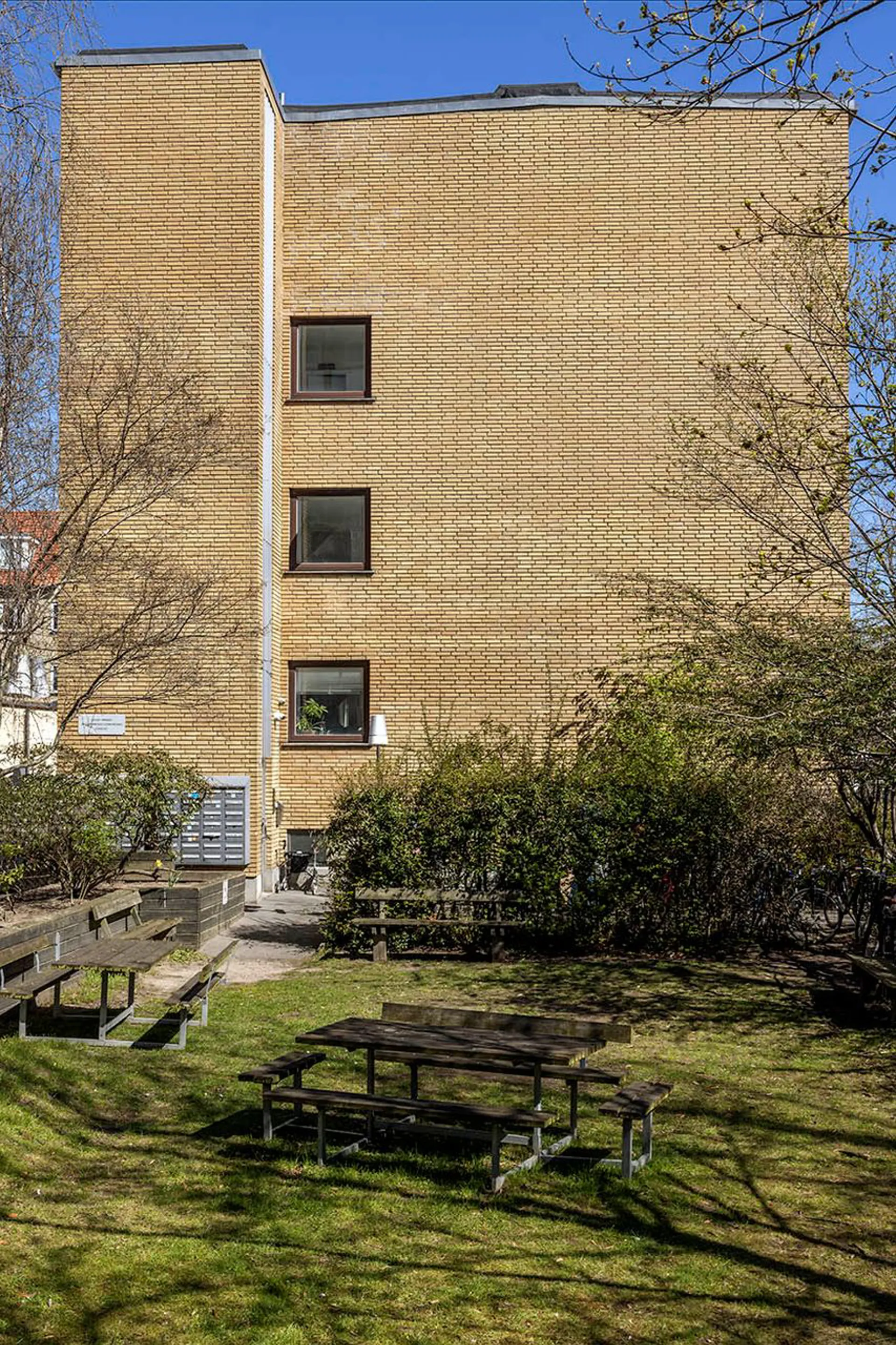 Lejligheden ligger tilbagetrukket og orienterer sig uforstyrret mod gadens store gamle træer.