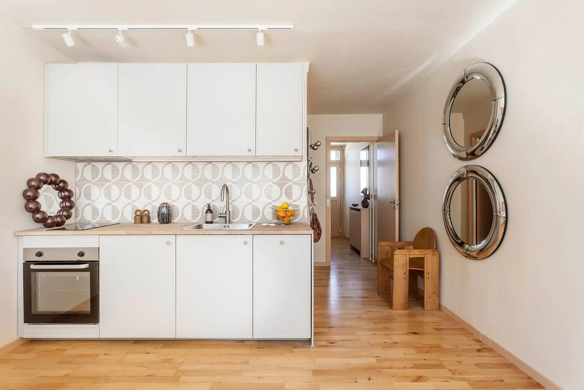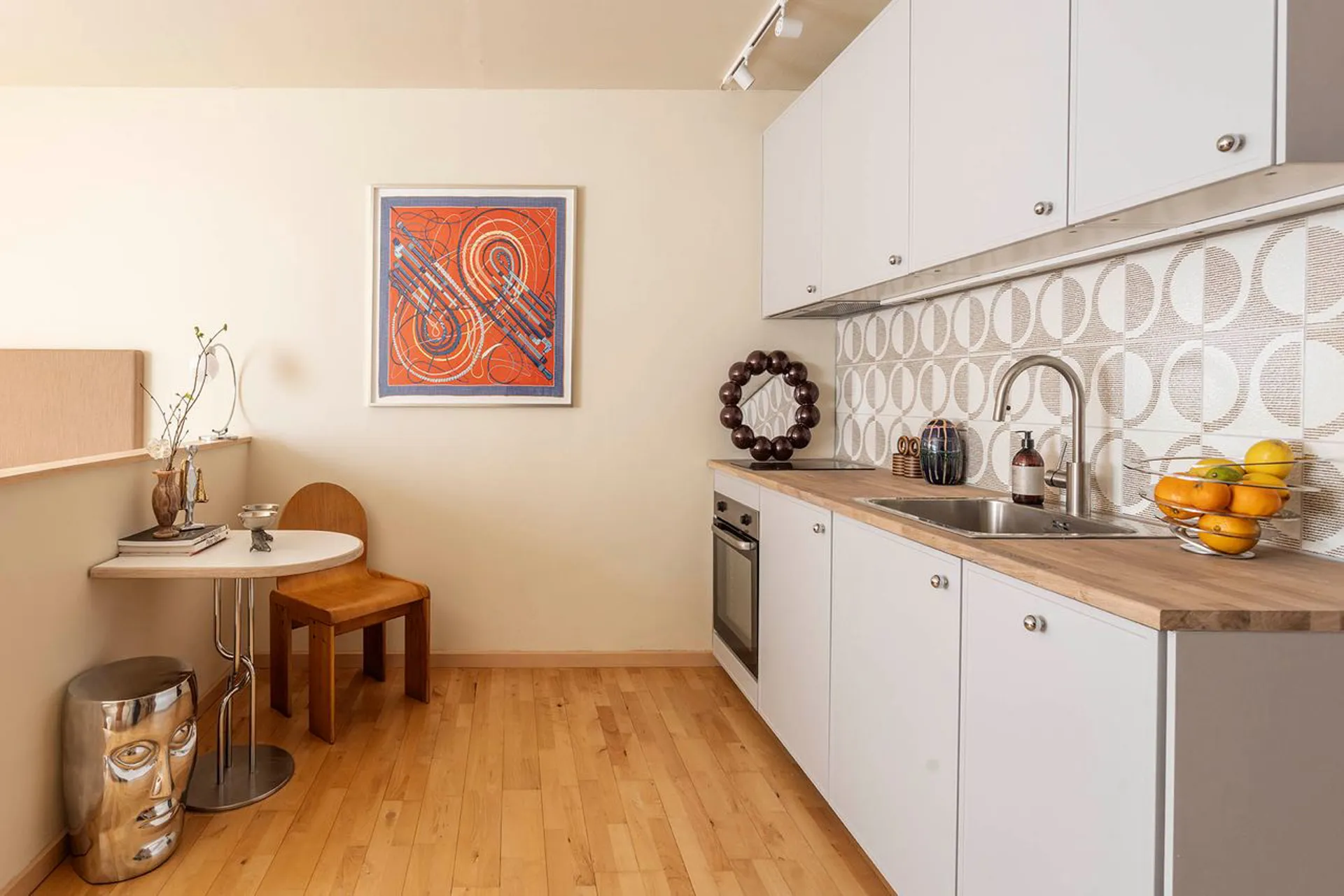 Bygningen er opført i 1973 og lejligheden er netop blevet renoveret til det, der bedst af alt kan sidestilles med en optimeret studiolejlighed. Løsningerne er gennemtænkte og der er ikke gået på kompromis med kvaliteten.