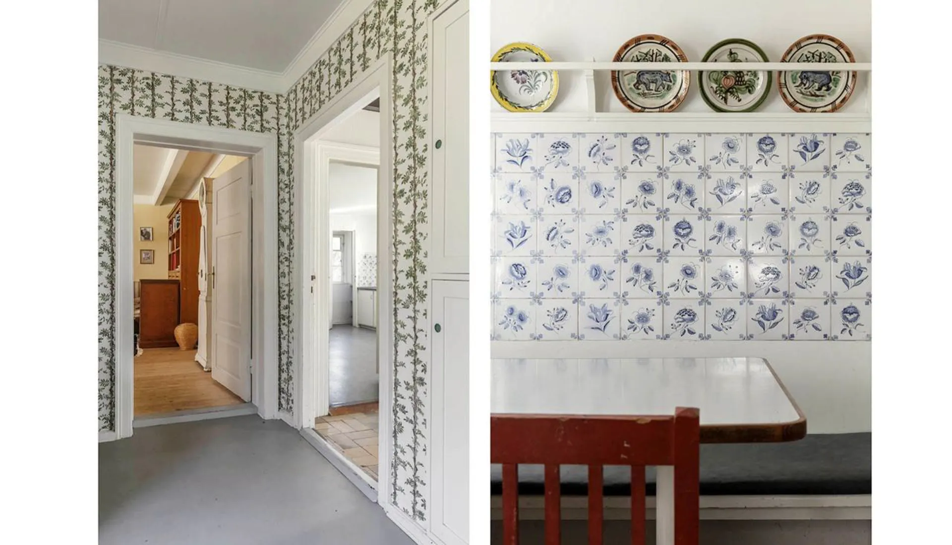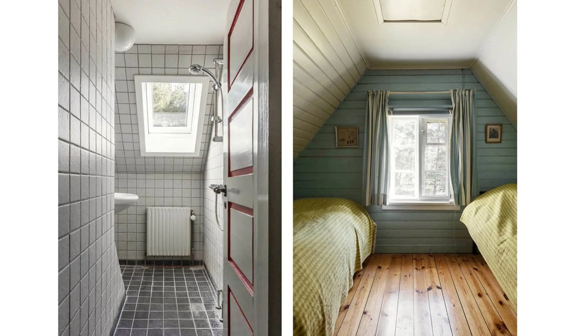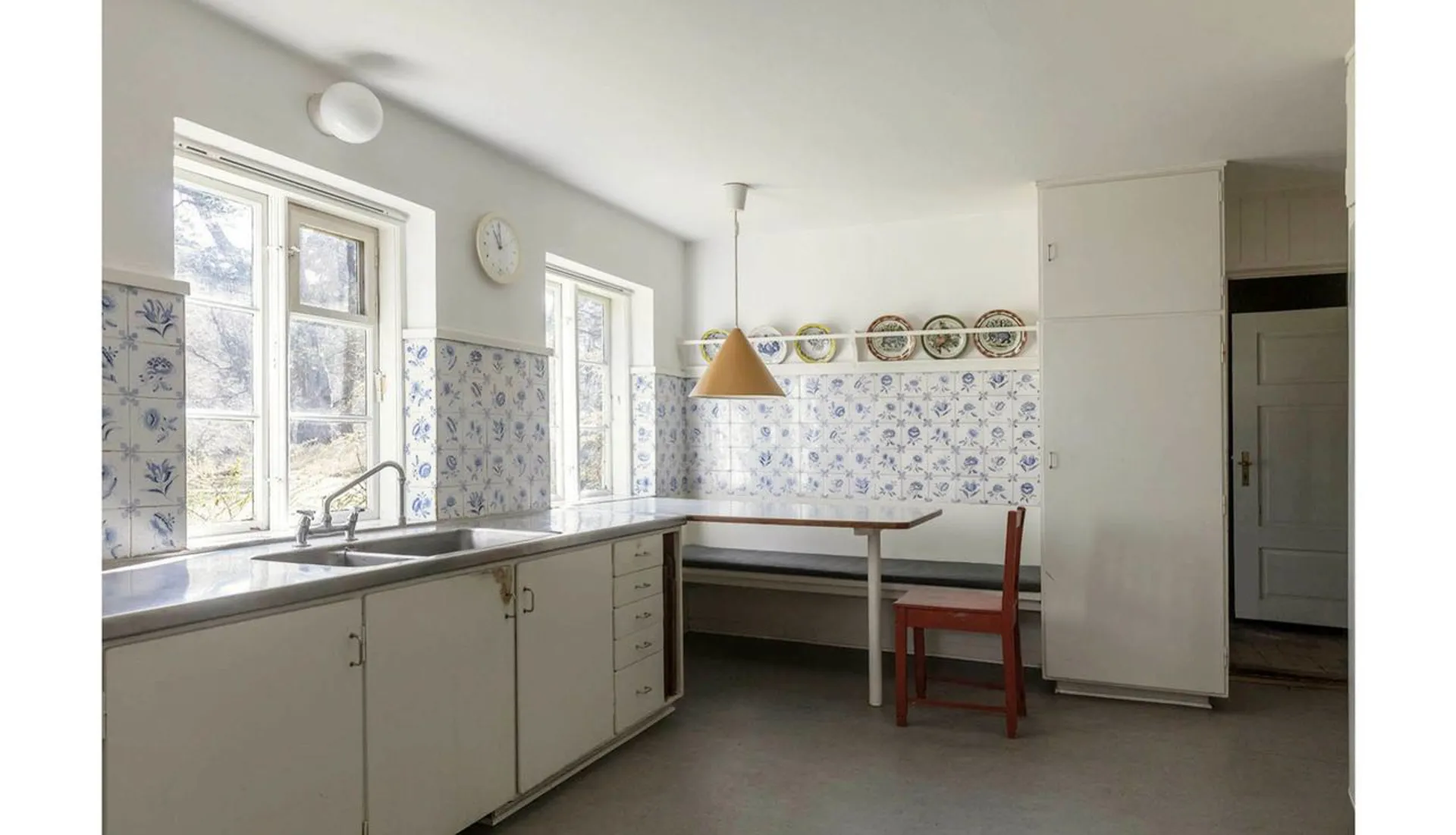 Generelt trænger ejendommen til en kærlig hånd og stråtaget på hovedhuset står til at blive udskiftet, MEN man får ubetinget de skønneste rammer for sin kommende sommerbolig. Dette er i sandhed et fortræffeligt arkitektonisk sammenstød mellem den romantiske byggestil med hyggelige stuerum, salonstemning og småsprossede vinduer i kontrast til et helt stramt, taktilt og minimalistisk formsprog, som stilsikkert udtrykkes i det enkle program, der tegner gæstehuset fra 1957. Kontrasten fremhæver stedets særlighed og på en særlig måde tillader det ens sanser til virkelig at være til stede hér.