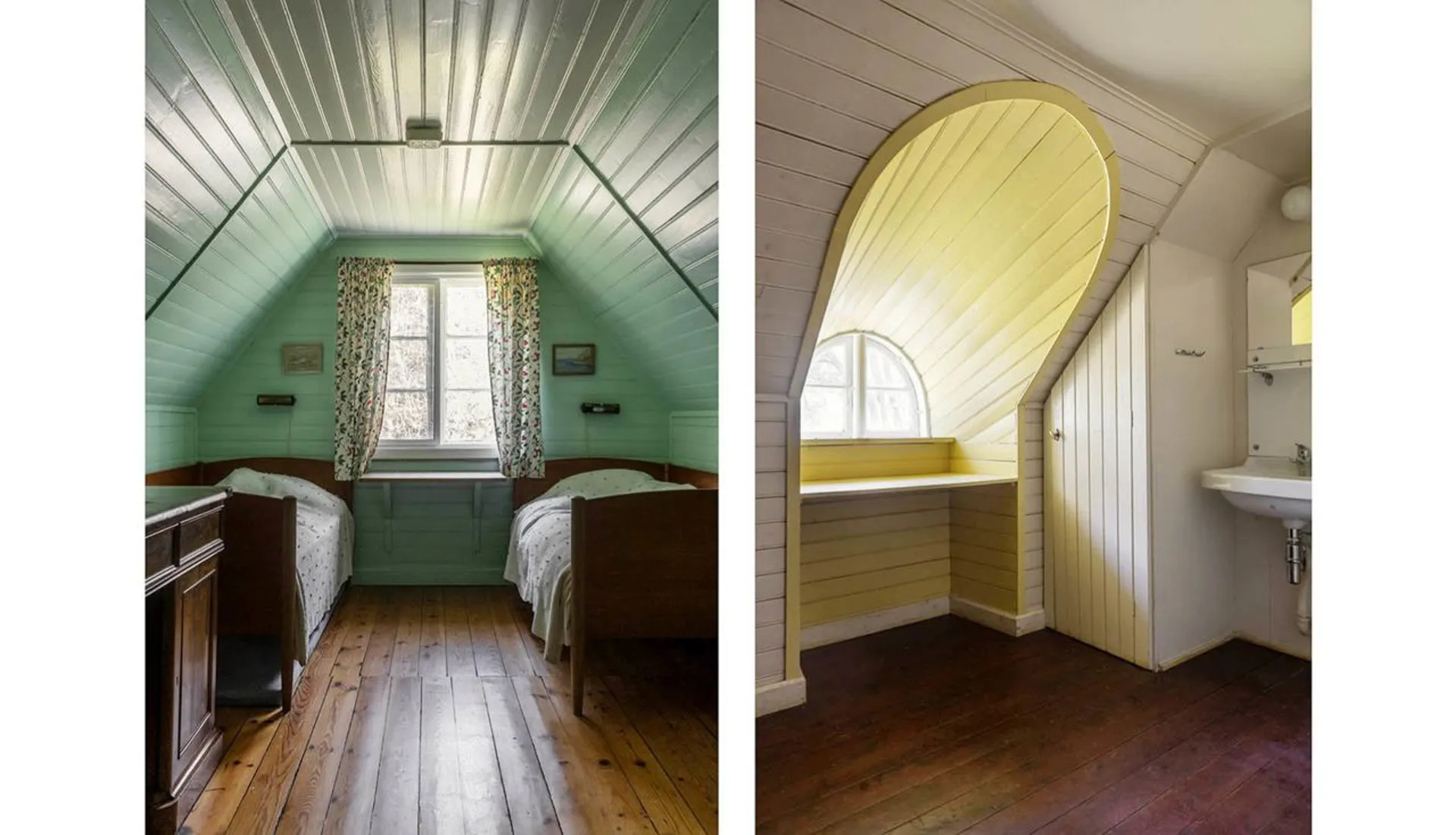 Hovedhuset er oprindeligt tegnet af Edvard Thomasen og siden indrettet med entré til trapperum, fem stuer/værelser og køkken i stueetagen og fem hyggelige værelser og badeværelse på 1. salen. Overalt er der skønne kig ud til den omkringliggende naturskønne grund, originalt interiør med fine deltaljer i alt fra paneler, gulve, fyldingsdøre og bjælkelofter – og som en fin detalje, så har alle soveværelserne egen håndvask på værelset. Gæstehuset indeholder 4 soveværelser og et mindre værelse, bad og toilet – også hér har alle egen vask på værelset. Udtrykket er formgivet som en rektangulær æske der nænsomt svæver over terrænet med et komplekst system af skodder, døre og vinduer, der kan åbnes op og trækkes fra alt afhængig af brug, vind og vejr. Inspireret af tidens japanske huse, der i sin primitive træk genkalder den centrale betydning af et ly. Med henvisning til den originale arkitektur blev gæstehuset fredet i 2004.