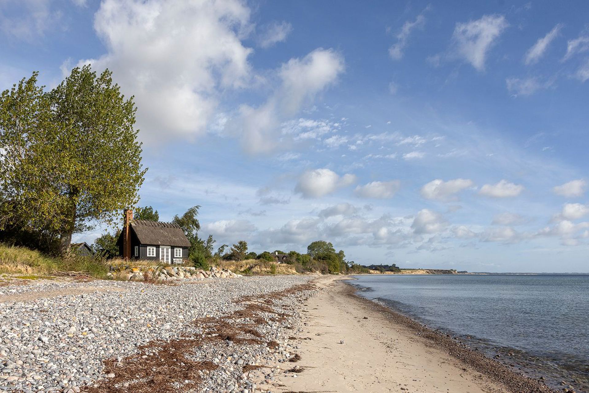 Nogle huse ligger tæt på vandet - dette spejler sig i det. Lige dér i vandkanten. Kun adskilt af en elegant anlagt kystsikring, der sætter niveau mellem hus og hav.