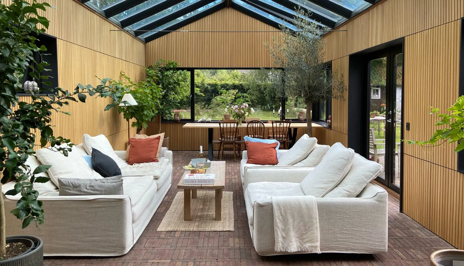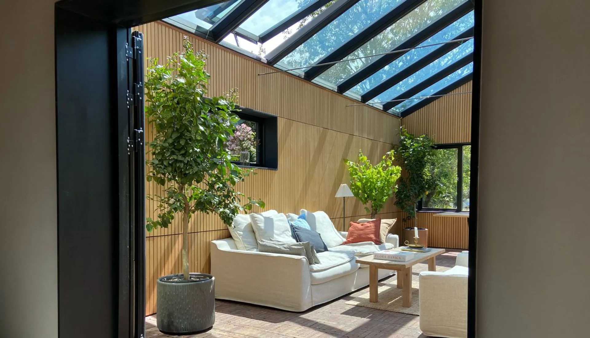 Den måde huset folder sig om sig selv gør, at man fra mange rum kan se ind i et af de andre. På den måde skabes forbindelser og gennemsigtighed mellem rummene, som inviterer til intimitet og fællesskab. Der skabes mange oplevelser, hvor man kigger igennem mange lag. Huset er konstrueret omkring det oprindelige hovedhus med alrum i stueplan og værelser på første sal, der på hver sin side er blevet udvidet med to velproportionerede orangerier, der tilsammen omgrænser et nærmest atriumagtigt terrasseområde, orienteret mod syd, i direkte forbindelse med den skønt anlagte have og orienteret mod lyset og himlen: På den måde inviterer huset til at åbne sig op ud mod det uendelige himmelrum og til at opleve og leve sammen med det ydre rum over os, sommer som vinter.