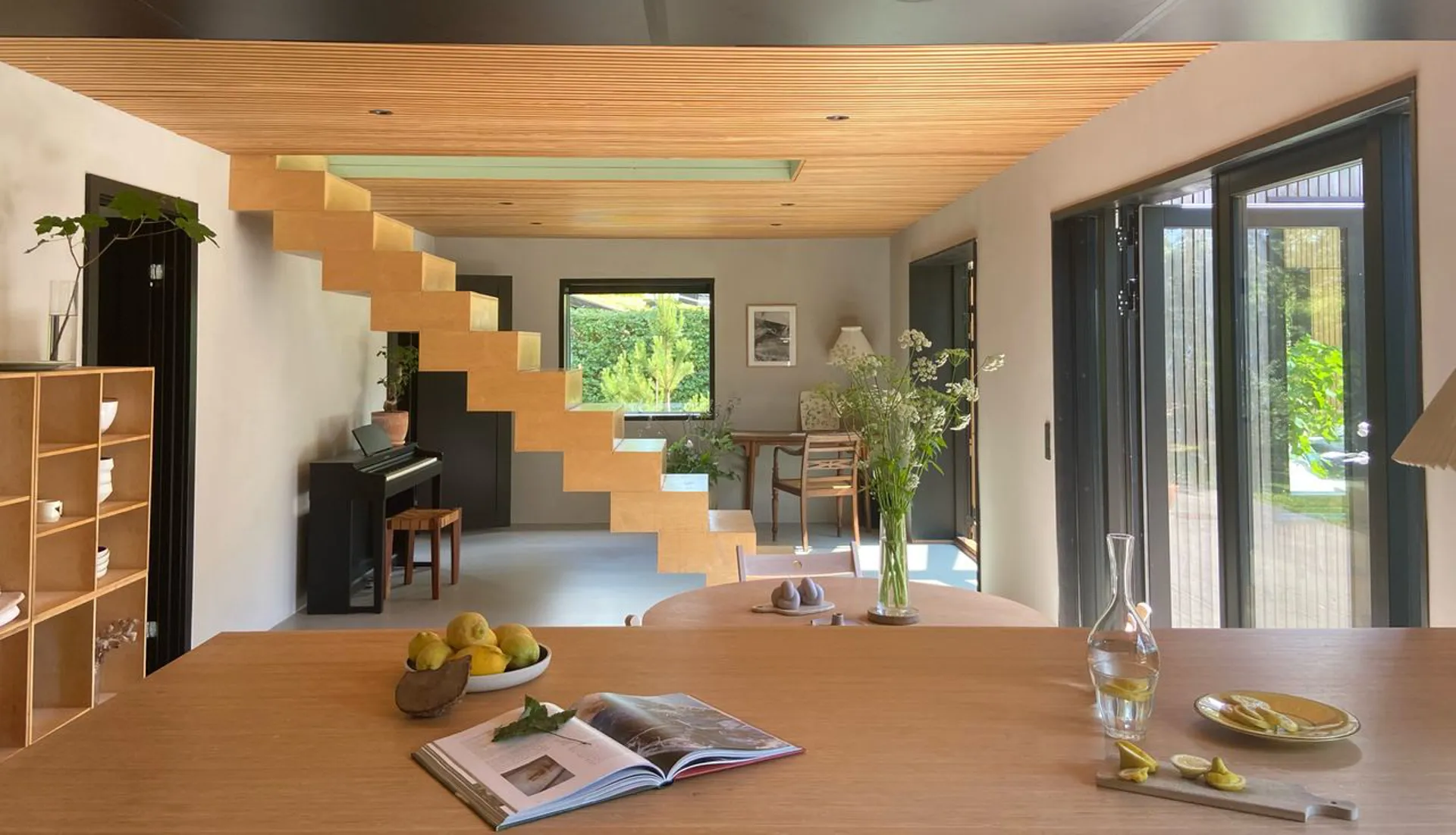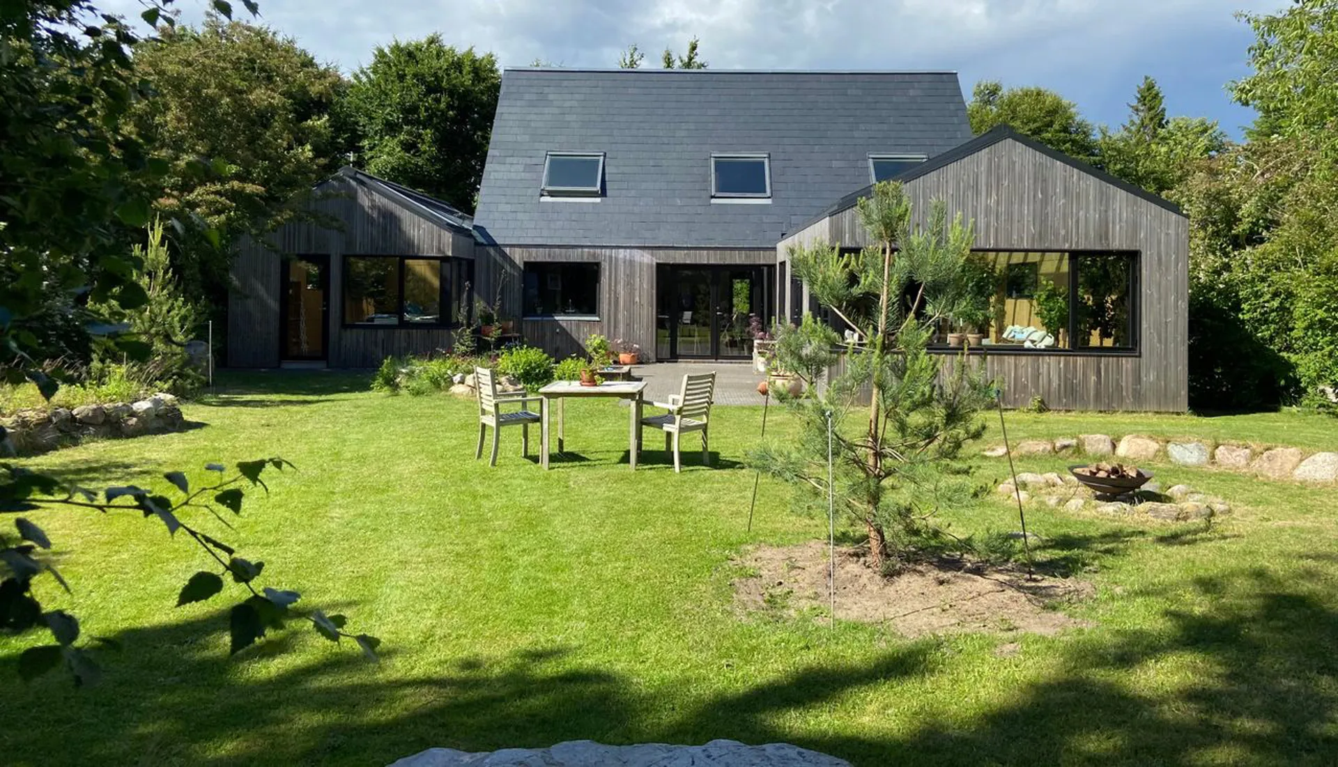Et tempofyldt møde mellem inde og ude – mellem rum og himmel og mellem bedre byggeskik og moderne transparens i glas og udsyn. Et hus, der kigger på sig selv. Et hus, der inviterer til menneskeliv, sanselighed og tilstedeværelse.