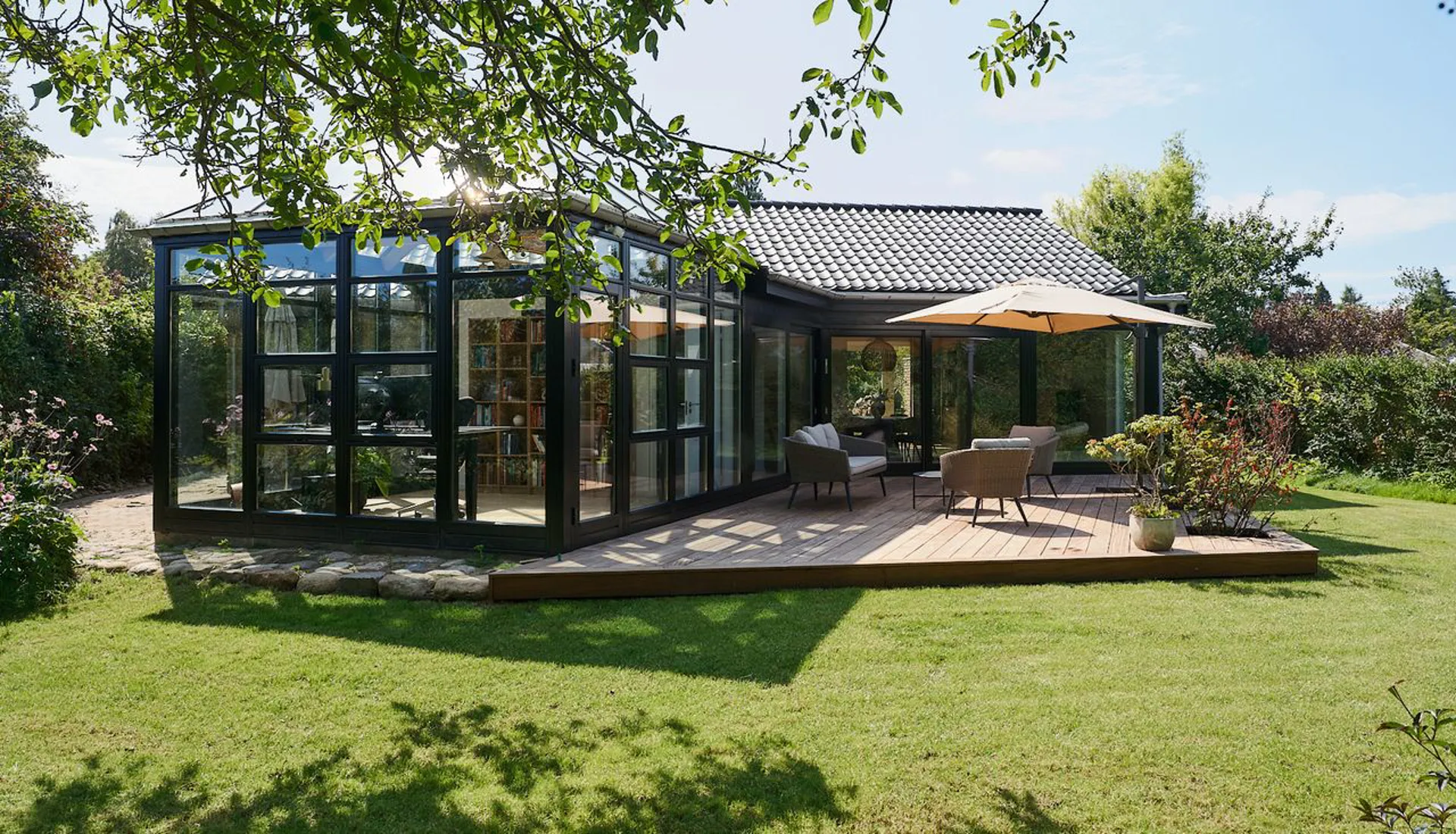Ud fra køkkenet ligger orangeriet – et særligt rum, der forandrer sig med årstiderne. Et sted, hvor man kan sidde blandt planter og se regnen danse på glasset, arbejde til lyden af fuglesang eller lade natten falde på, mens stjernerne tænder.