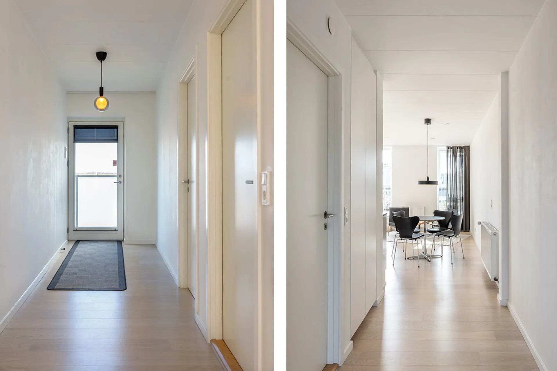 Lejligheden har udgang til en stor altan fra alrummet, hvor byen folder sig ud, og hvor morgensolen kaster sine første stråler ind over gulvet. Heroppefra breder udsigten sig over kvarteret: en harmonisk blanding af det gamle og det nye. Historiske facader møder moderne silhuetter, og kontrasterne skaber netop den stemning, der kendetegner det levende Aarhus.