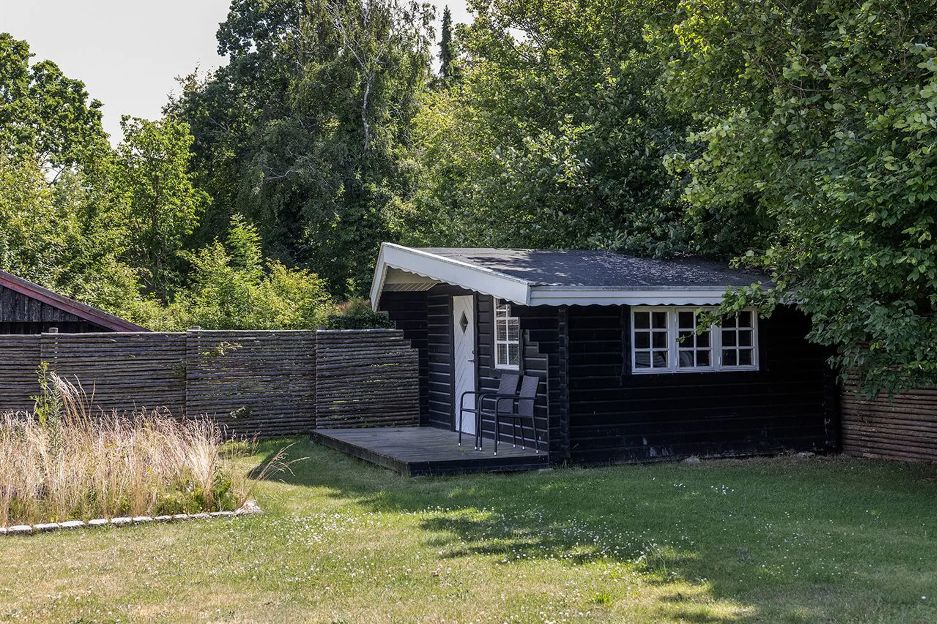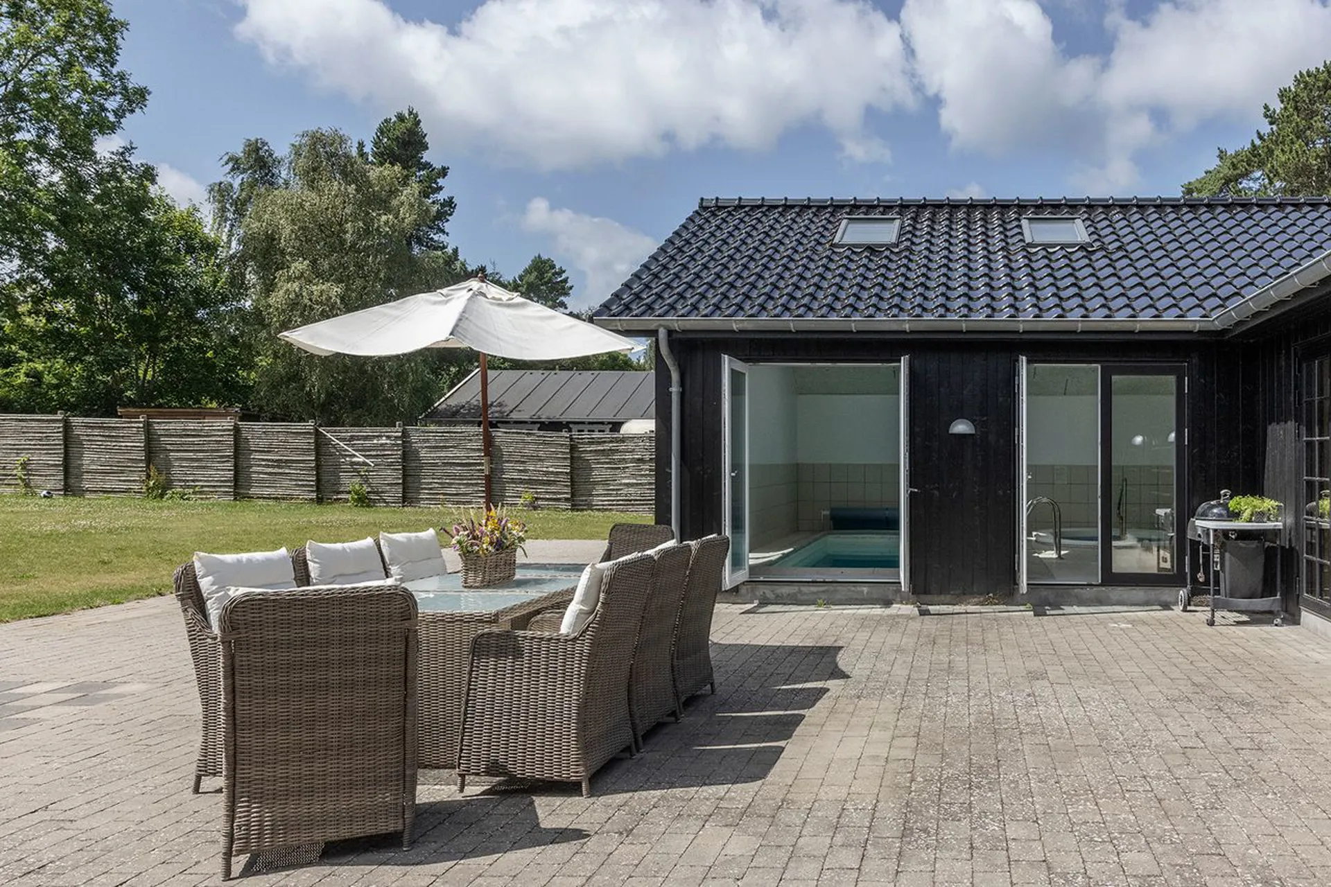 Grunden på 2.477 kvm – udformer sig i en enkel have som er afskærmet. Her kan sneboldkampe skiftes ud med sommerfrokoster, og regnvejrsdage forsvinde i duften fra en varm sauna og det stille skvulp fra poolen.