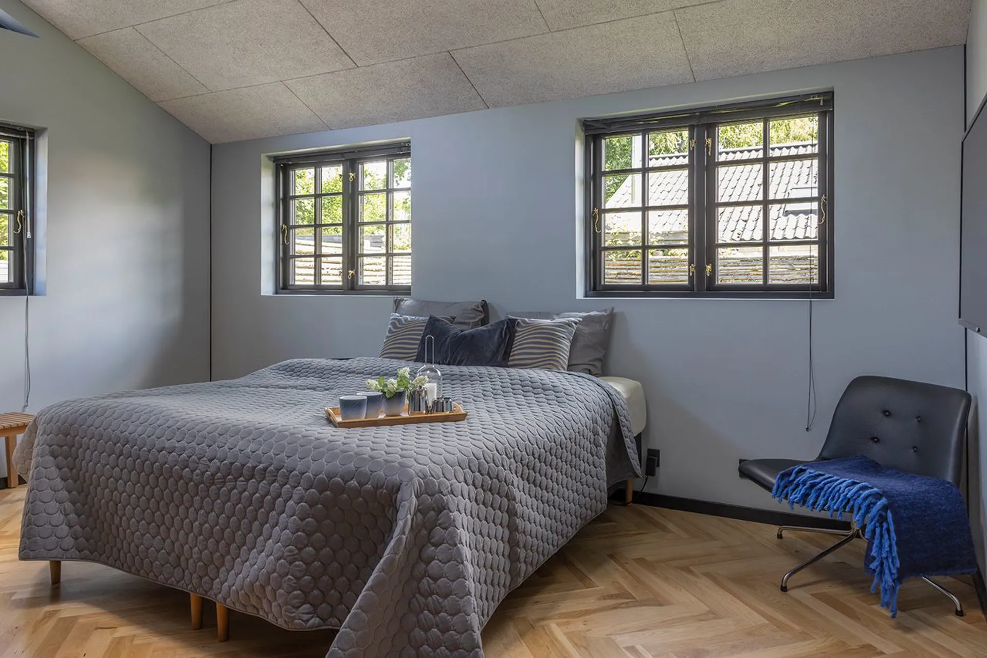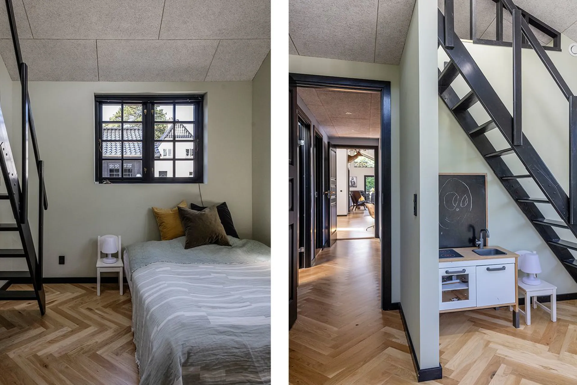 Huset er praktisk opdelt i to værelsesafdelinger med hemse – perfekt til flere familier eller generationer, der vil være sammen og hver for sig.