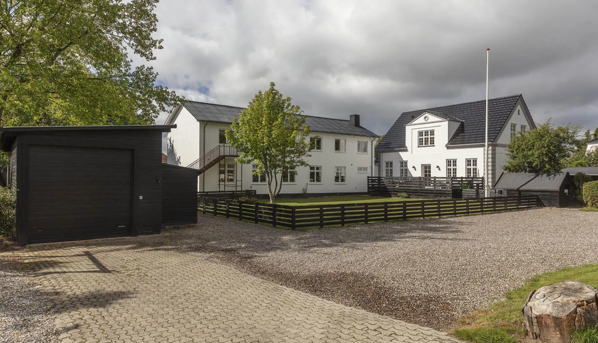 På den 2.313 m2 store grund er der yderligere velproportioneret garagebygning på 77 m2 og udhus på 42 m2. Denne ejendom henvender sig til mennesker der har noget på hjertet, som gerne vil udleve en drøm om at drive et bed & breakfast ved naturskønne omgivelser, forene sin bolig med sit erhverv – og stadig med afstand og plads til privatlivets sfære, eller til dem som kan se en idé i at udleje den ene længe til erhverv, og derved bo særdeles lukrativt.