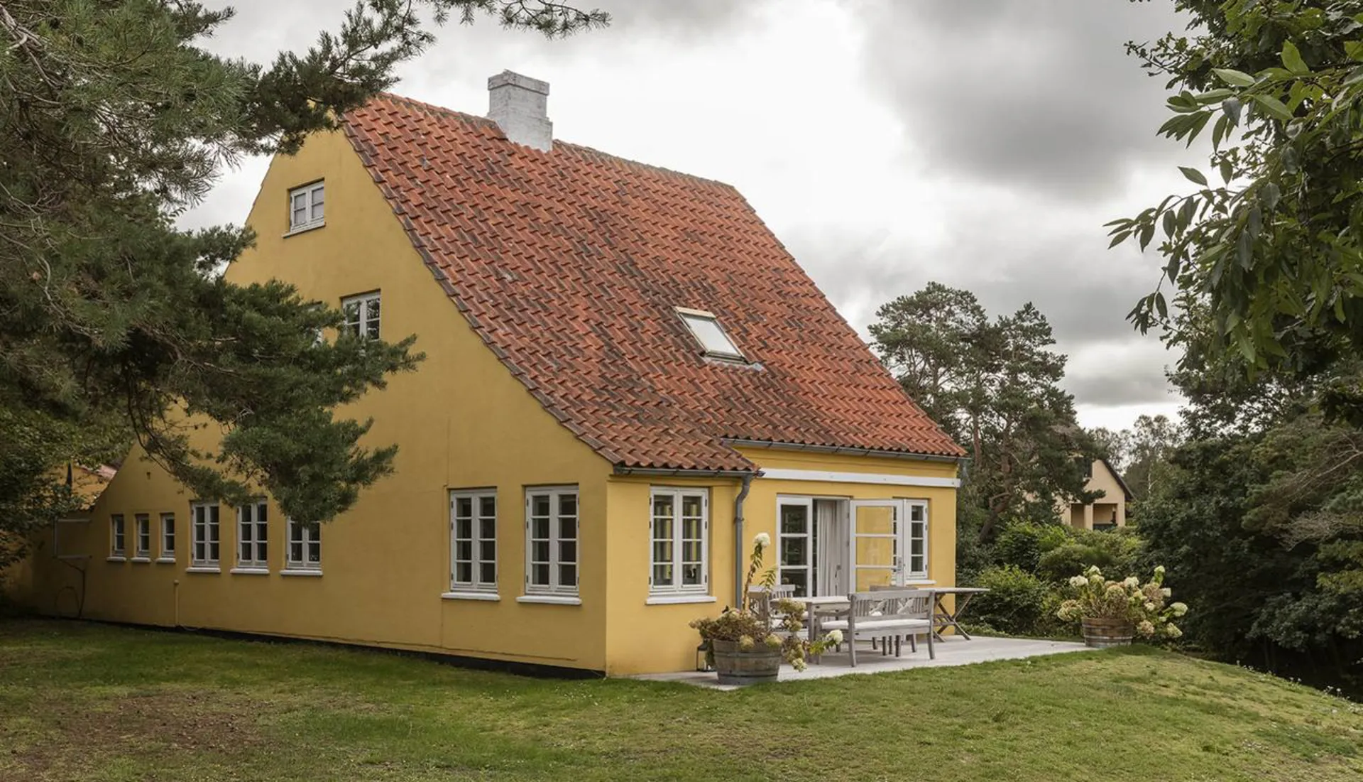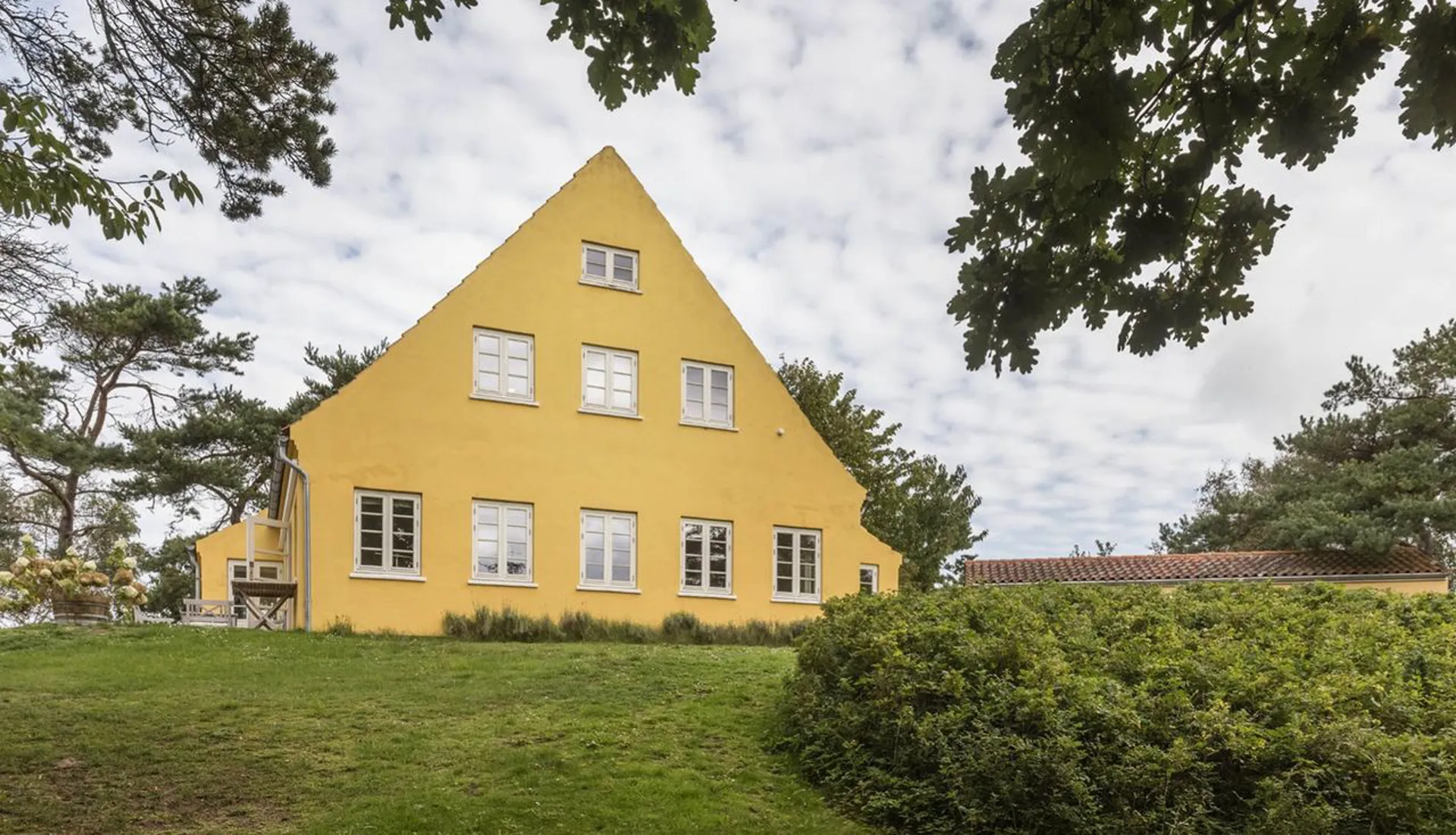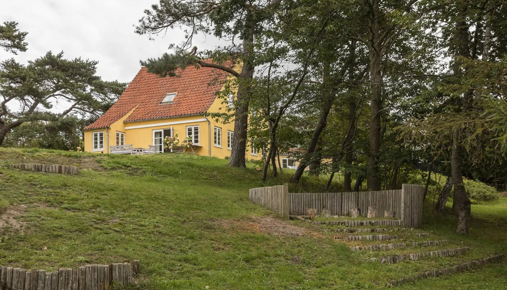 Hovedhuset (140 m2) er opført i 1911 og består som en historisk perle for området, hvor dets arkitektoniske formsprog og dets fine detaljer i interiør og rum vidner om en delikat forståelse for balancen mellem nærhed, samvær og luksus. Fra alle steder i huset er der lange kig ud over grunden med Tisvilde Hegn som bagvedliggende kulisse. Hvert rum har sine fine særpræg, og overalt – både inde og ude - er der skønne opholdssteder, som på alle tidspunkter af dagen tillader plads til solen, horisonten og de omkringliggende naturskønne omgivelser.
