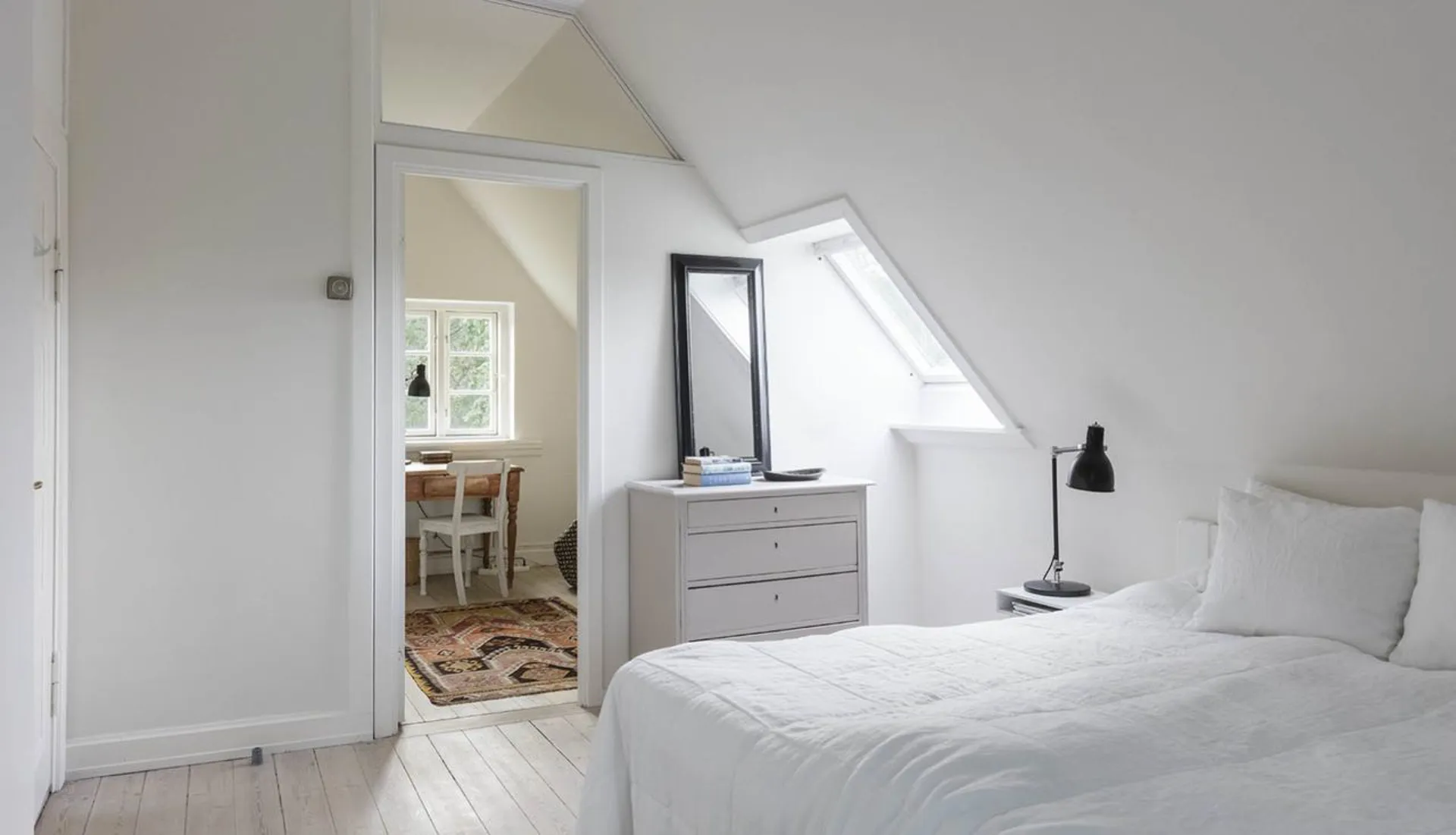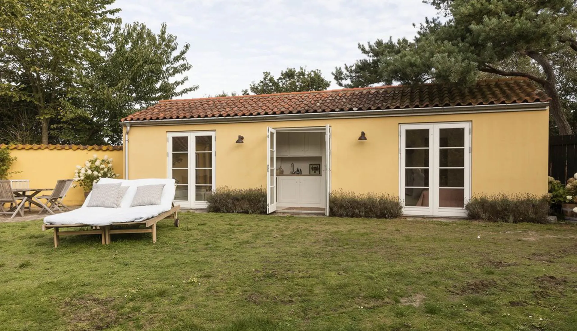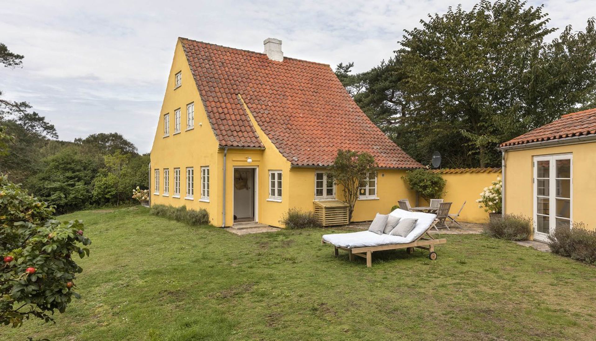 Hovedhuset (140 m2) er opført i 1911 og består som en historisk perle for området, hvor dets arkitektoniske formsprog og dets fine detaljer i interiør og rum vidner om en delikat forståelse for balancen mellem nærhed, samvær og luksus. Fra alle steder i huset er der lange kig ud over grunden med Tisvilde Hegn som bagvedliggende kulisse. Hvert rum har sine fine særpræg, og overalt – både inde og ude - er der skønne opholdssteder, som på alle tidspunkter af dagen tillader plads til solen, horisonten og de omkringliggende naturskønne omgivelser.