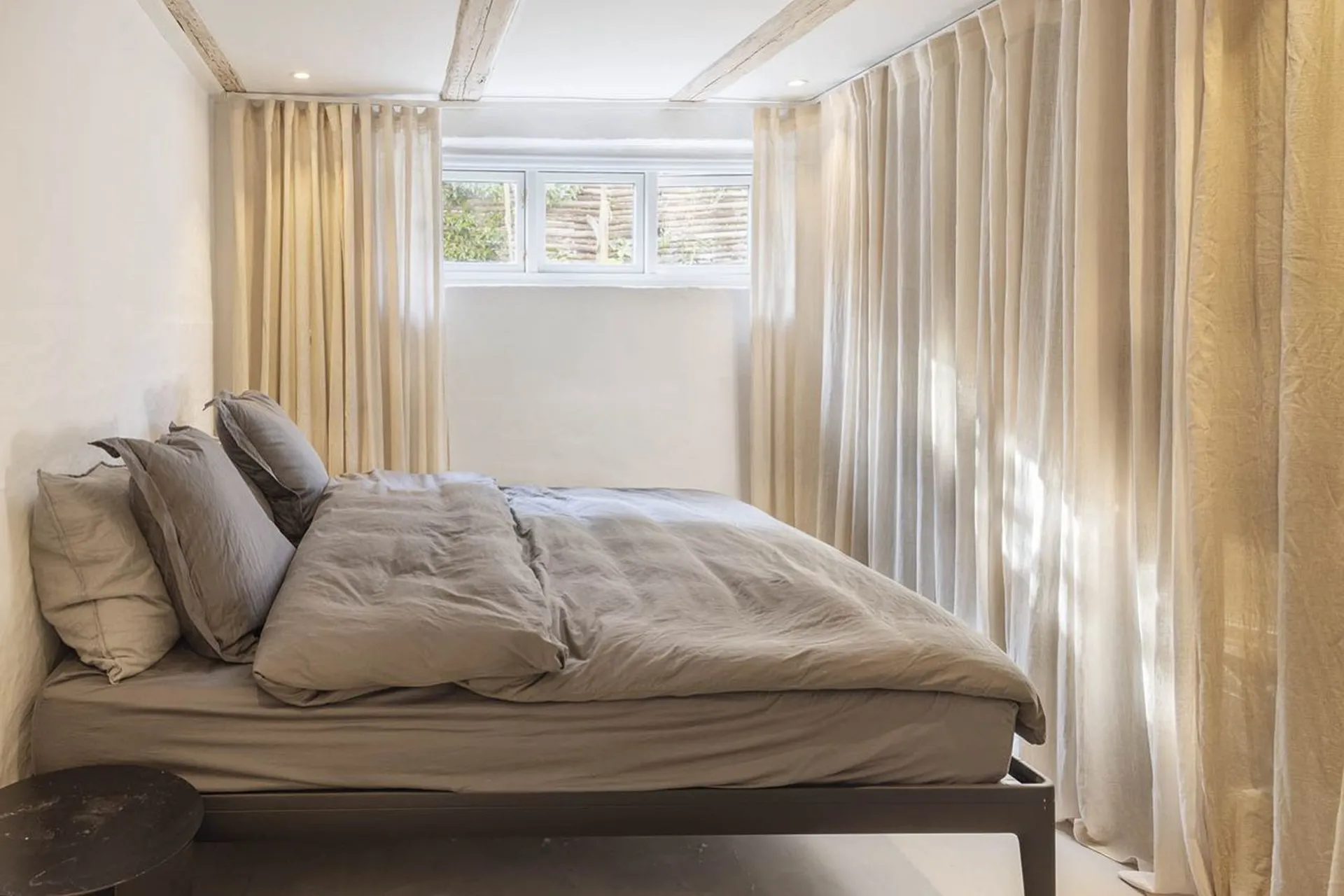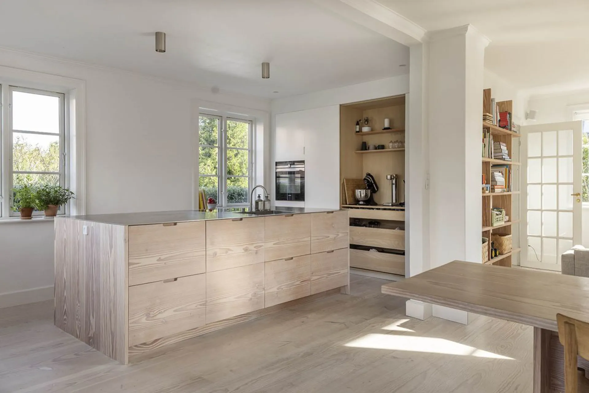 Indretning: Velkommen i ikonisk vindfang til fordelingstrappe, hvorfra der er adgang til det stemningsfulde hovedrum, dette rum er ganske simpelt imponerende og lyset er bragende. Her er der plads til afslapning i sofaafdelingen og samvær i køkken-alrummet. Køkkenet er et enestående snedkerkøkken, som meget tydeligt er skabt til huset - af de samme Douglas Dinesen planker, der binder hele rummet sammen. Herfra er der direkte udgang til vestvendtterrasse med nedgang til den skønne have. Første salen er indrettet med to skønne soveværelser, det ene med direkte udgang til stor tagterrasse. Herudover stort badeværelse, hvor der er mulighed for køber at sætte sit eget præg. Underetagen byder på yderligere to veldisponerede rum, bryggers, badeværelse og toilet.