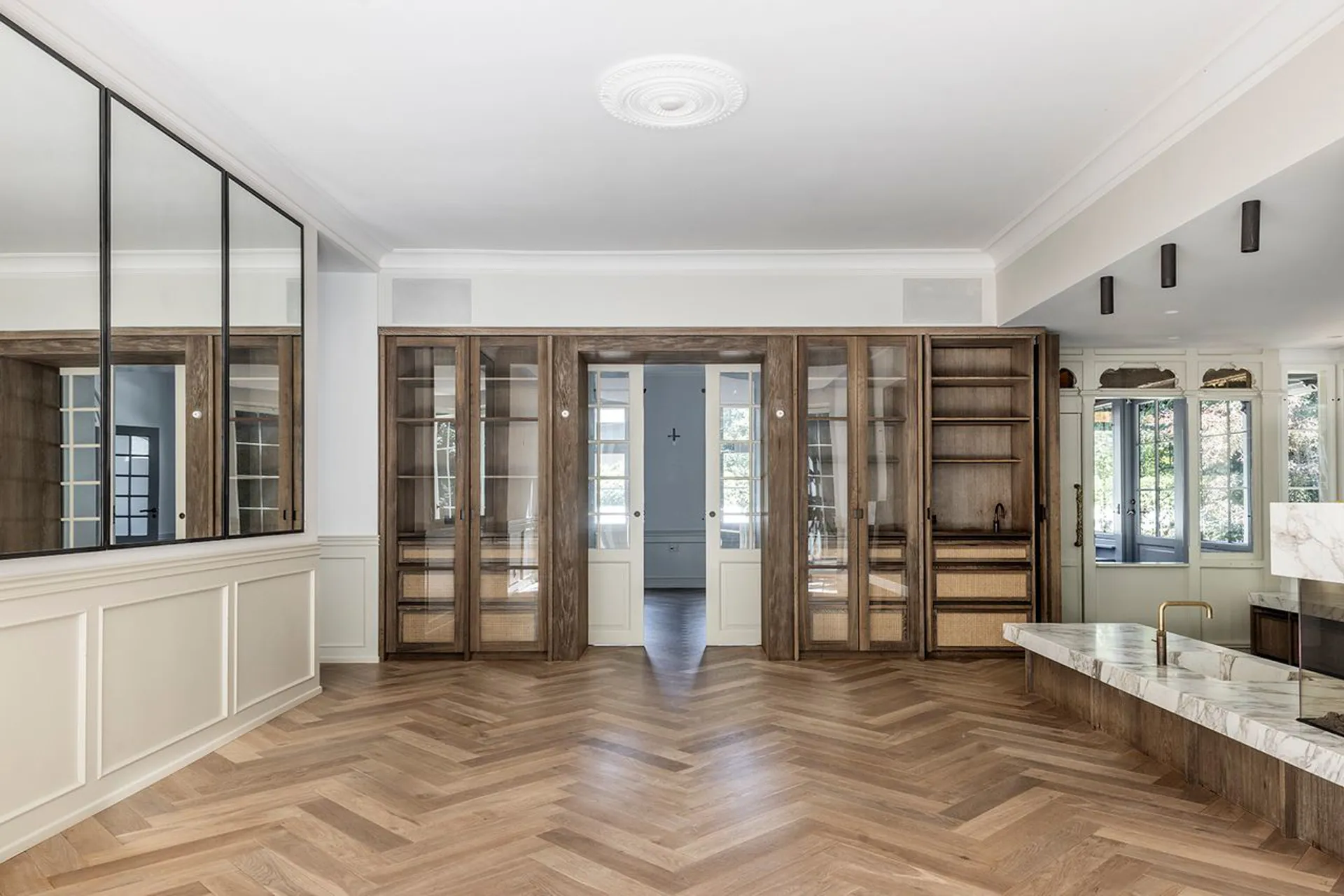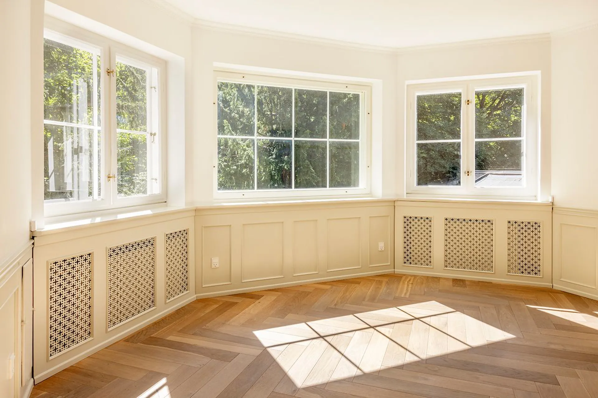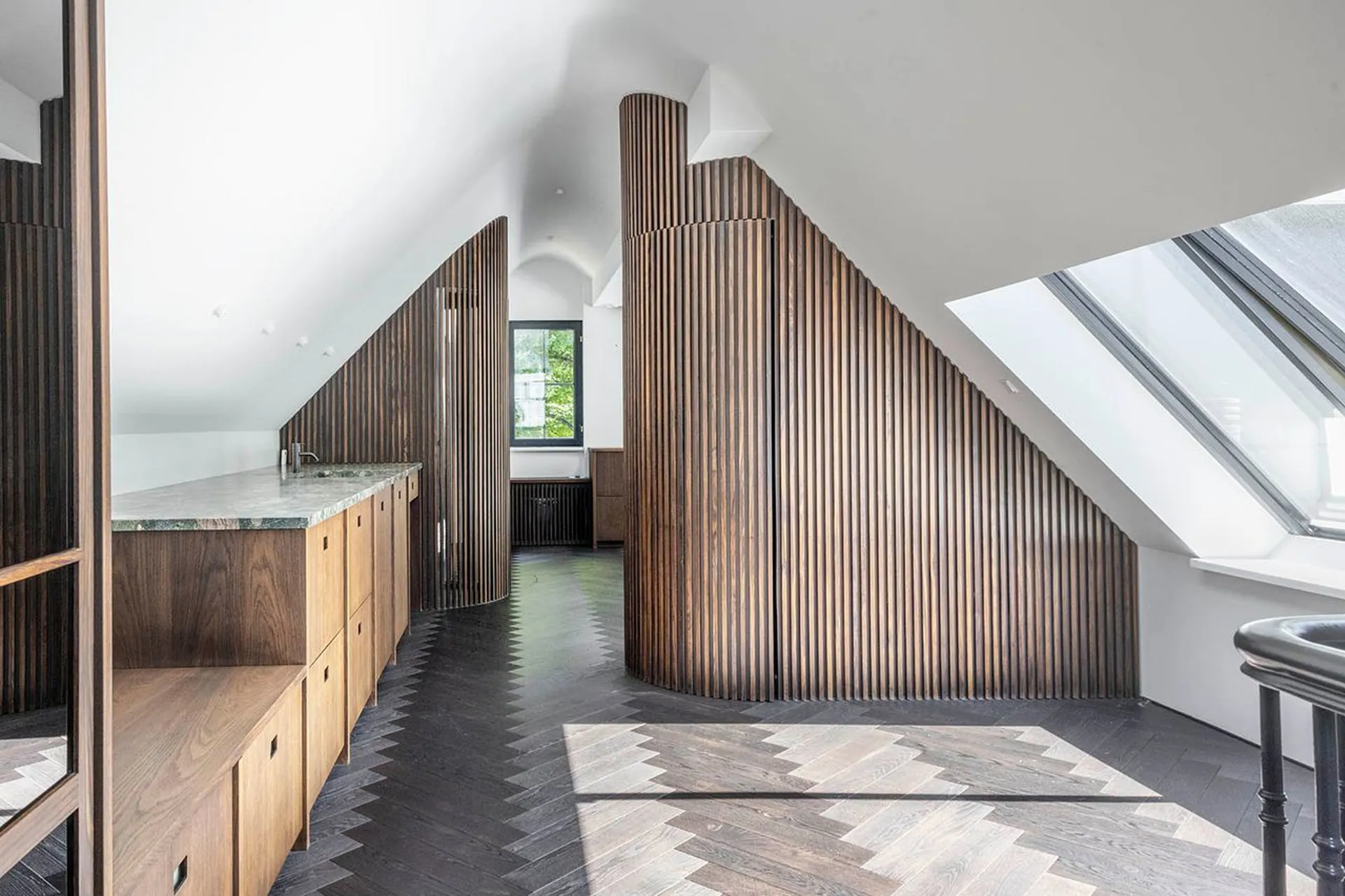 Det vil gå for vidt her at beskrive alt, hvad der er gjort ved huset hen over den fireårige renoveringsperiode, men i flæng kan nævnes nyt naturskiffertag, nye kviste, døre og vinduer, udskiftede fuger i alle facader, nyt el, VVS. Snedkerbygget interiør fra Simonsen & Czechura overalt i huset, køkken, badeværelser, istandsættelse af anneks til luksuriøs teenagerbolig/gæstehus – og meget mere. Og nyt haveanlæg med smukke stenbelægninger og terrasseområder. Og alt i balance. Og alt udført efter højeste fællesnævner. Ingen kompromiser. Ingen smalle steder. Ingen!