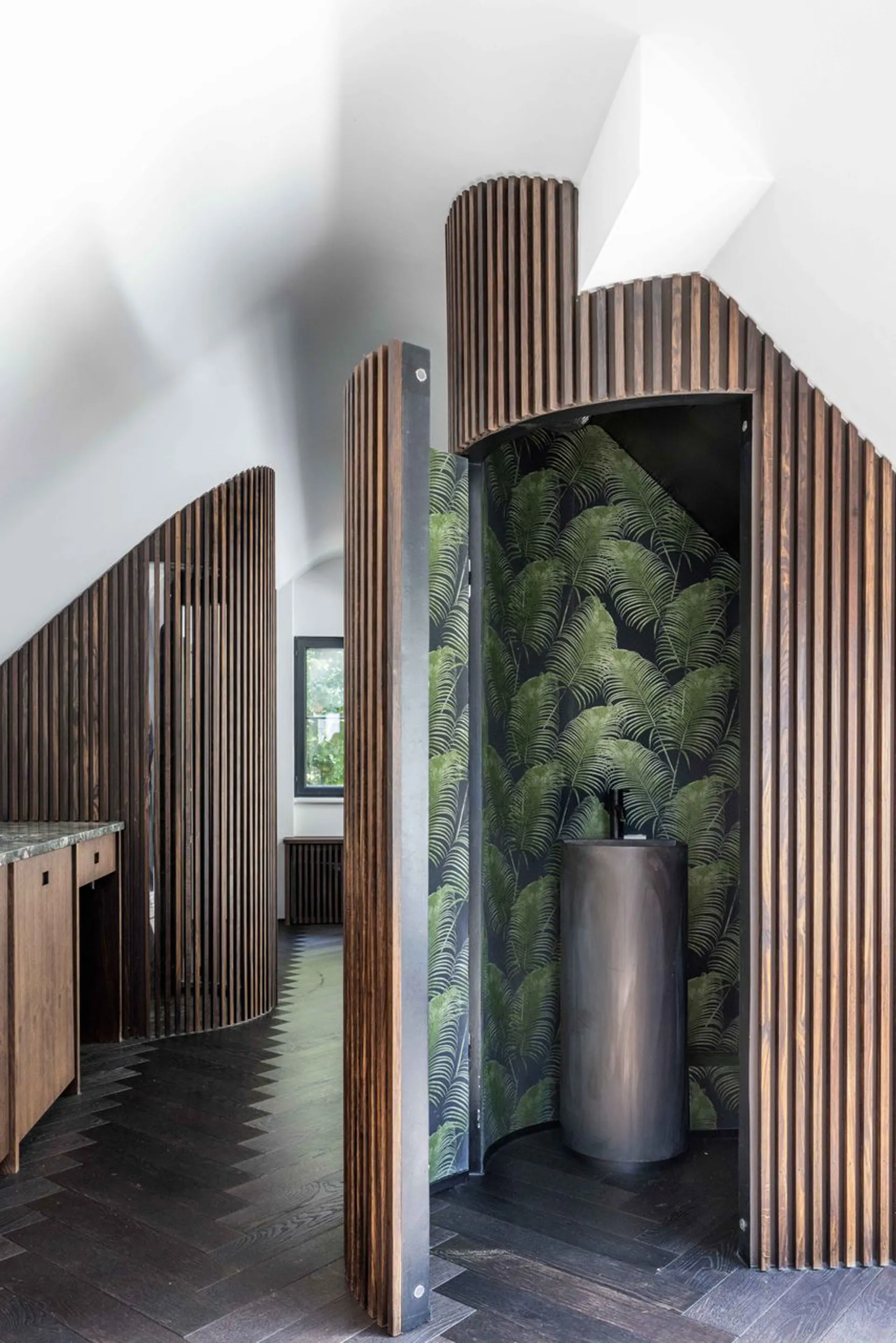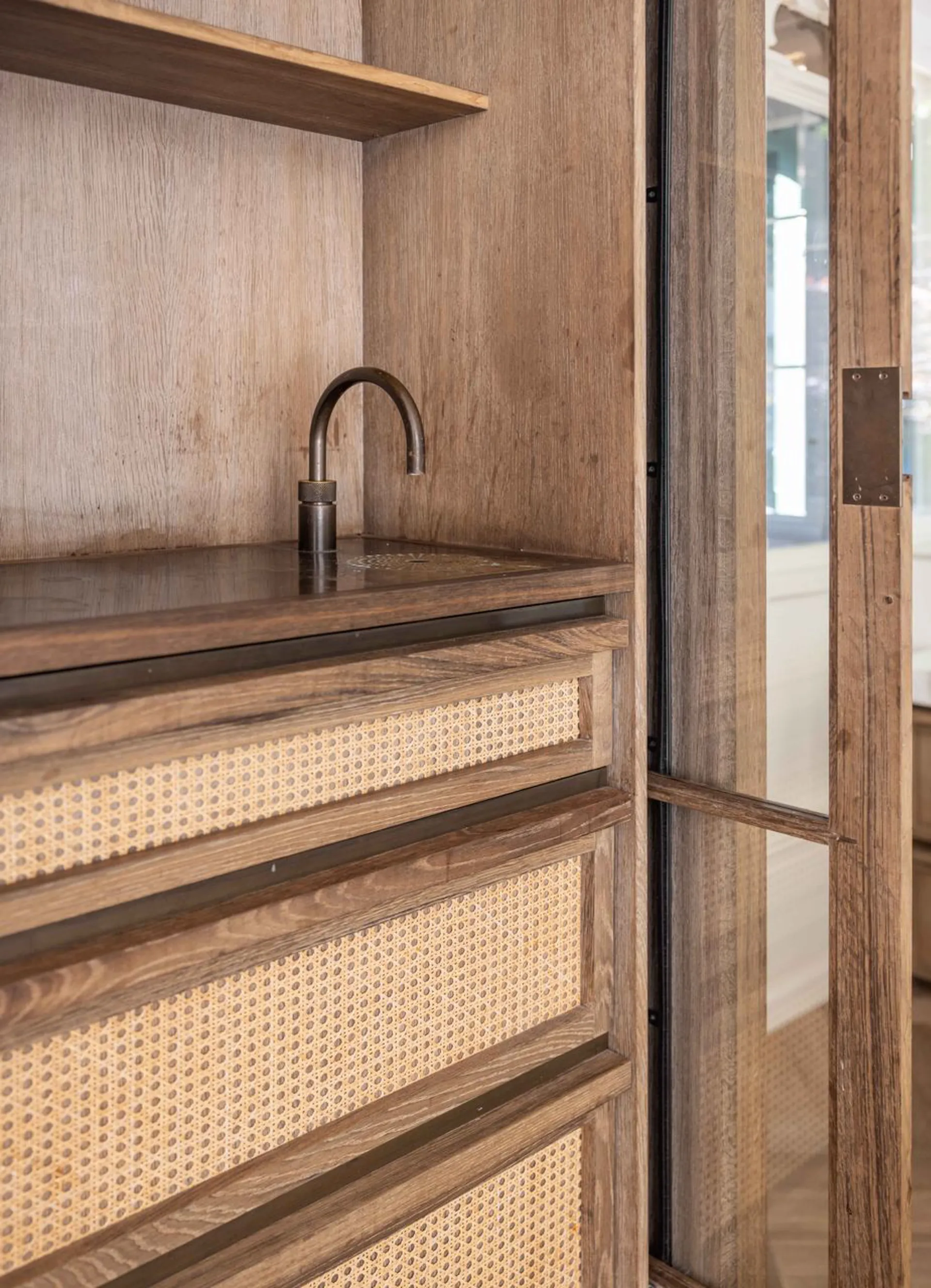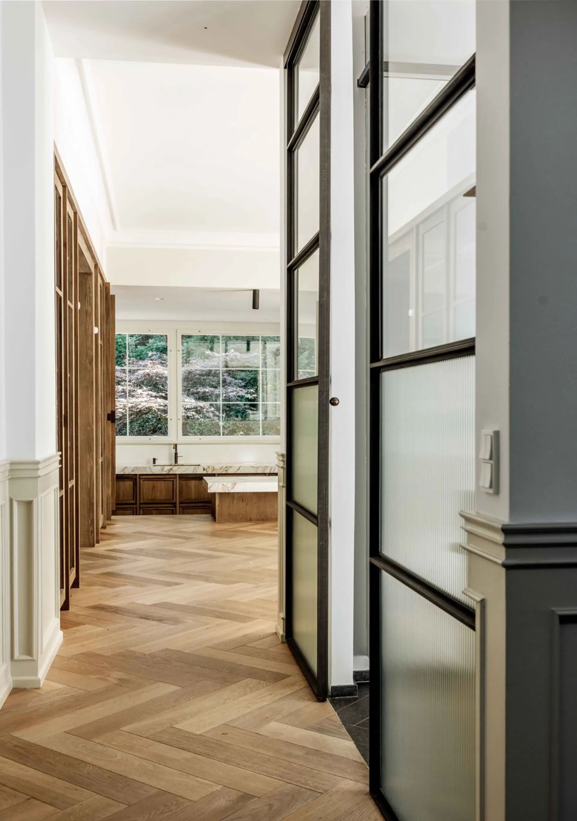 Det vil gå for vidt her at beskrive alt, hvad der er gjort ved huset hen over den fireårige renoveringsperiode, men i flæng kan nævnes nyt naturskiffertag, nye kviste, døre og vinduer, udskiftede fuger i alle facader, nyt el, VVS. Snedkerbygget interiør fra Simonsen & Czechura overalt i huset, køkken, badeværelser, istandsættelse af anneks til luksuriøs teenagerbolig/gæstehus – og meget mere. Og nyt haveanlæg med smukke stenbelægninger og terrasseområder. Og alt i balance. Og alt udført efter højeste fællesnævner. Ingen kompromiser. Ingen smalle steder. Ingen!