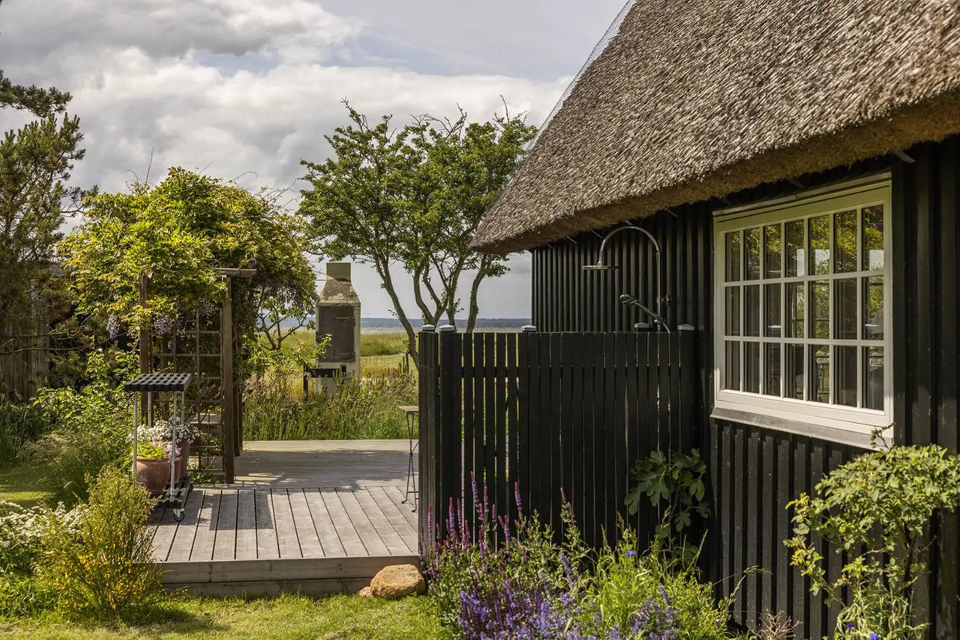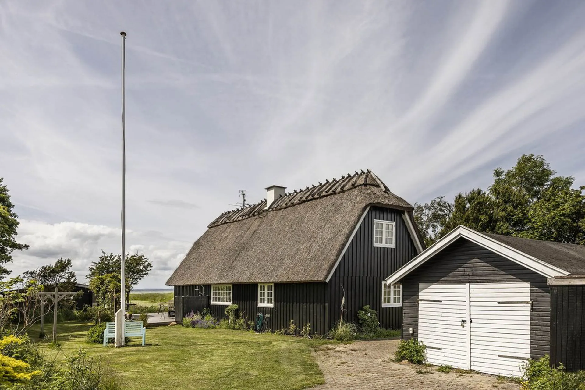 I læ af de naturskønne skov- og engarealer, der ligger i forlængelse af det magiske Jægerspris Slot, Slotsparken og den hyggelige Jægerspris By. Med 180 graders udsigt til bugtens uendelig smukke kyststrækning, hvor siv, strandroser og markblomster kæmper om at gøre sig til inden vandkanten og det betagende møde mellem hav og himmel tager al opmærksomheden. Her er så uendeligt smukt.
