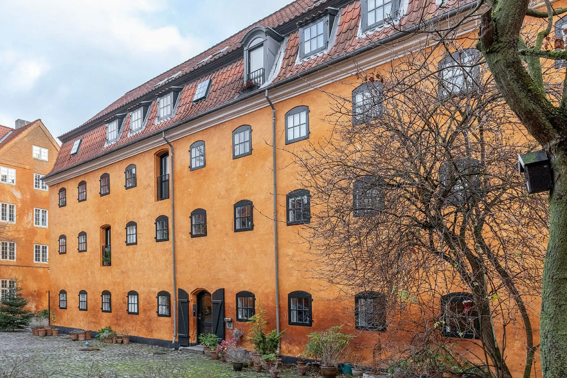 Adgangen til boligen er en rejse gennem Københavns historie, og heldigvis er det lykkedes at fortælle videre på en bid af vores kulturarvs fineste fortællinger. Stedet er et mageløst arrangement af historiske bygninger, der tilmed omgrænser et af Københavns skønneste gårdmiljøer med store kastanjetræer, brolagt med ujævne belægning af marksten og de smukkeste bygningsfacader i Christianshavns ikoniske gule facade og røde vingetegl på taget.