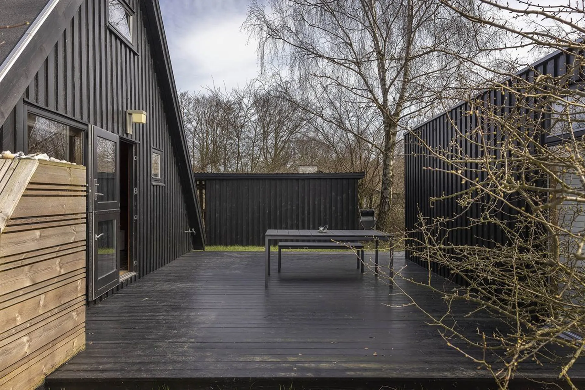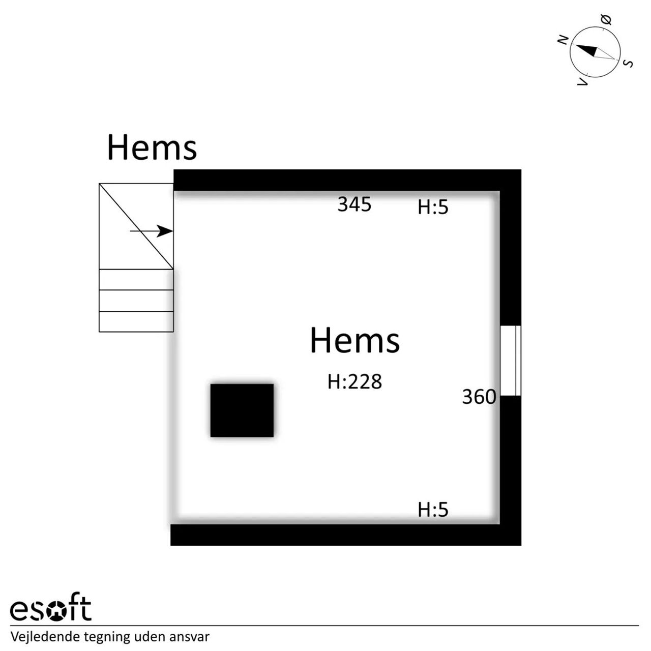 Indretning: Entré, hvorfra der er adgang til både badeværelse med brus, soveværelse med skabsvæg og husets store alrum, der fordeler køkken, spiseplads og opholdsstue i ét åbent højloftet rum til kip. Over badeværelse og soveværelse er der en hyggelig hems, med et enestående kig til ned over Bakkerne med vandet lige dér ude bagved. Annekset er indrettet med dobbeltseng og kontorplads. Fra alrummet er der udgang til stort terrasseområde med sol, horisont og udsigt til vandet – og mellem hovedhus og anneks endnu et terrassedæk, der både giver en skøn ankomst til huset, og en fin forbindelse mellem de to bygninger.