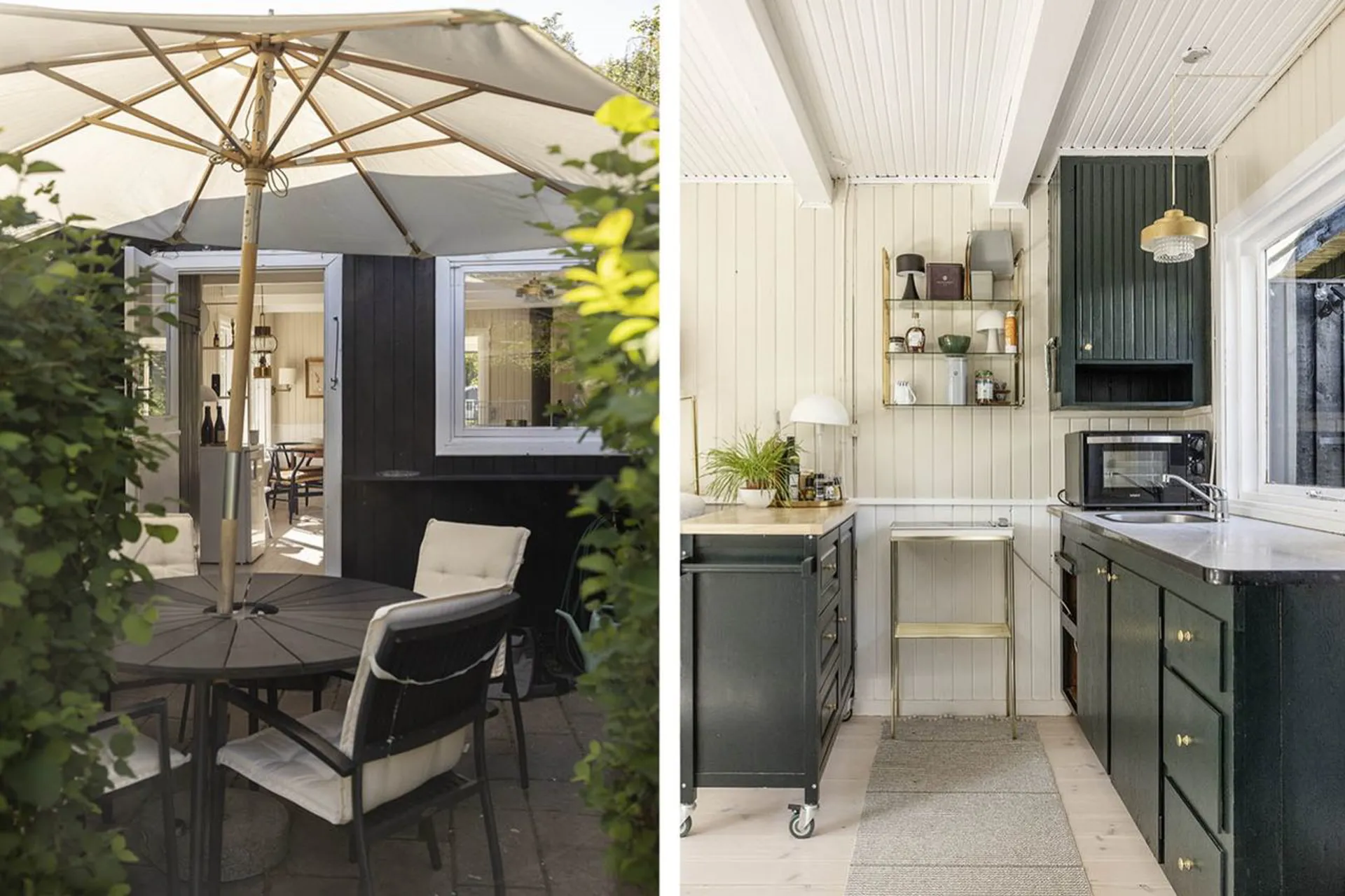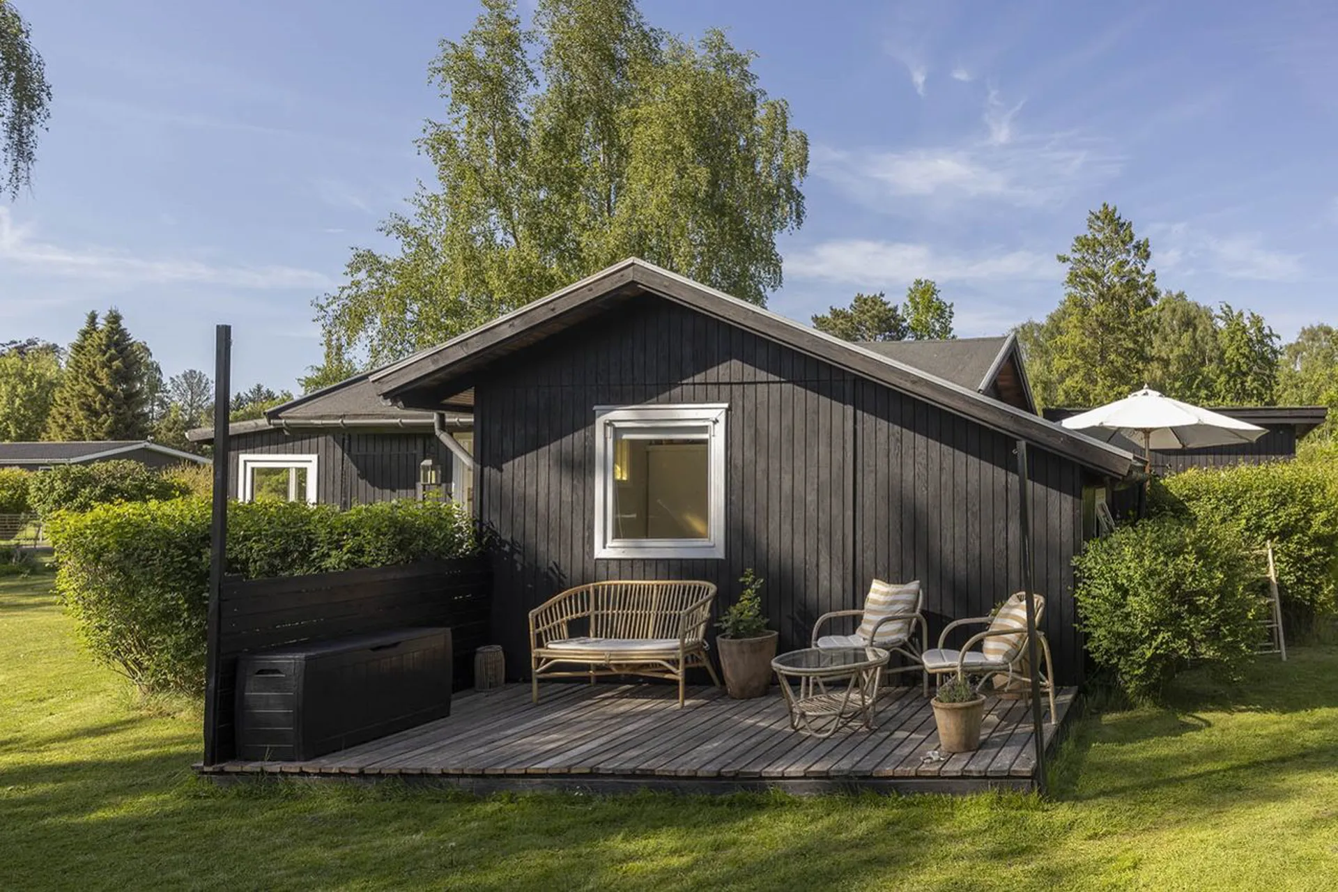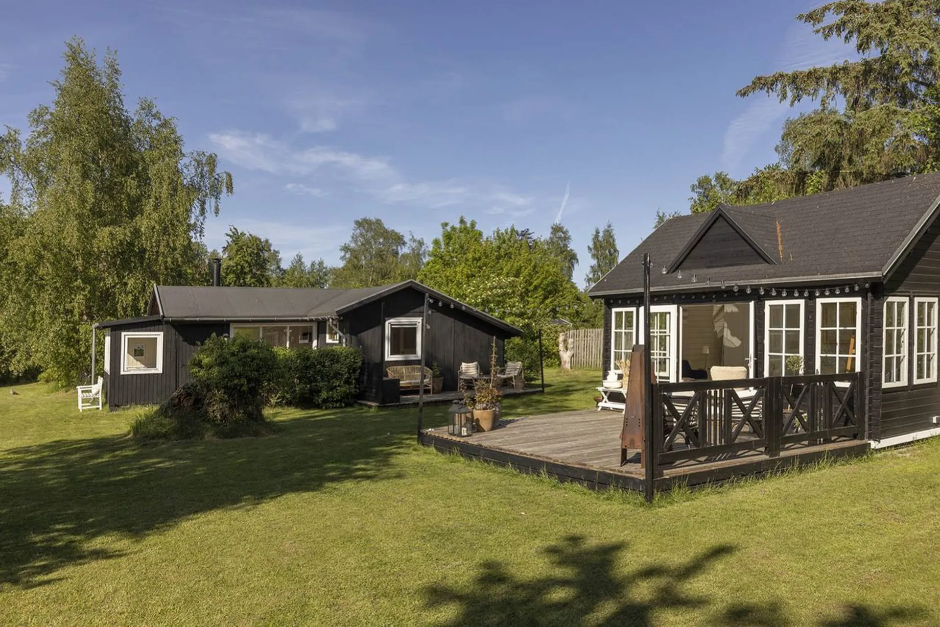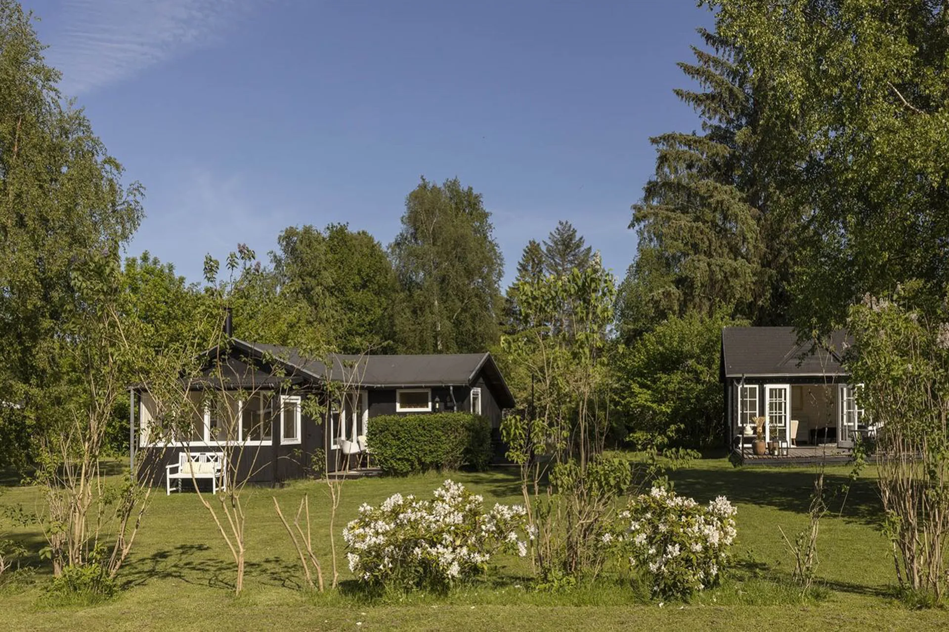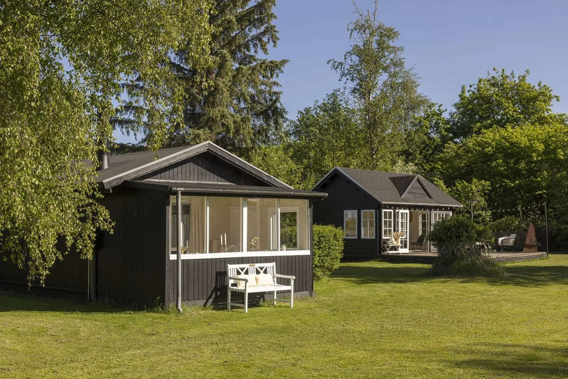 Der er jo en årsag til, at vejen hedder Syrenhaven. Syrenerne står overalt, og sommerhuset er placeret midt på en 1.473 m² lettere kultiveret grund. To bygninger - et hovedhus, som er oprindeligt, er opført i 1968 og siden gennemgået en total transformation - og et anneks af nyere dato, der i dag er indrettet som gæstehus. De to bygninger mødes ved hinandens solbeskinnede terrasser, der hilser på hinanden, og fra begge bygninger er der udgang til forskellige haverum, der tillader sol eller skygge i løbet af dagen, alt afhængigt af, hvilket humør man er i.