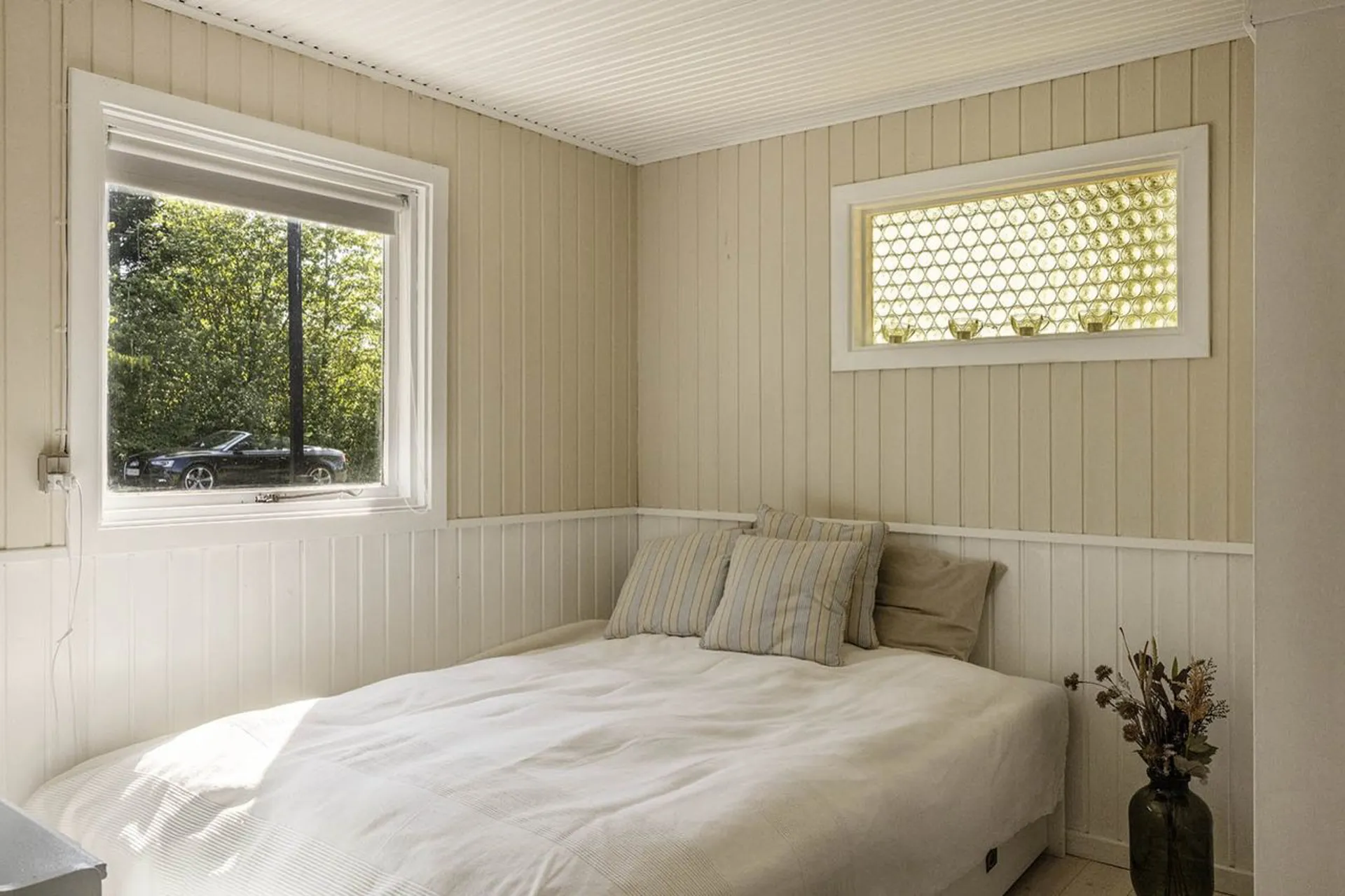 Annekset på ca. 20 m² er indrettet som et stort rum med plads til en dobbeltseng og et mindre loungeområde/kontor. Det er ideelt til teenageren, også som atelier eller ekstra stue. Dikteret af aftensolen er der på bagsiden af annekset etableret et haverum med bålplads.