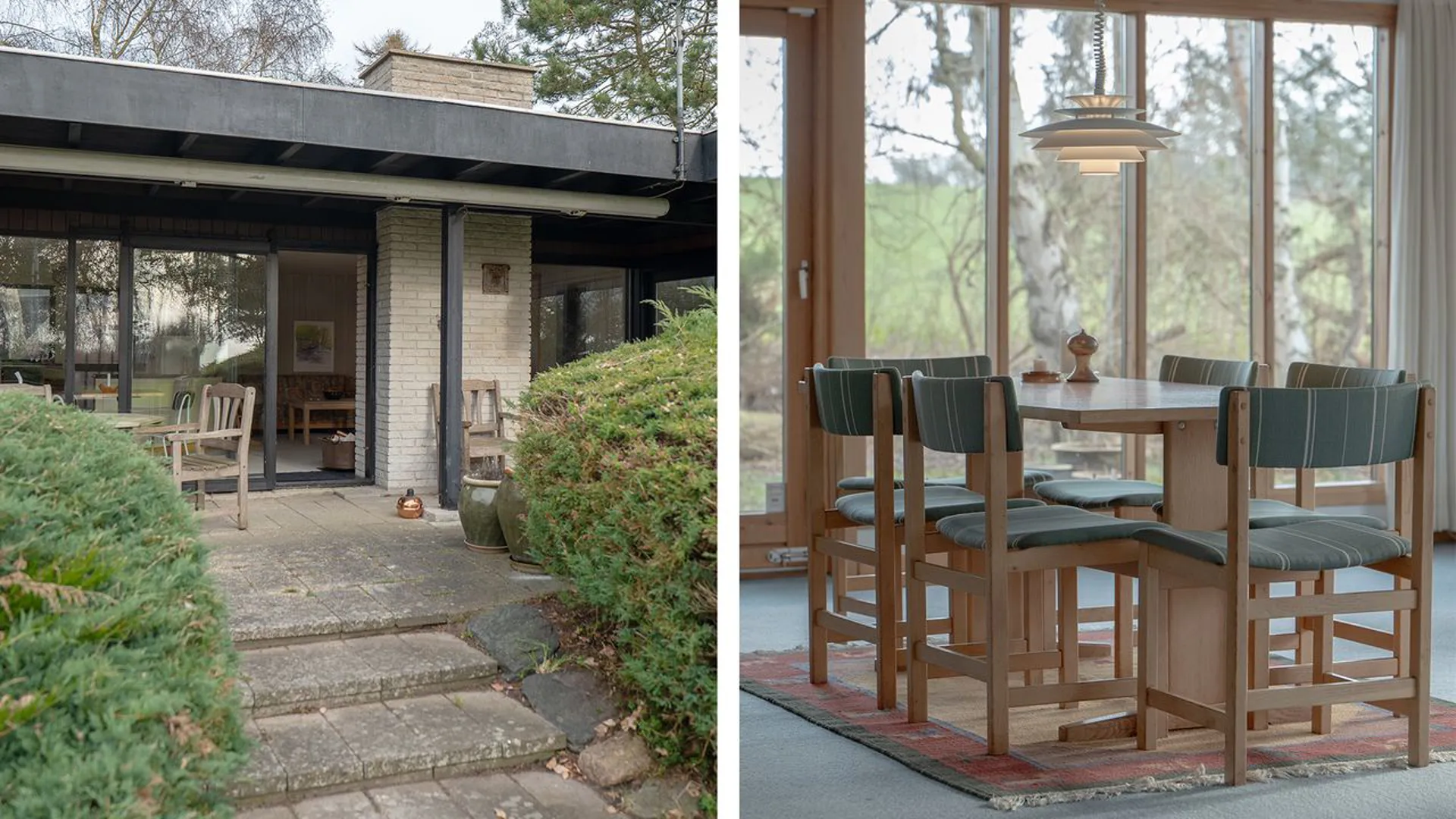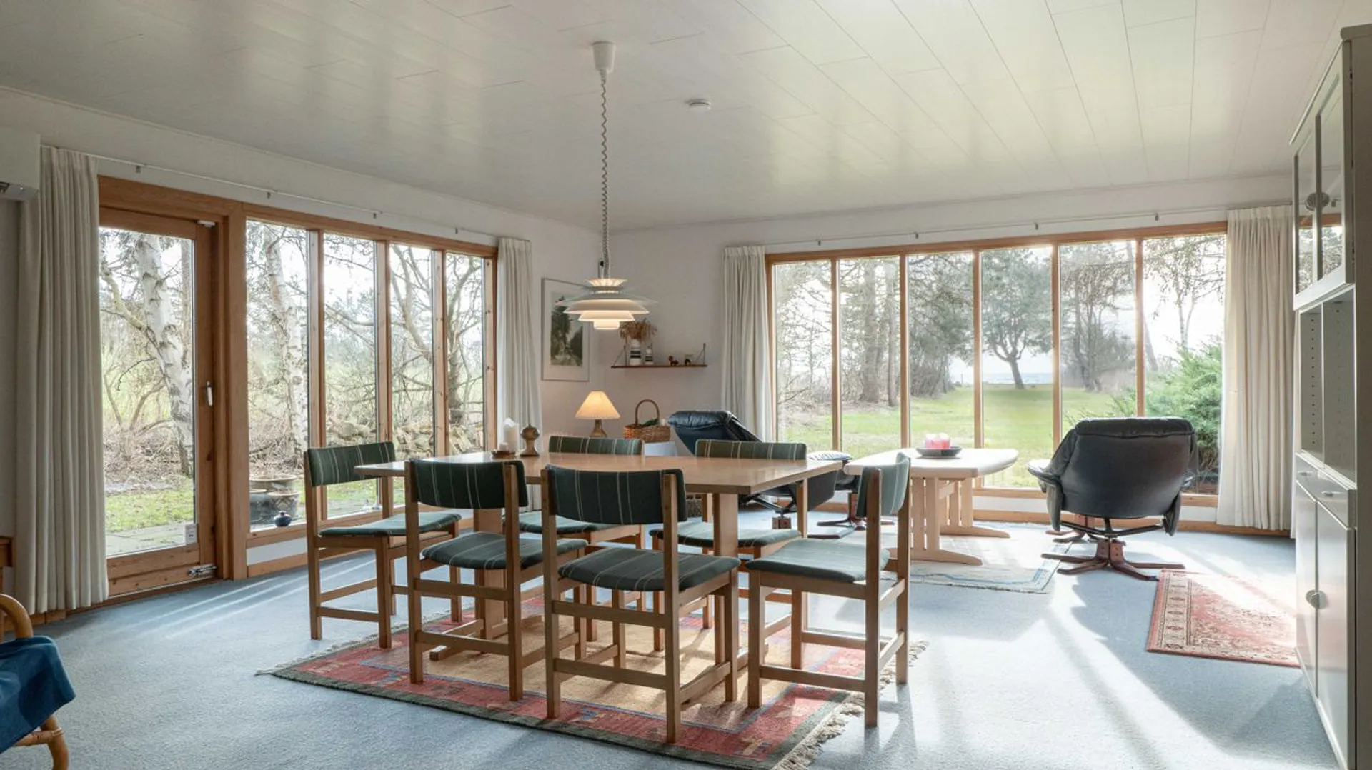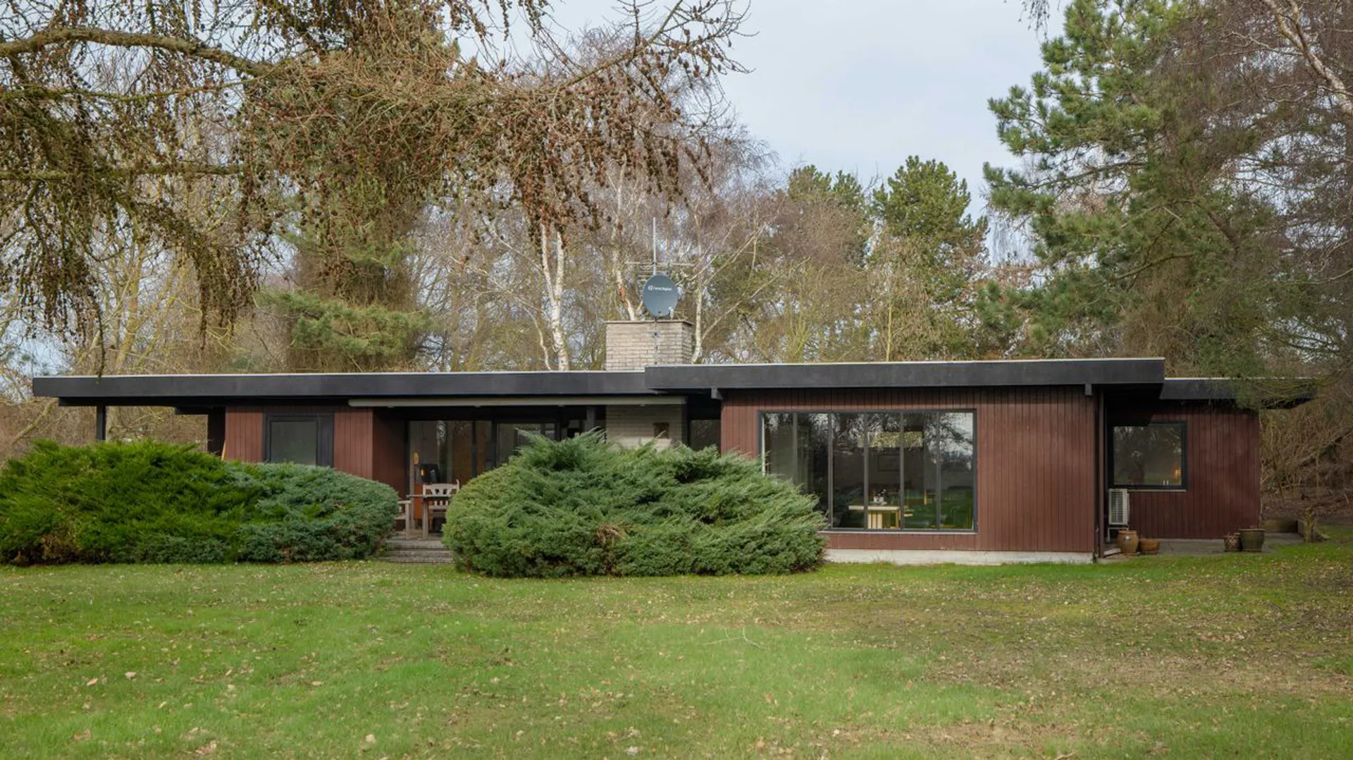Ejendommen er opført i 1969 og bærer en arkitektonisk signatur, der smelter sammen med naturen. Husets 118 m² (BBR) har 5 værelser, emmer af sommerhus-charme med plads til både at være sig selv og til samvær, hvor opholdsrummene er i naturligt centrum. Det åbne køkken-alrum og den store stue udgør husets hjerte. Et rum med rene linjer, hvor lyset flyder frit gennem de imponerende gulv-til-loft-vinduer. Udsigten trækkes helt ind i boligen og bliver en levende del af rummets stemning.