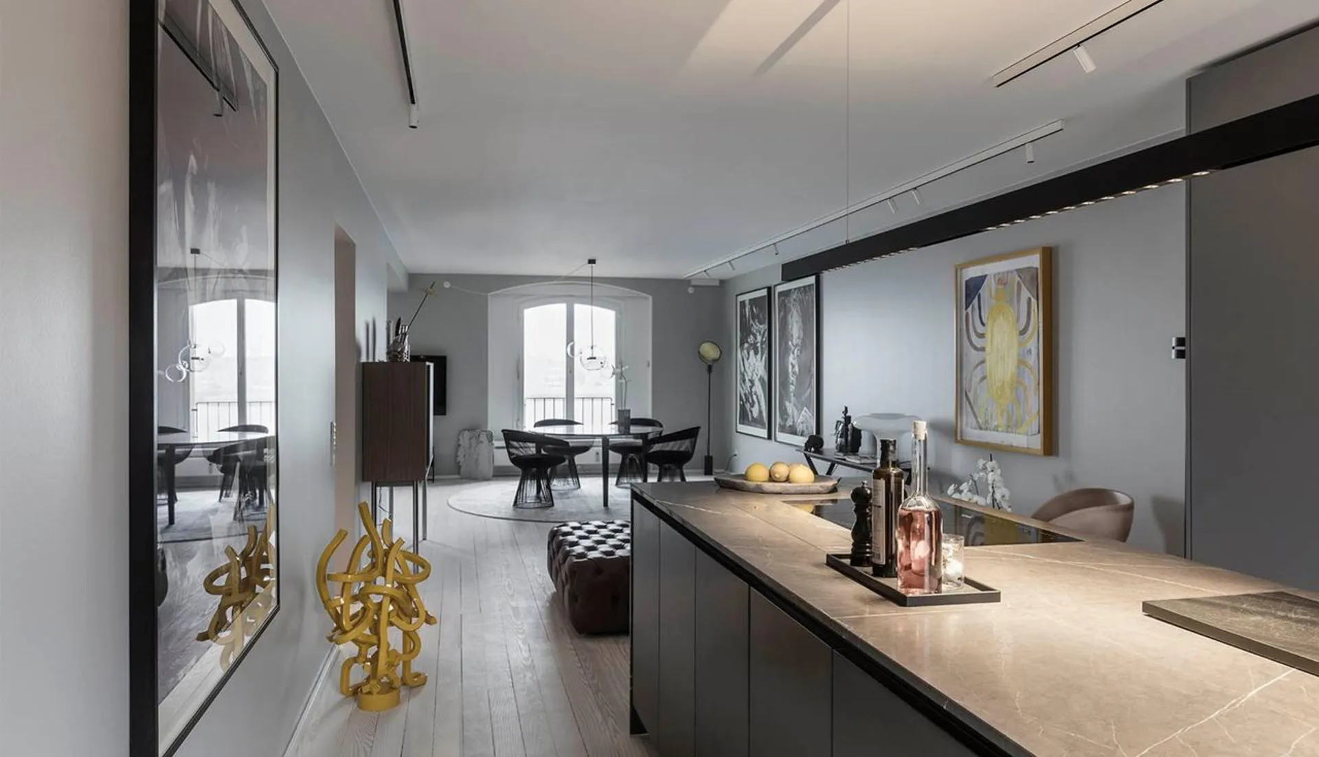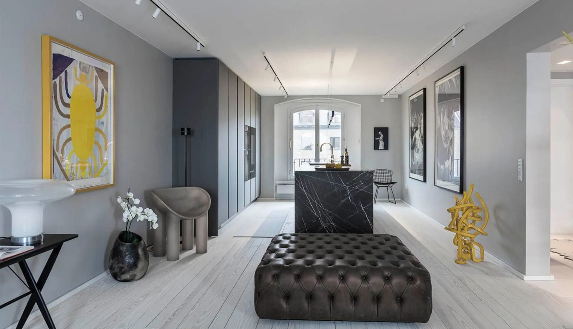 150 m2 (BBR) smagfuldt istandsat luksus lejlighed i det gule pakhus, skønt beliggende i det historiske Frederiksstaden med privat p-plads. Det gule pakhus er opført i 1778 som lagerbygning til brug for handel i kongens bydel. I dag består den fredet ejendom af 35 eksklusive lejligheder tegnet af arkitekt Hans Munk Hansen. Alle er de placeret med udsigt over vandet og det omkringliggende skønne havneområde. Indretning: Den suveræne beliggenhed understreges straks i man træder ind i lejligheden, og gennem gangens glasparti mødes af den betagende udsigt over havnen og lyset der strømmer ind af de dominerende østvendte vinduespartier. Fra éntreen er der direkte adgang til stue, såvel som køkken/alrum, badeværelse og værelse. Værelset mod vest, der i dag anvendes til gæsteværelse, kan nemt indrettes til kontor eller børneværelse. Køkkenet er raffineret indrettet med både elegante og topmoderne opbevarings løsninger udført i lækre kvalitetsmaterialer fra italienske Boffi. Fra stuen er der adgang til lejlighedens masterbedroom med eget badeværelse. Begge badeværelser er udført i samme lækre materialer fra Boffi som køkkenet. En lejlighed med et råt og ekstravagant udtryk, istandsat med respekt for ejendommens oprindelige detaljer og sjæl. I ejendommen findes i øvrigt elevator, ligesom der til lejligheden hører privat p-plads. En pragtfuld lejlighed til den lille familie, eller det pladskrævende par, som ønsker at bo midt i byen med spændende arkitektur, og bygninger hvis vægge bærer på årevis af historiske anekdoter, som nærmeste nabo.