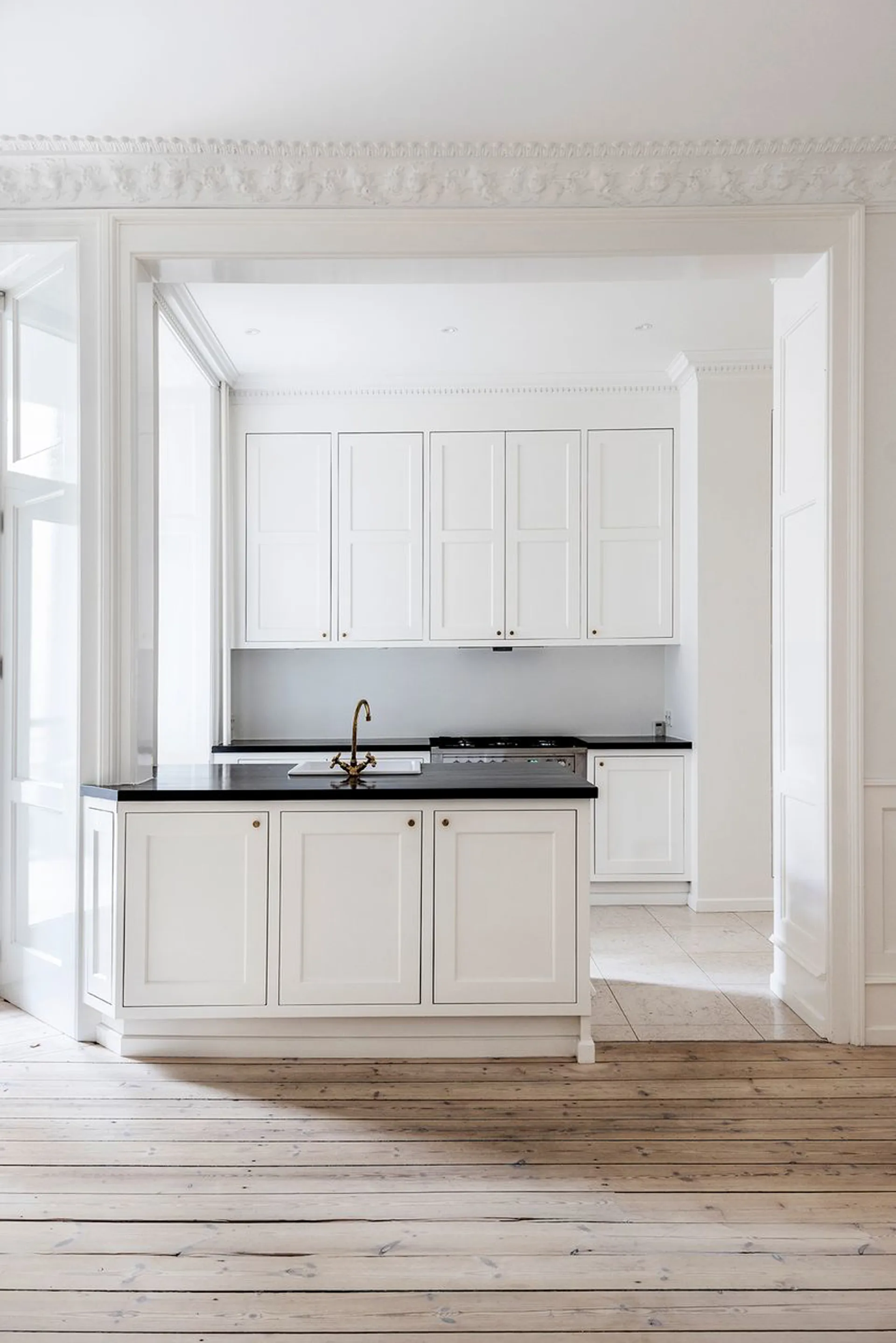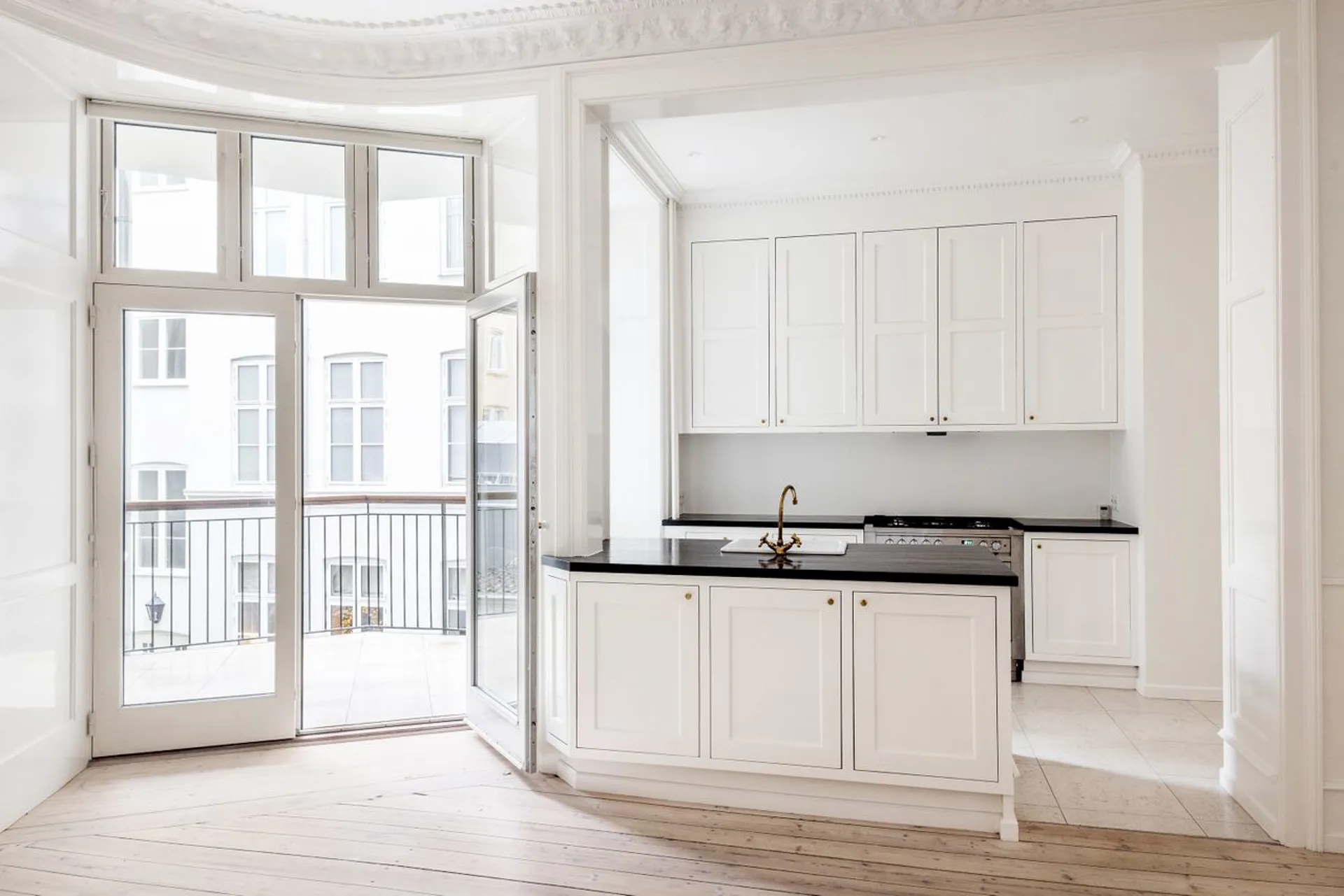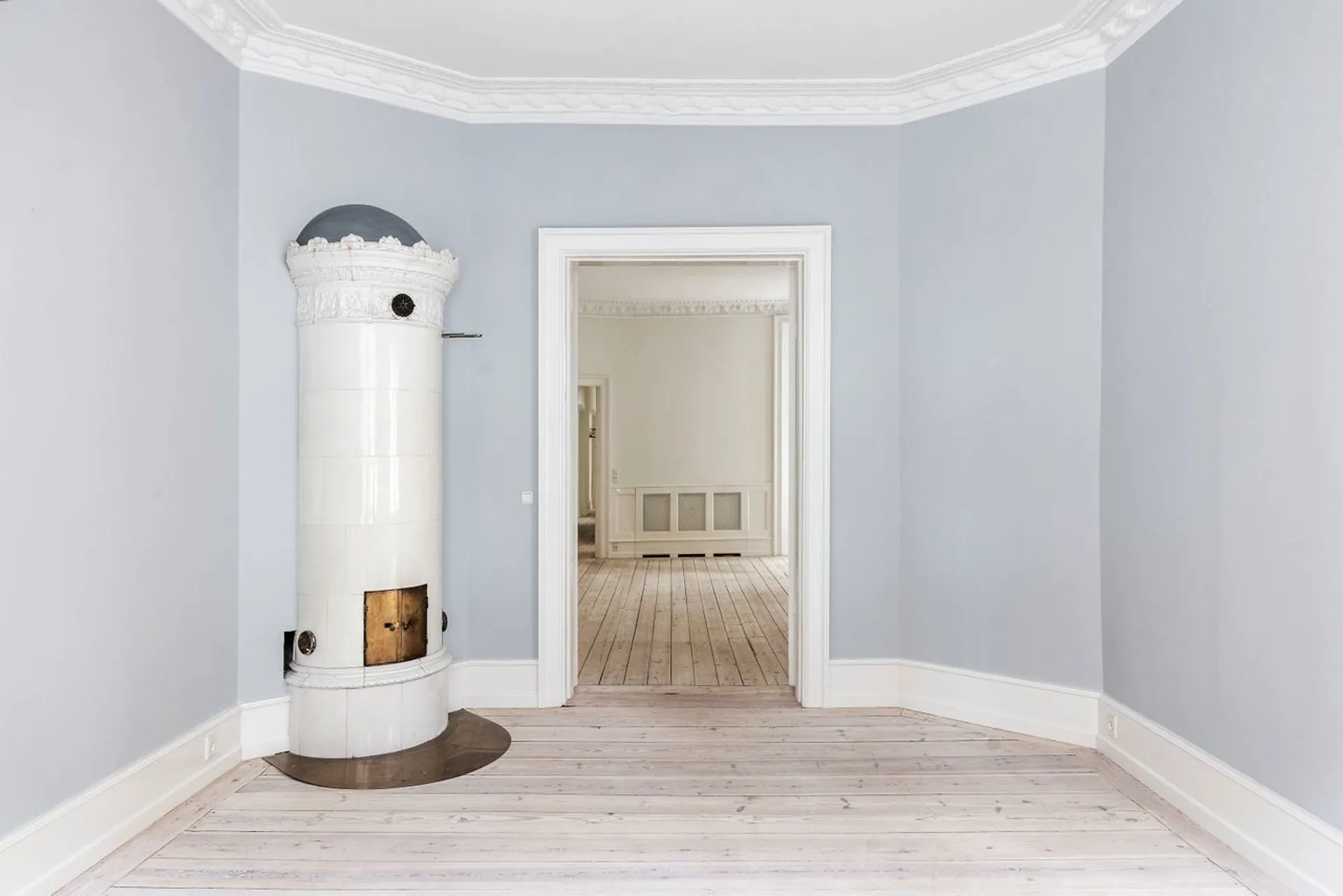 Fra køkkenet er der udgang til skøn altan, der byder op til at forlænge alrummet flere måneder om året og fra det store soveværelse kan der åbnes op til en fransk altan. Gennemgående i lejligheden er der smukke paneler, smukke stuklofter og smukke rumligheder. Smukt, smukt, smukt – sådan er det her!