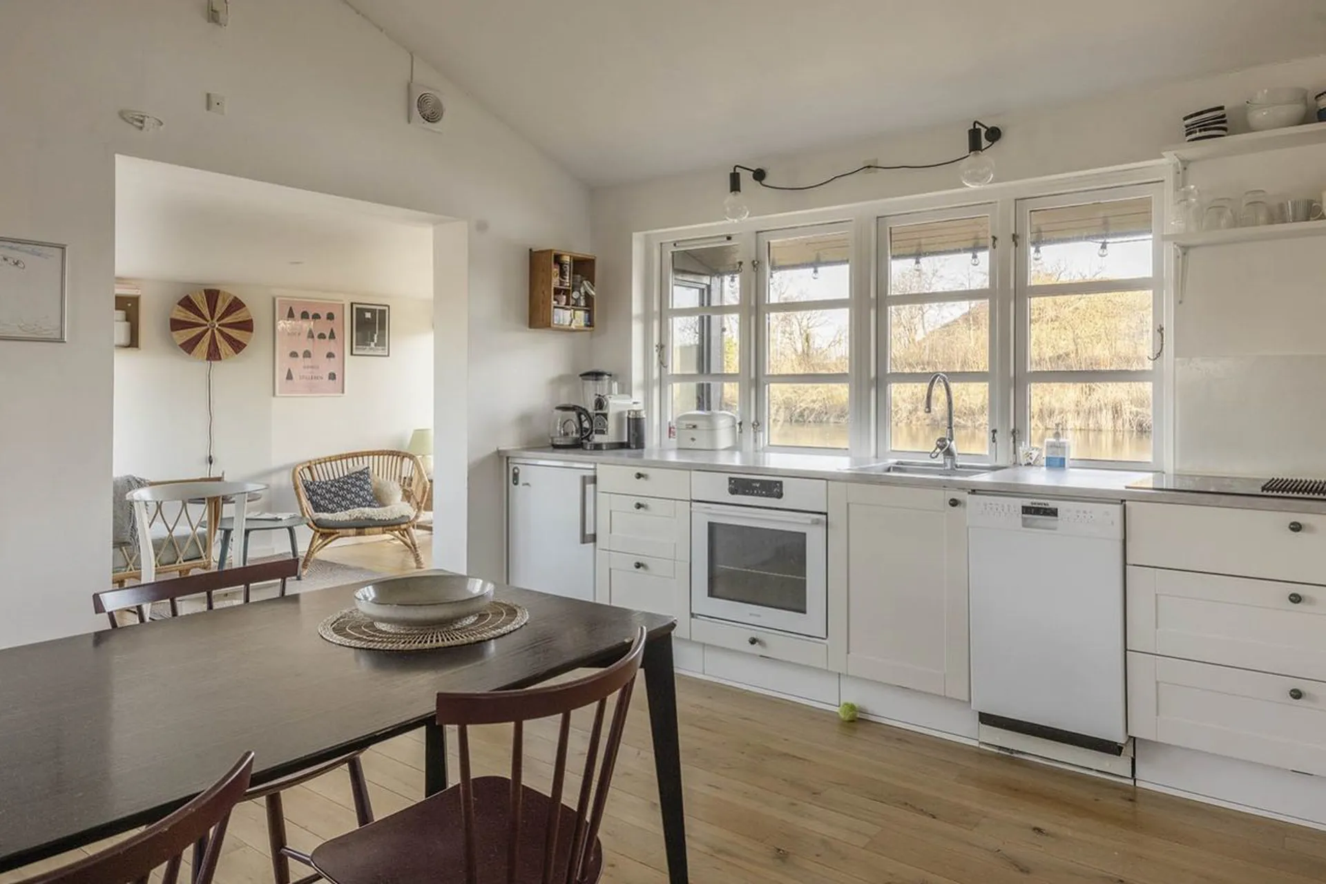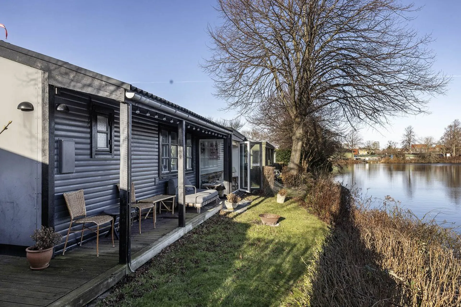 Et fristed, hvor en helt særlig forbindelse med naturen blander sig med en boligkomfort, der gør det til hele familiens tilflugtssted. Suveræn beliggenhed direkte ved vandet midt i byen og alligevel så enormt langt fra bilkøer og forpligtigelser. Huset, der er fuldt isoleret, blev opført i 2007 og er løbende blevet forbedret. Store vinduespartier og åbne rummeligheder i det store køkken-alrum danner den perfekte ramme til at overvære årstidernes skiften.