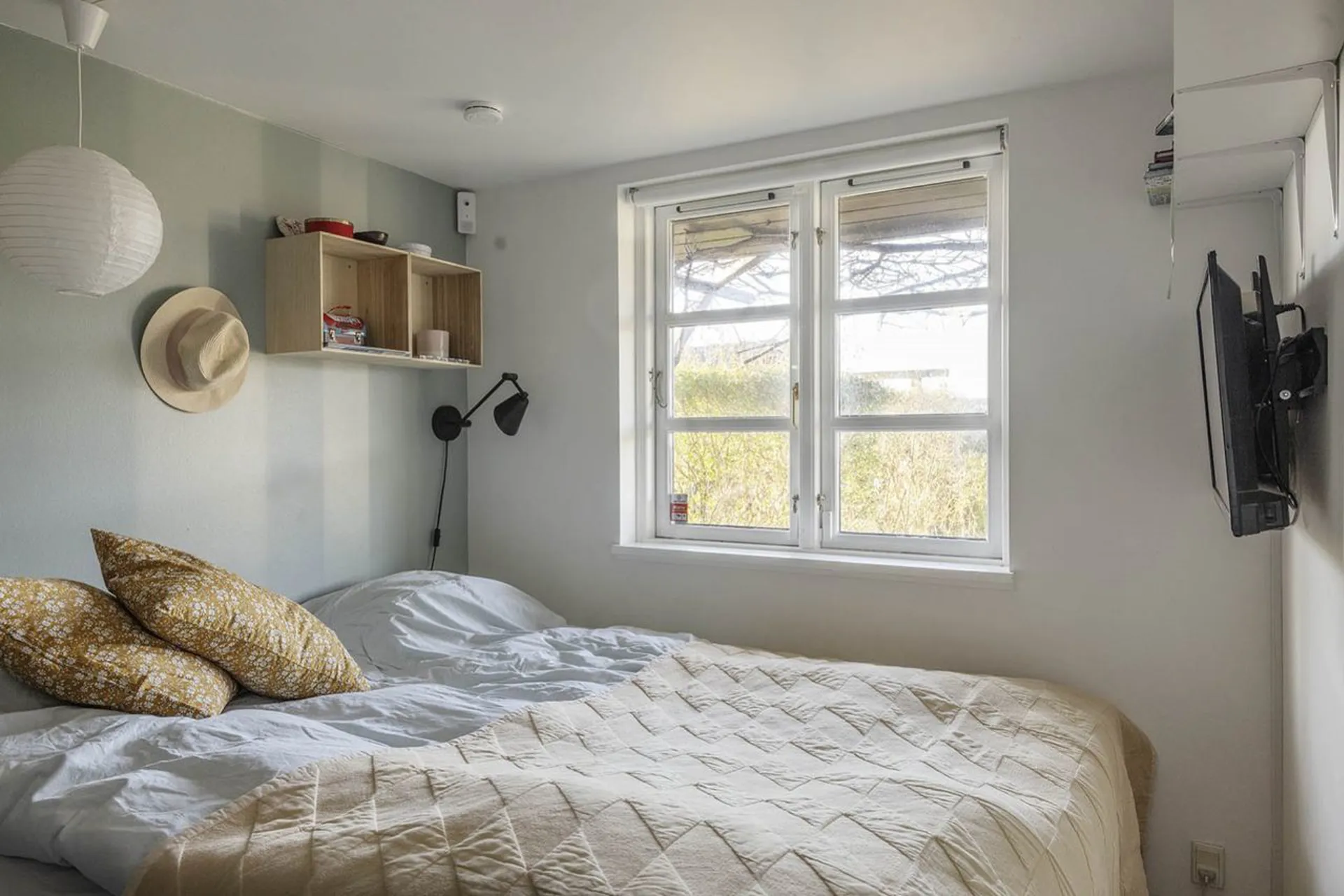 Huset er 39 m2 med et stort alrum som centrum for stedets aktiviteter. Her er der et funktionelt indrettet køkken med plads til et stort spisebord. Rundt om alrummet er stuen med enestående udsigt, et hyggeligt soveværelse, en anvendelig hems og smagfuldt indrettet badeværelse med brus. Derudover er der et mindre udhus/skur.