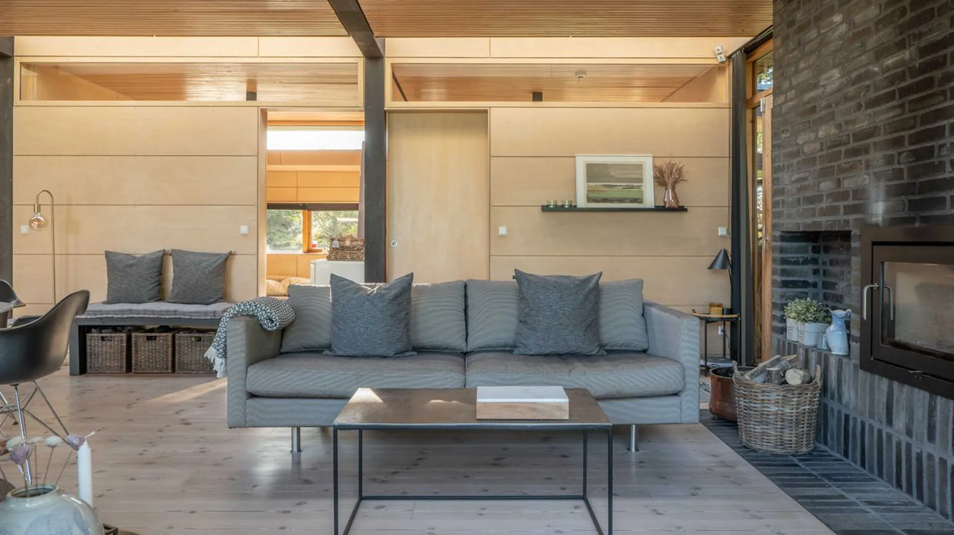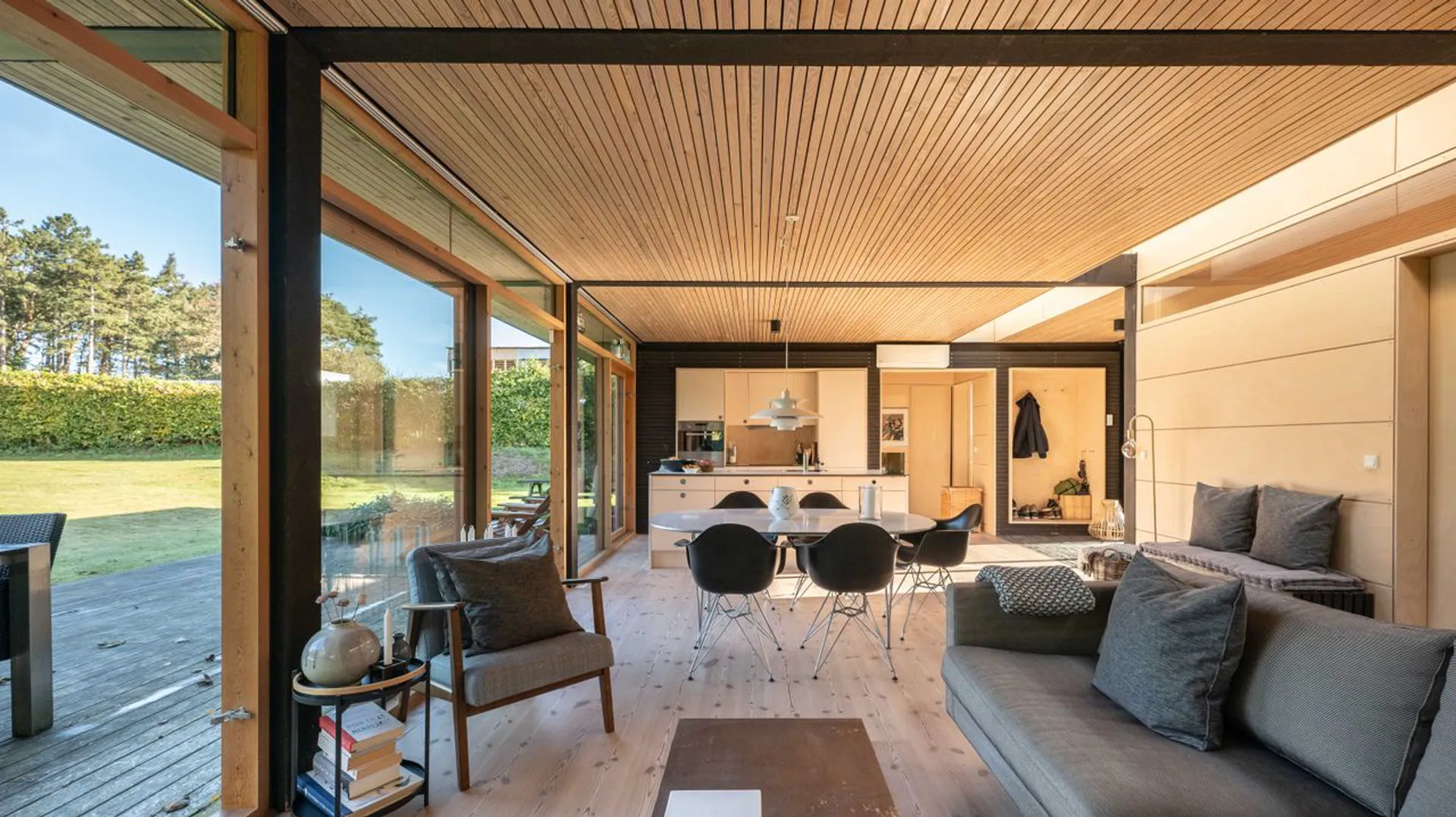Den moderne opført strandhus, opført i 2010, spiller på alle tangenter. Gennemlysninger og gennemsyn forenes med lukkede rumligheder og privathed. Fra alle vinkler får lyset lov til at gennemstrømme det delikat tegnede sommerhus – og overalt er der hyggelige kroge og hjørner, hvor man kan forsvinde hen, hvor man vil. Og det er også særligt for dette sted.