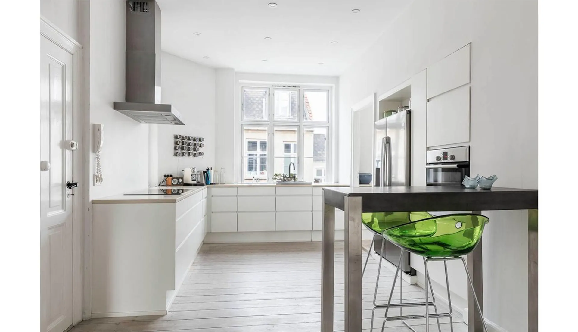 Stort solrigt gårdmiljø, med hyggelige haverum - nogle overdækket, fodboldbane og forskelligartet legepladser. Fuldendt herskabslejlighed på 201 m2 med bedste beliggenhed på Østerbro. Ejendommen er opført i 1899 og er beliggende på den skønne Willemoesgade, der udgør én af midteakserne i Rosenvænget kvarteret. Lejligheden er højt beliggende i husets sydvest vendte hjørne, hvilket beriger boligen med et fænomenalt lysindfald og en udsigt ud over kvarteret smukke tage og spir med Sortedam Dossering som bagvedliggende kullise mod vest. Boligen er gennemgribende renoveret og fremstår med smukke gennemgående kig, hyggelige hjørner og gode værelser i hver ende af lejligheden. En helt særlig bolig, med en helt særlig beliggenhed og et nærmest poetisk lys. Indretning: Entré hvorfra der er adgang til lejlighedens skønne hjørnestue, som ligger en suite med stor spisestue og opholdsstue. Fra hjørnestuen er der adgang til skønt vestvendt soveværelse, alternativt stue og fra spisestuen er der passage til stort lækkert indrettet køkken alrum med sideliggende bryggers/grovkøkken. Dertil to skønne soveværelser, gæstetoilet og lækkert indrettet badeværelse med kar og brus. Lejligheden kan oplagt indrettes med to store stuer, fire soveværelser og køkkenalrum – eller med fire stuer, to soveværelse og køkkenalrum. En lejlighed med mange indretningsmuligheder, der henvender sig bredt – lige fra det pladskrævende par til en familie med brug for mange soveværelser.